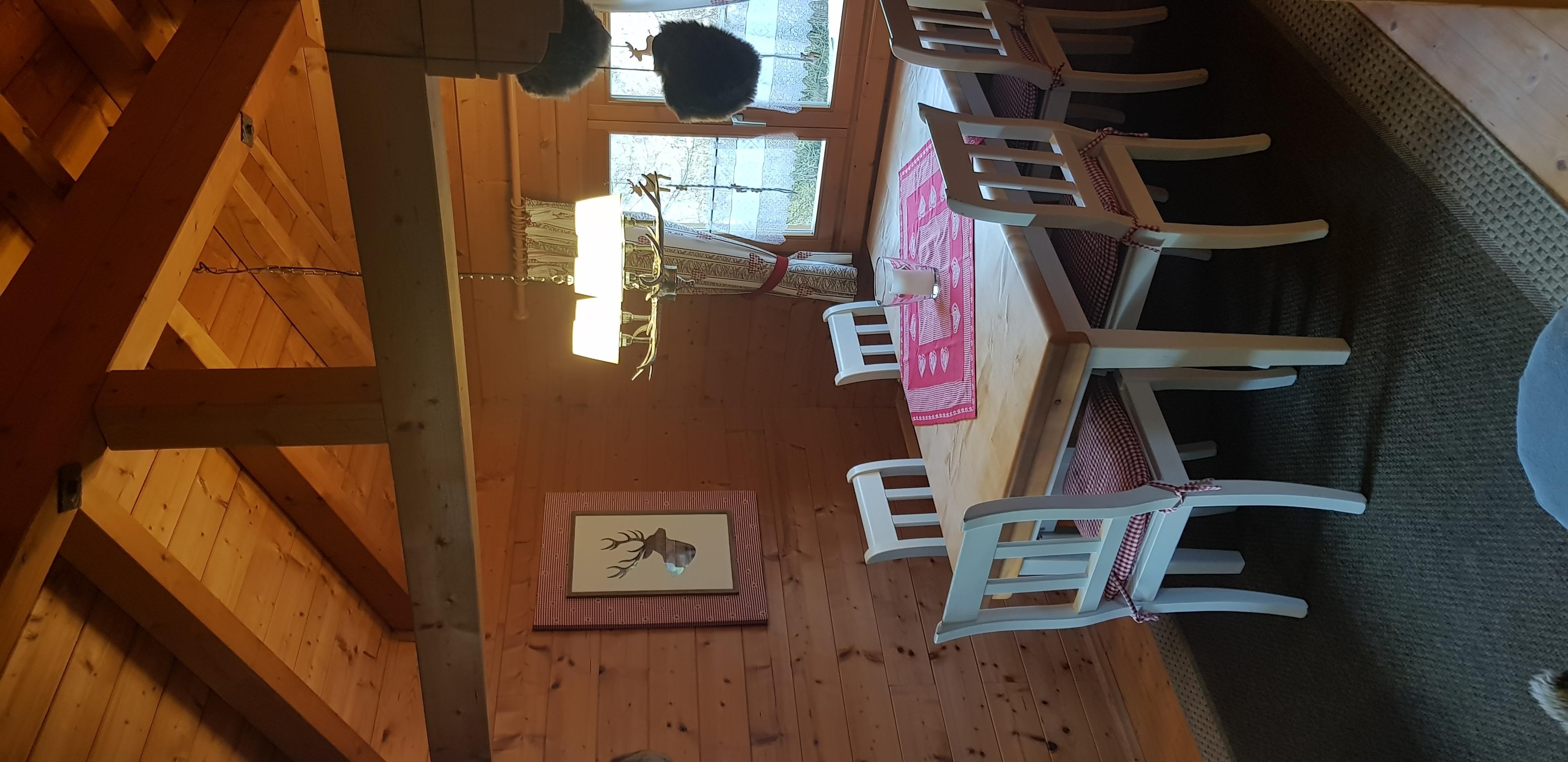 1 Wohn- / Essraum mit bequemer Sitzgruppe, Schrankwand mit grosszügiger Unterbringung von Geschirr und Gläsern für 10 P, SAT-Digital-TV, Stereoanlage mit CD-Player, Videorecorder / DVD-Player, Essecke (Tisch 1,0 m x 1,8 m) und schnurlosem Telefon für Notrufe und Rufannahme.