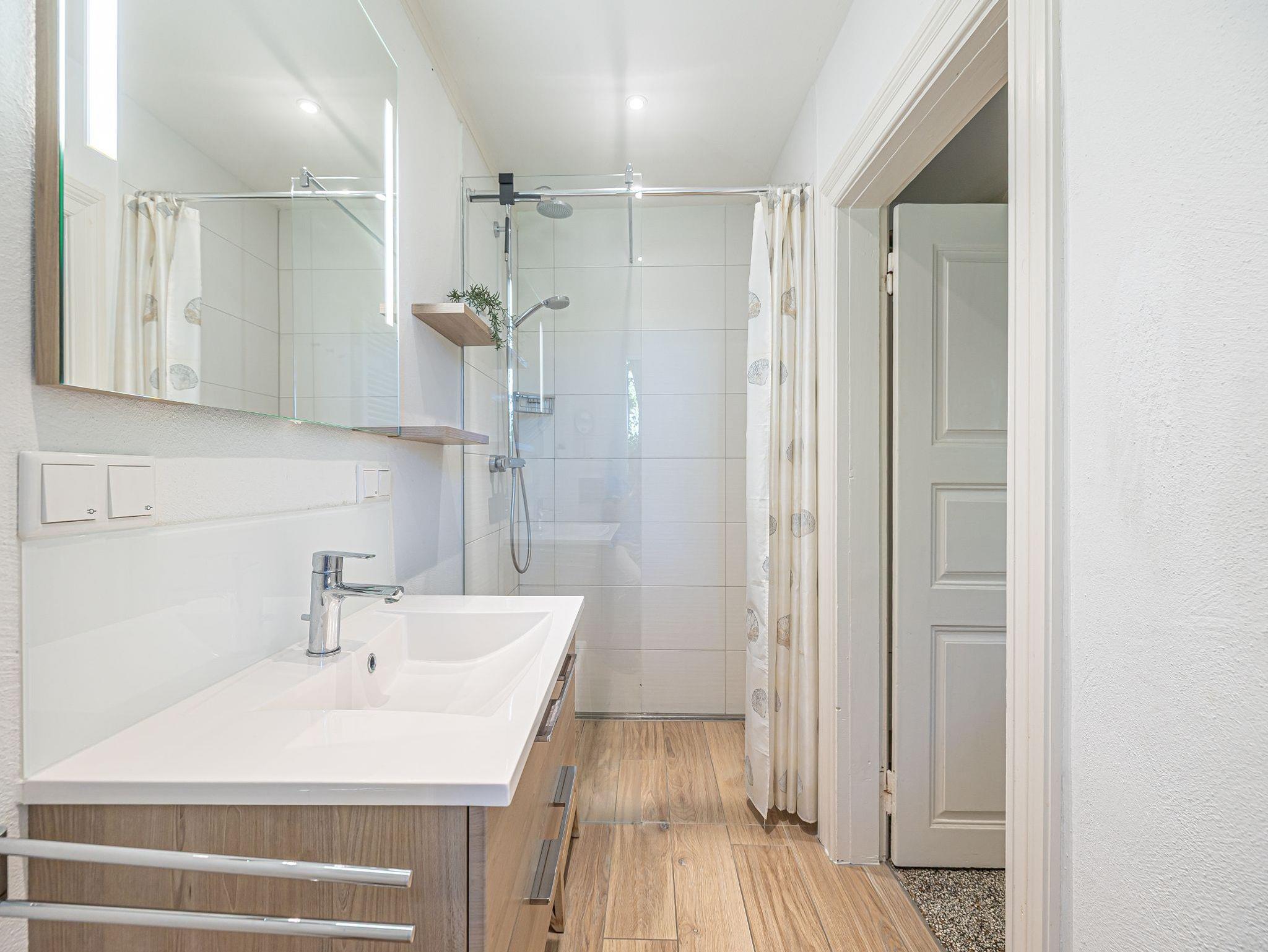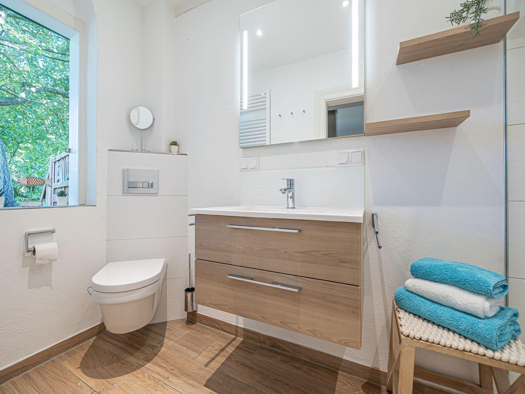 • Bad mit ebenerdiger Dusche mit Rainshower, Fußbodenheizung; Handtücher inklusive