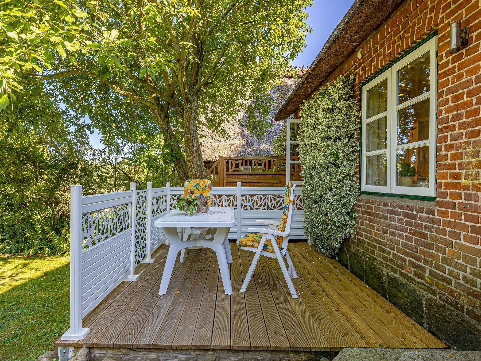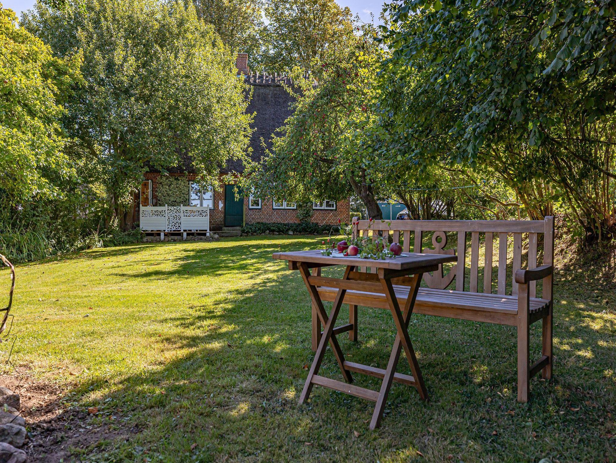 Das stilvoll restaurierte Ferienhaus Lindenkate von 1837 bietet gehobenen Komfort für bis zu 4 Personen - umgeben von Feldern und einem schön eingewachsenen Garten mit zusätzlicher Sitzecke..