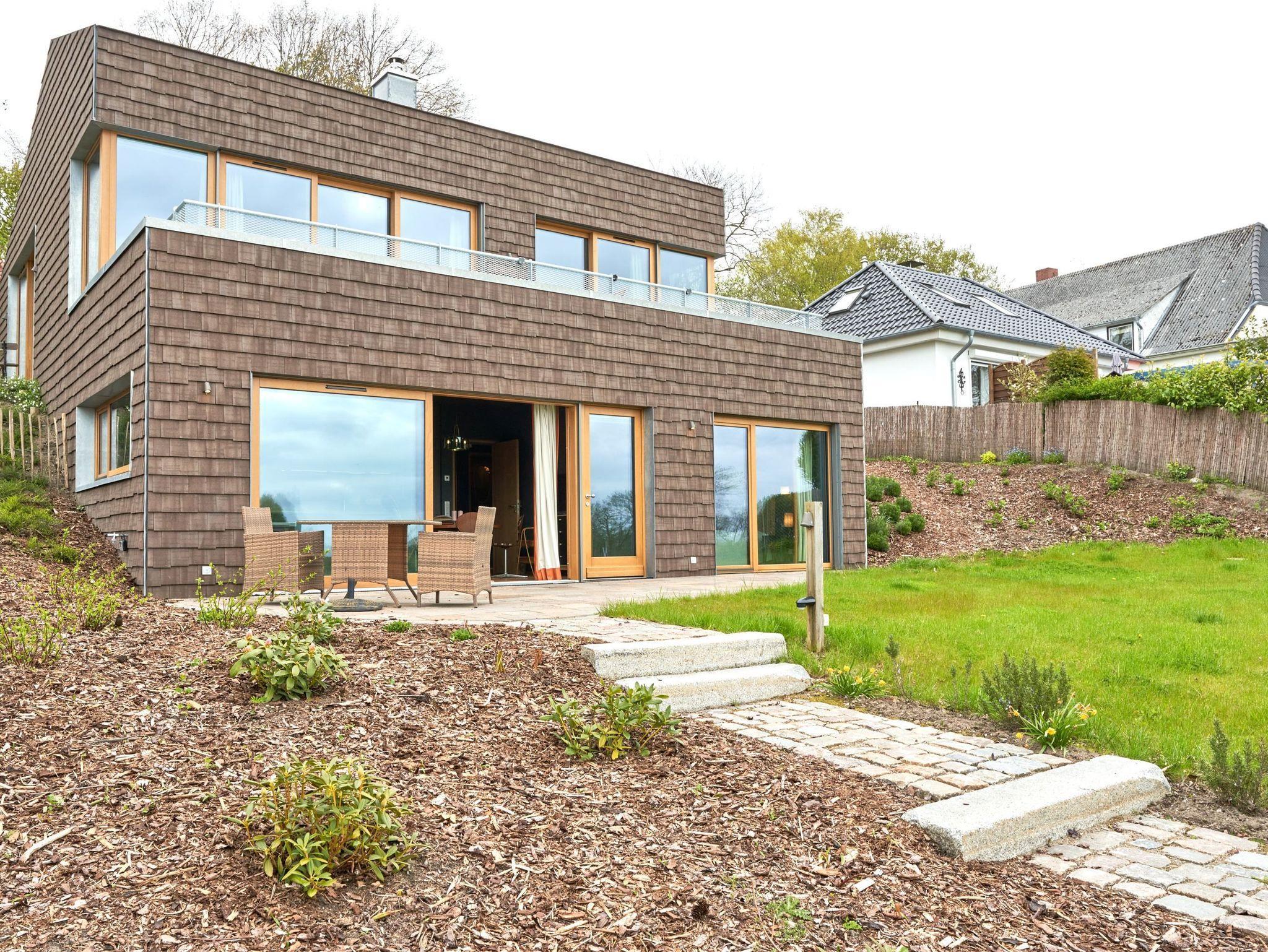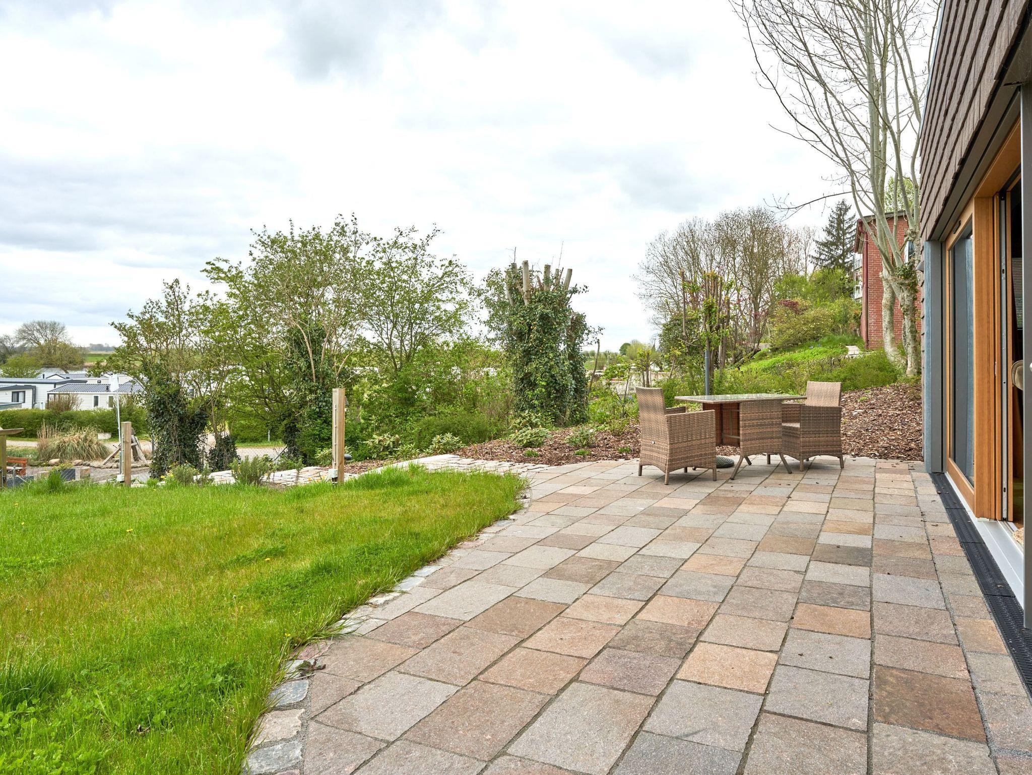 Bietet auf 50 qm ausreichend Platz für 2 Personen, über die gesamte Breite des Hauses erstreckt sich ein großzügige Terrasse in Südausrichtung mit Blick auf die Eider.