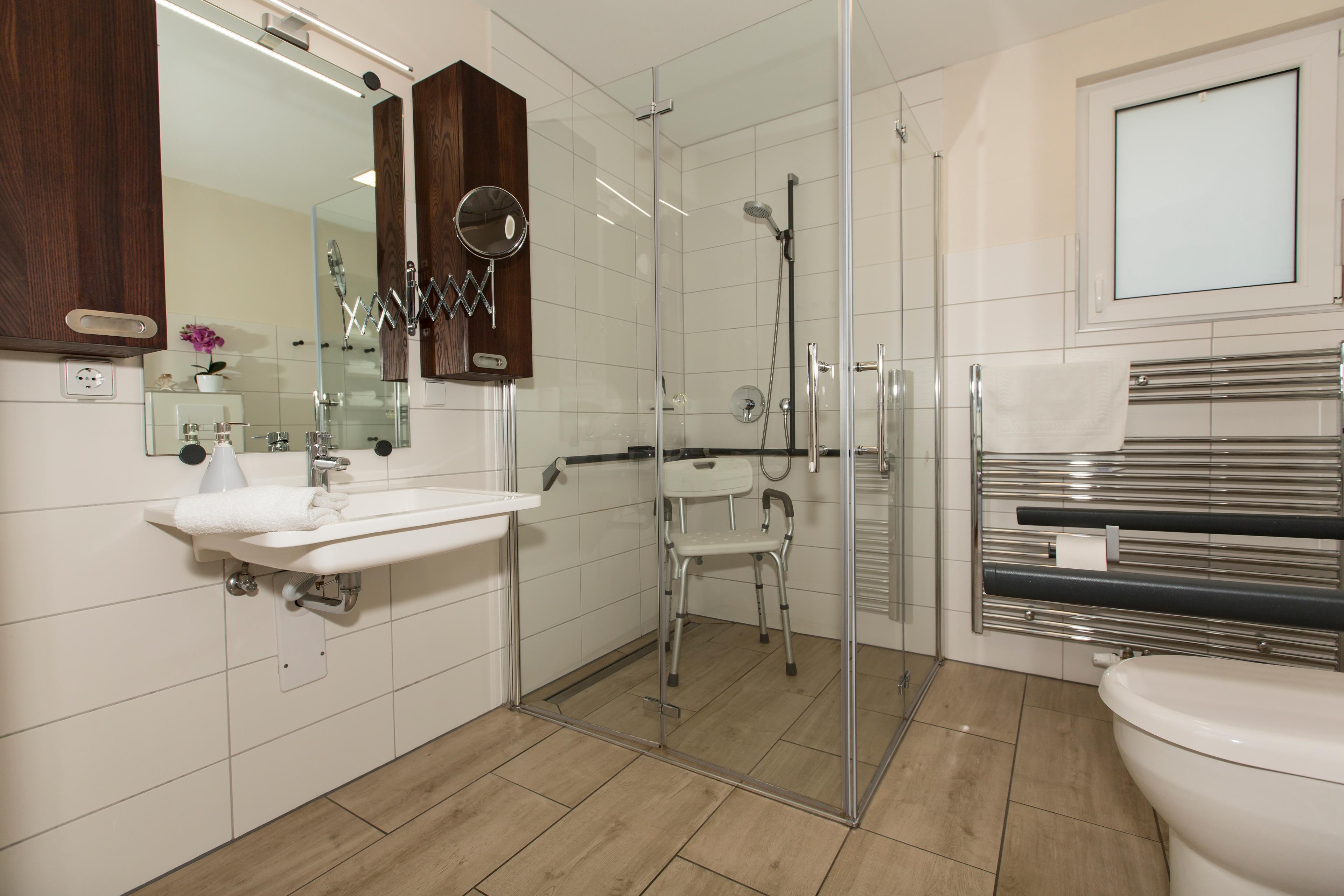 Barrierefreies Bad- Haltegriffe an WC, DU, Waschbecken, Duschstuhl, Duschrollstuhl, Patientenlifter und Pflegebett auf Anfrage
