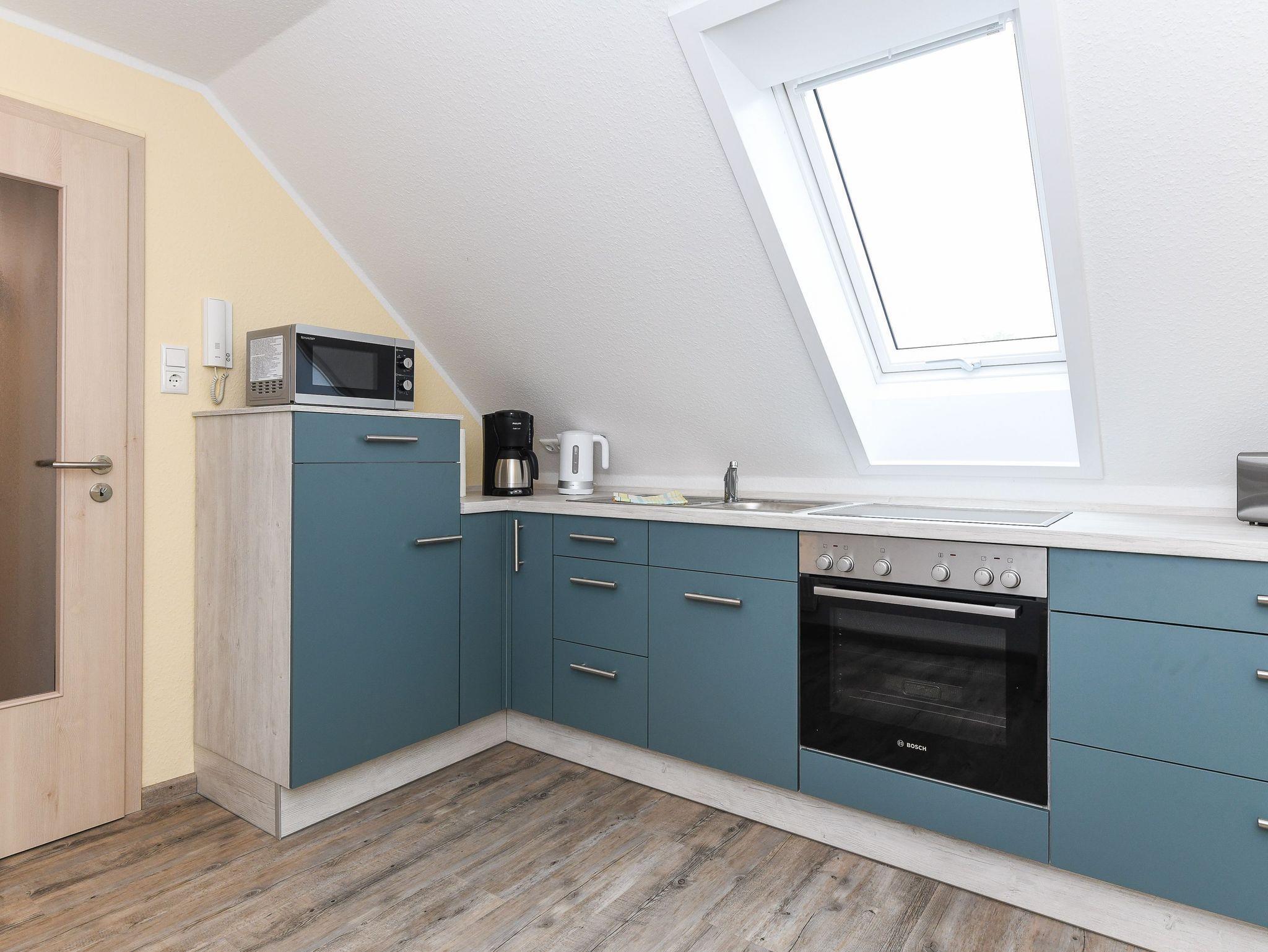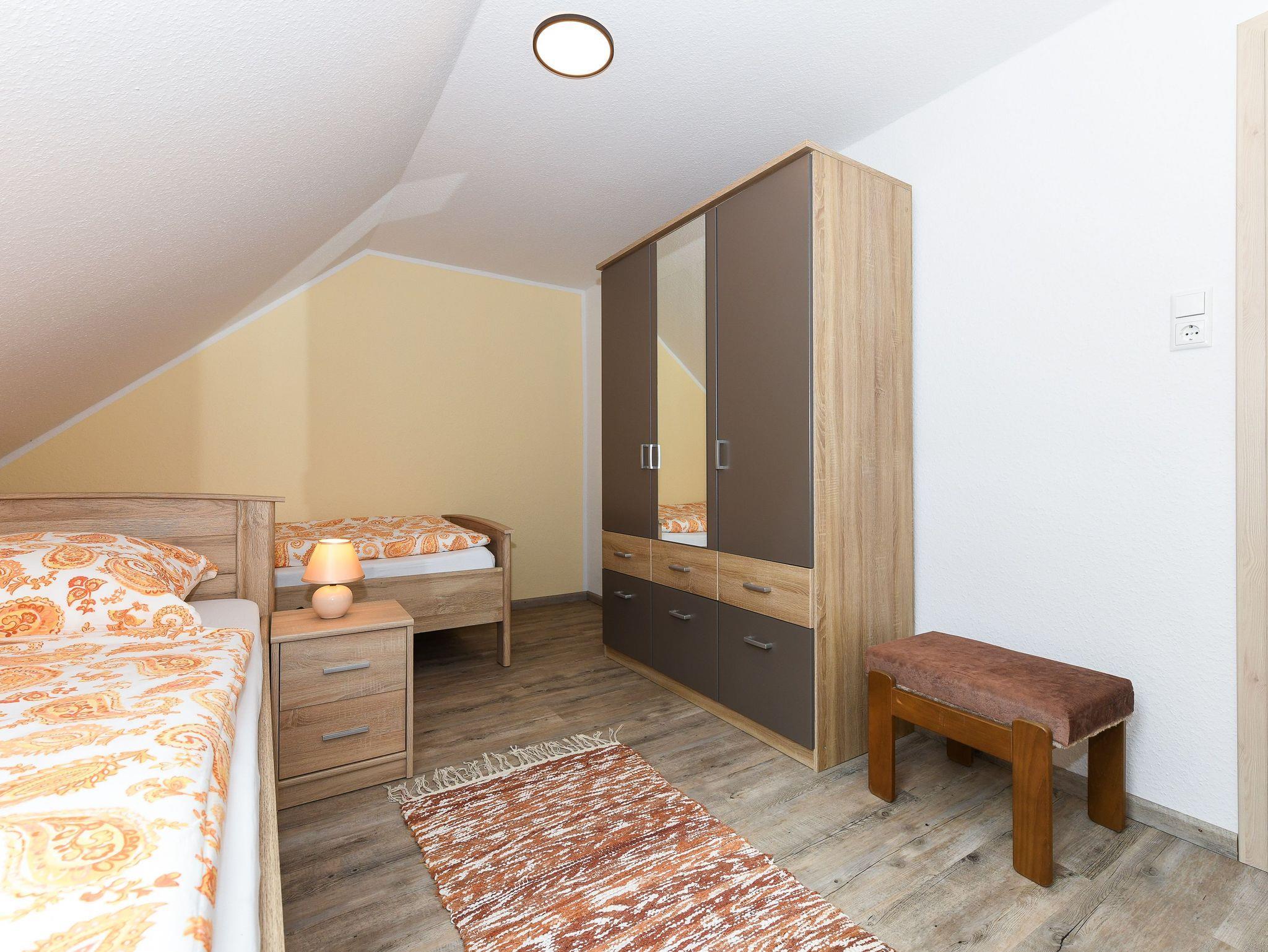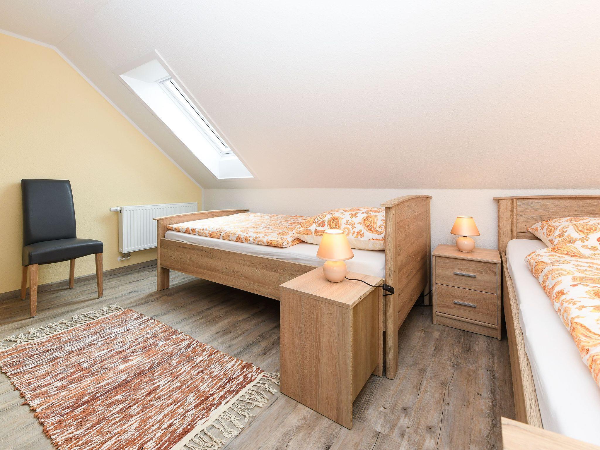 Größe ca. 70 Quadratmeter, Wohnzimmer, Küche, Schlafzimmer, zweites separates Schlafzimmer/Kinderzimmer, Badezimmer mit Dusche, Waschtisch und WC, Obergeschoss, optimal für 2 bis 4 Personen und zusätzlich ein Kleinkind.