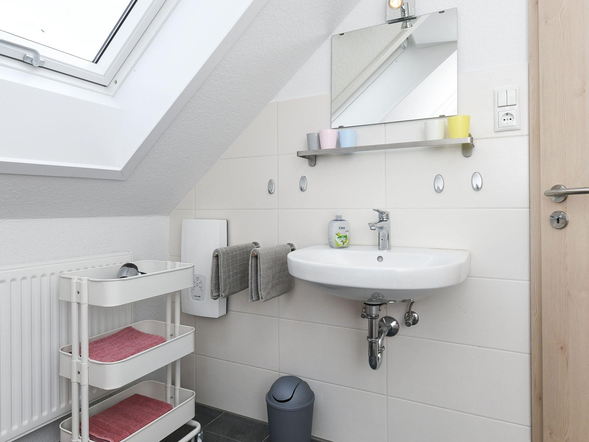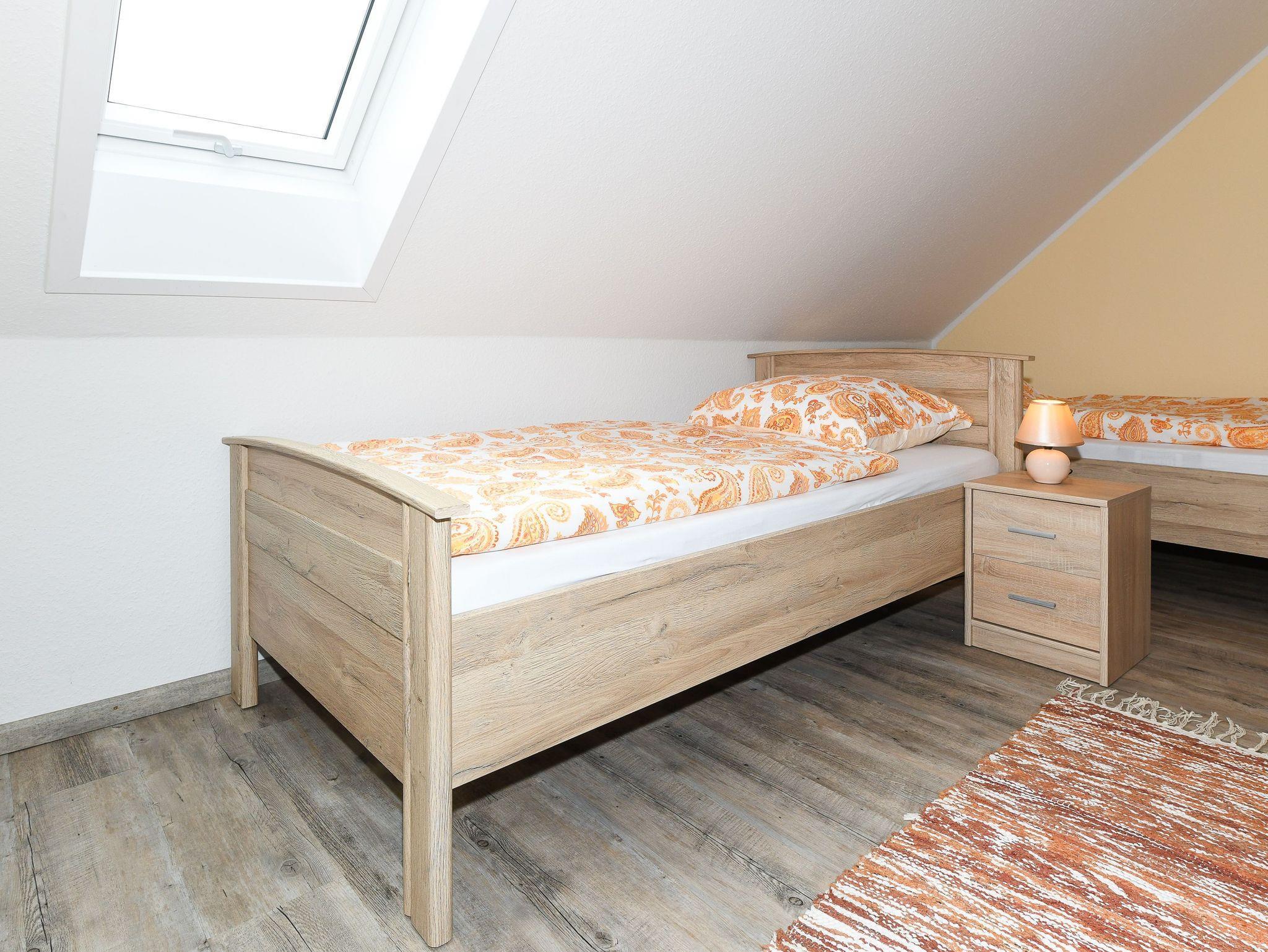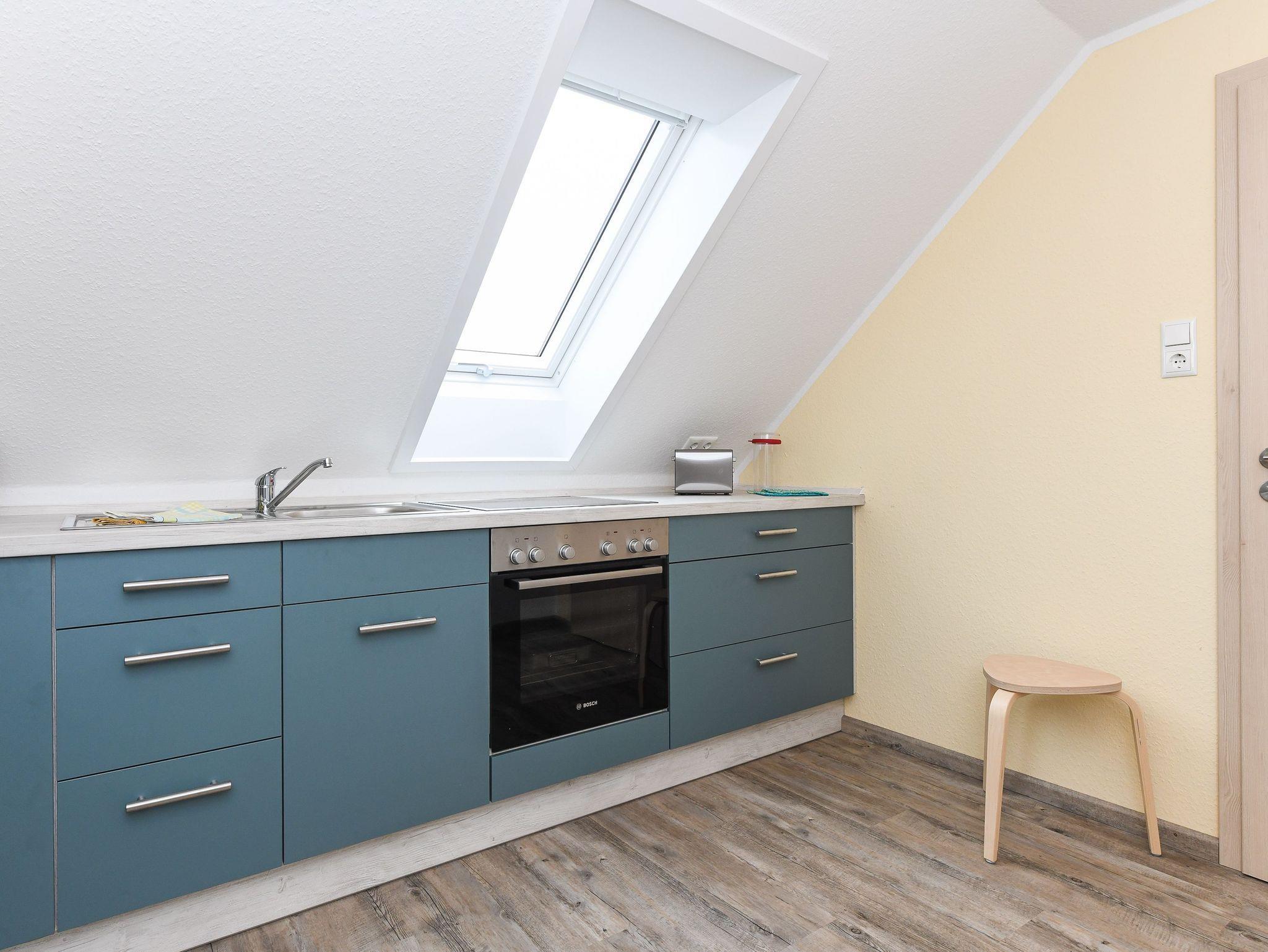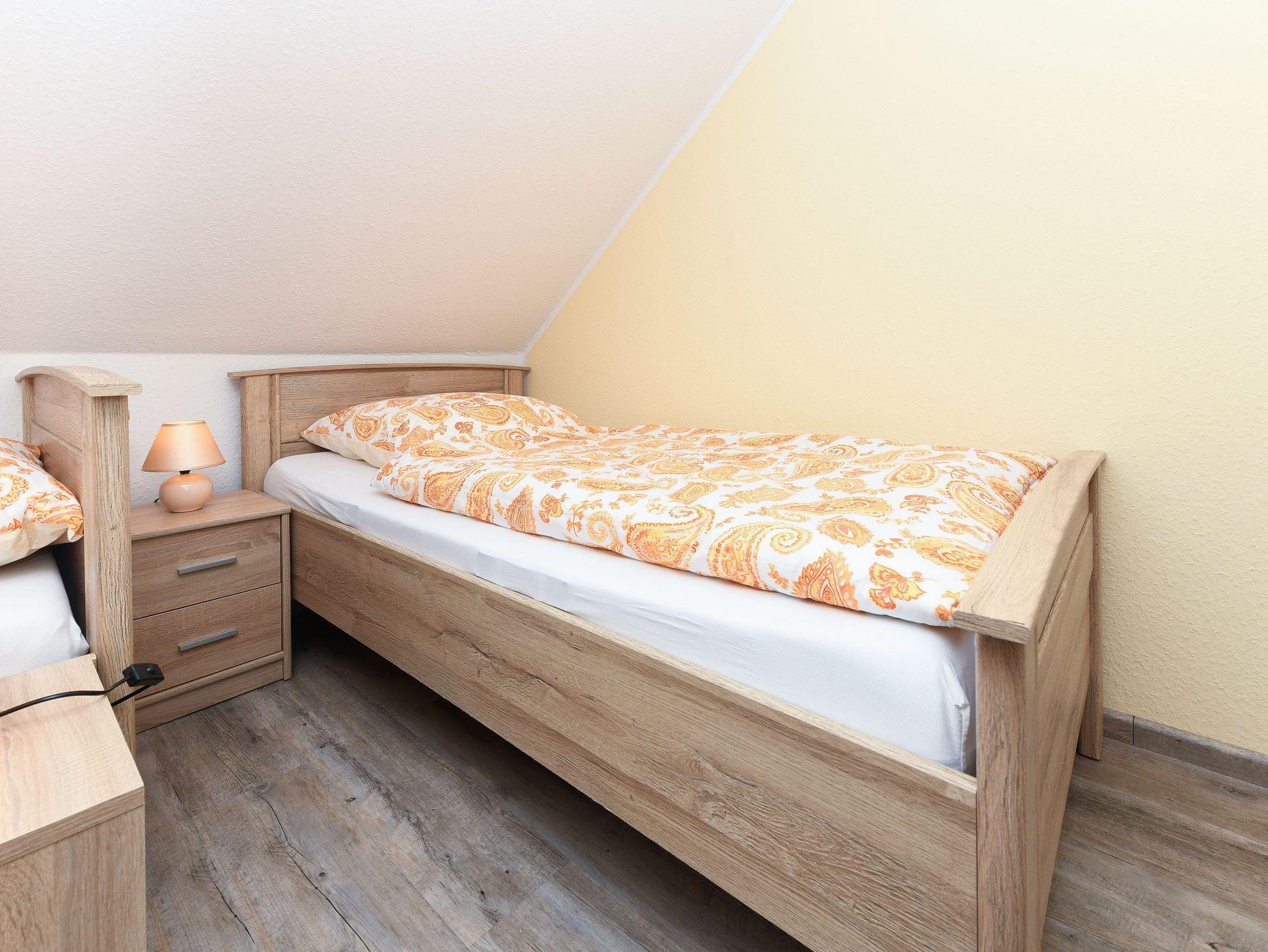Größe ca. 70 Quadratmeter, Wohnzimmer, Küche, Schlafzimmer, zweites separates Schlafzimmer/Kinderzimmer, Badezimmer mit Dusche, Waschtisch und WC, Obergeschoss, optimal für 2 bis 4 Personen und zusätzlich ein Kleinkind.