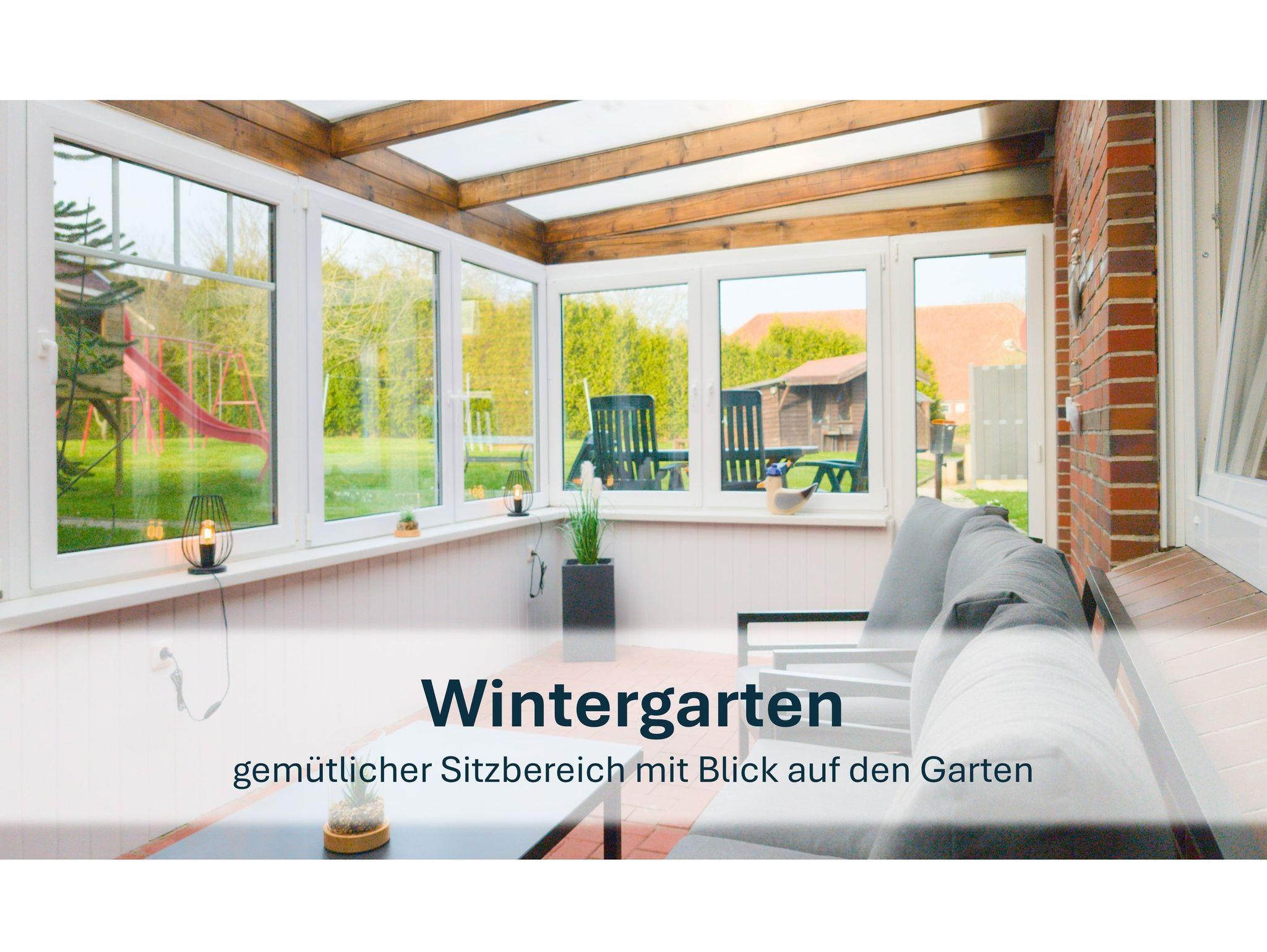 Besonders schön ist der Wintergarten, der mit einem Blick auf den Garten zum Verweilen einlädt - ein perfekter Ort, um die Natur zu genießen und erholsame Stunden zu verbringen. Über die Küche erreichen Sie den Wintergarten.