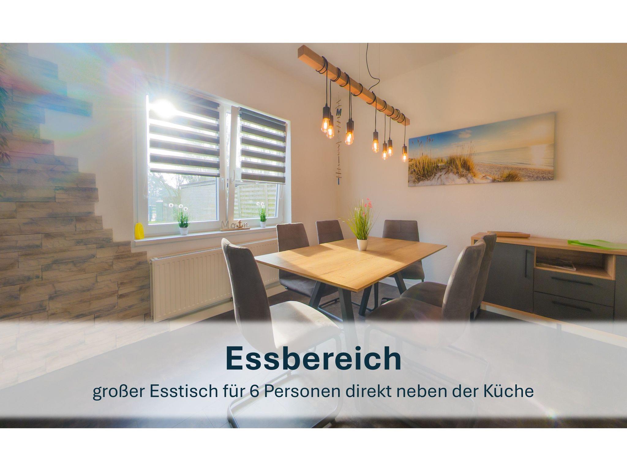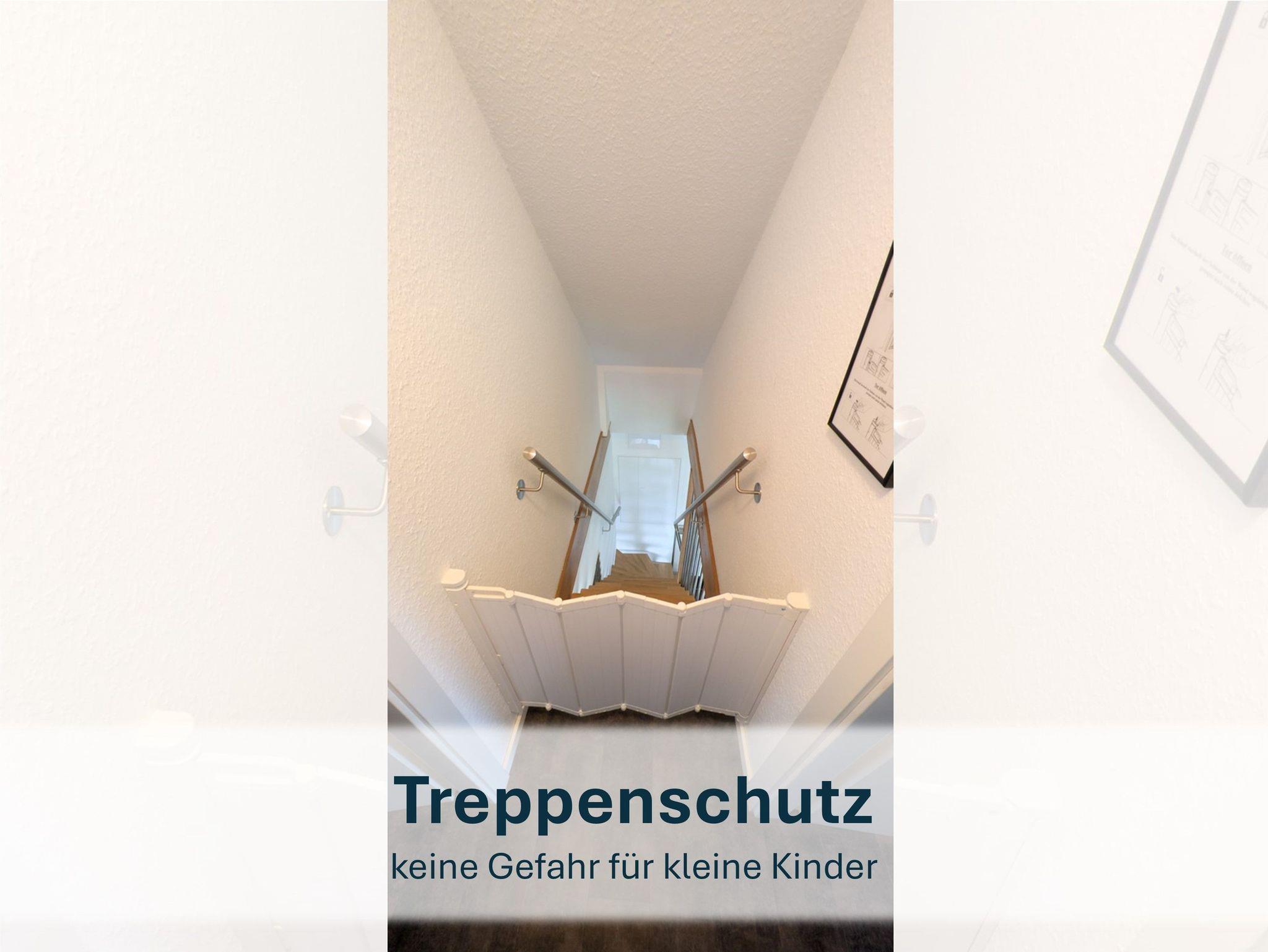 Im Erdgeschoss erwartet Sie ein gemütliches Wohnzimmer mit einer bequemen Eckcouch und einem Fernseher - perfekt für entspannte Filmabende. Die voll ausgestattete Küche lässt keine Wünsche offen und bietet alles, was Sie benötigen, um köstliche Gerichte zu zaubern. Auch das Esszimmer, das zum gemeinsamen Genießen einlädt, befindet sich hier. Ein geräumiges Badezimmer mit Dusche und WC sorgt für zusätzlichen Komfort.