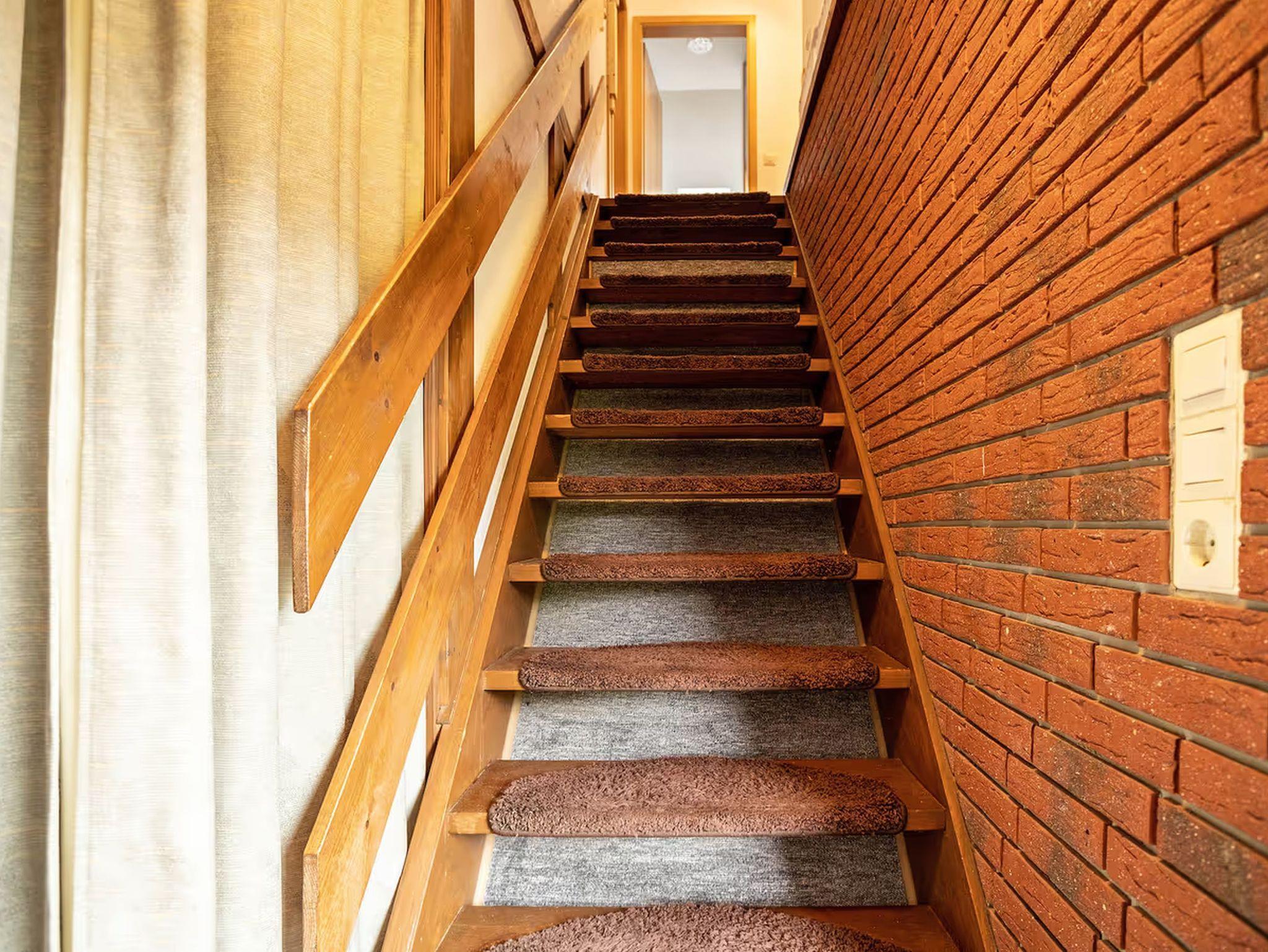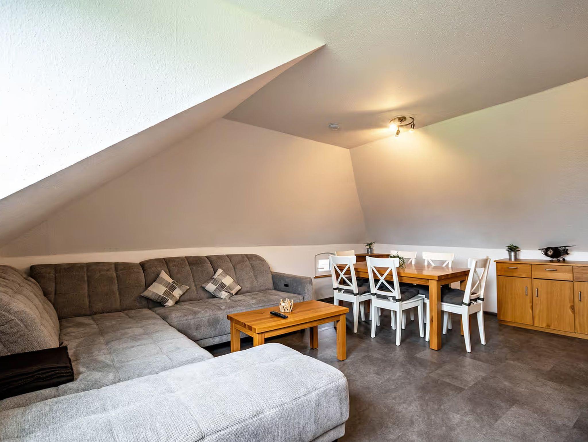 Die 60m² große Ferienwohnung ist ein wahres Highlight. Sie strahlt in hellem Licht und bietet Ihnen einen einladenden Wohn-/Essbereich, der perfekt für gesellige Stunden ist. Über die Treppe, die am oberen Ende über ein Treppenschutzgitter für die kleinen Gäste verfügt, gelangen Sie in die Wohnung.