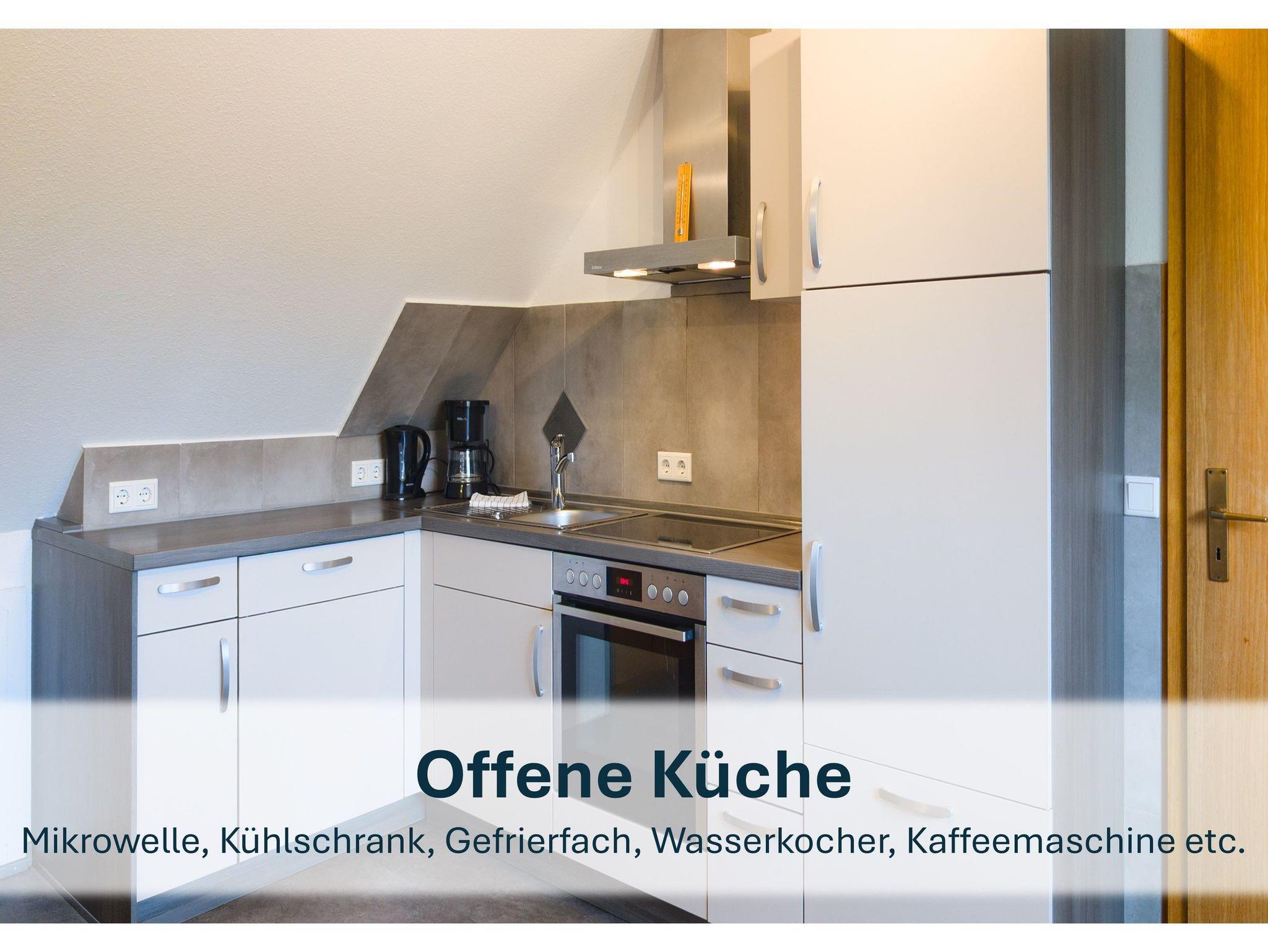 Die offene, voll ausgestattete Küche lässt keine Wünsche offen - hier finden Sie alles, was Sie brauchen, um köstliche Mahlzeiten zu zaubern, von der Geschirrspülmaschine über den Ofen bis hin zur Kaffeemaschine, um den Tag mit einem frisch gebrühten Kaffee zu beginnen.