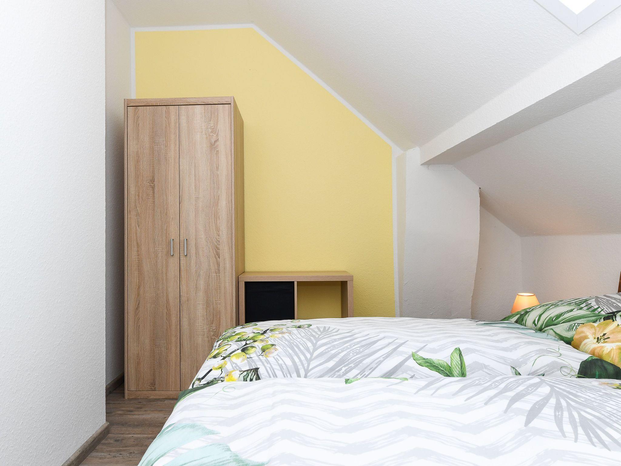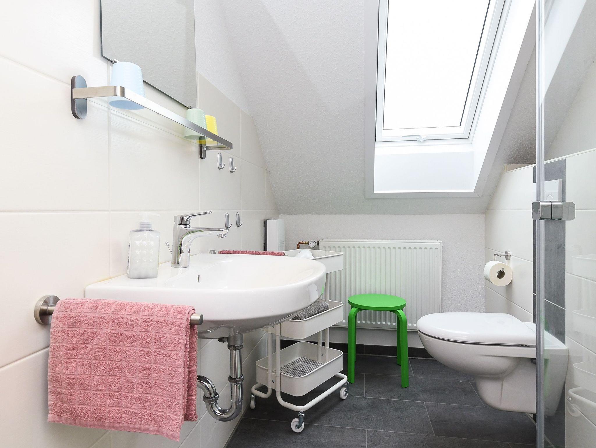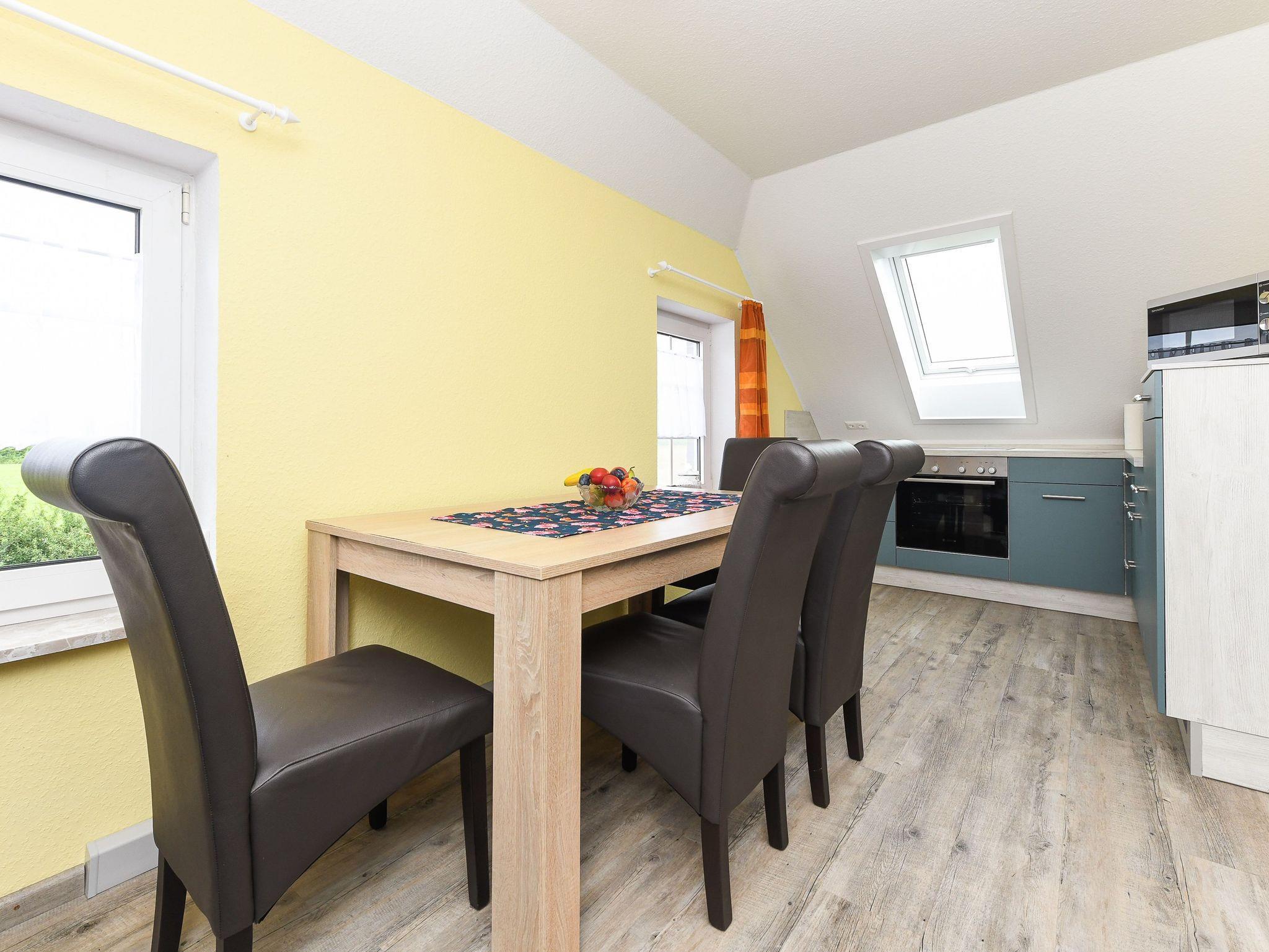 Größe ca. 50 Quadratmeter, Wohnzimmer, Küche, Schlafzimmer, zweites separates Schlafzimmer/Kinderzimmer, Badezimmer mit Dusche, Waschtisch und WC, Obergeschoss, optimal für 2 bis 3 Personen und zusätzlich ein Kleinkind.
