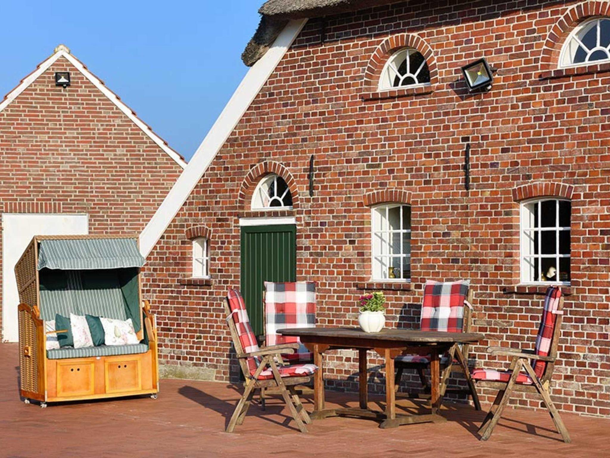 Am Haus direkt an der Ferienwohnung gibt es den Gästepavillion mit Grill und Gartenmöbeln, einen Strandkorb sowie eine grosse Spiel- und Liegewiese mit einem tollen weiten Ausblick auf die Felder rund um das Haus und auf Sonnenauf- und -untergang ? gerade zur Morgen- und Abenddämmerung sind auch oft Wildtiere zu beobachten! Terrasse und Garten sind ideal geeignet, mal so richtig faul in der Sonne zu sitzen oder bei einer Tasse Tee ? denn hier ist ja Ostfriesland ? endlich einmal ein gutes Buch zu lesen.