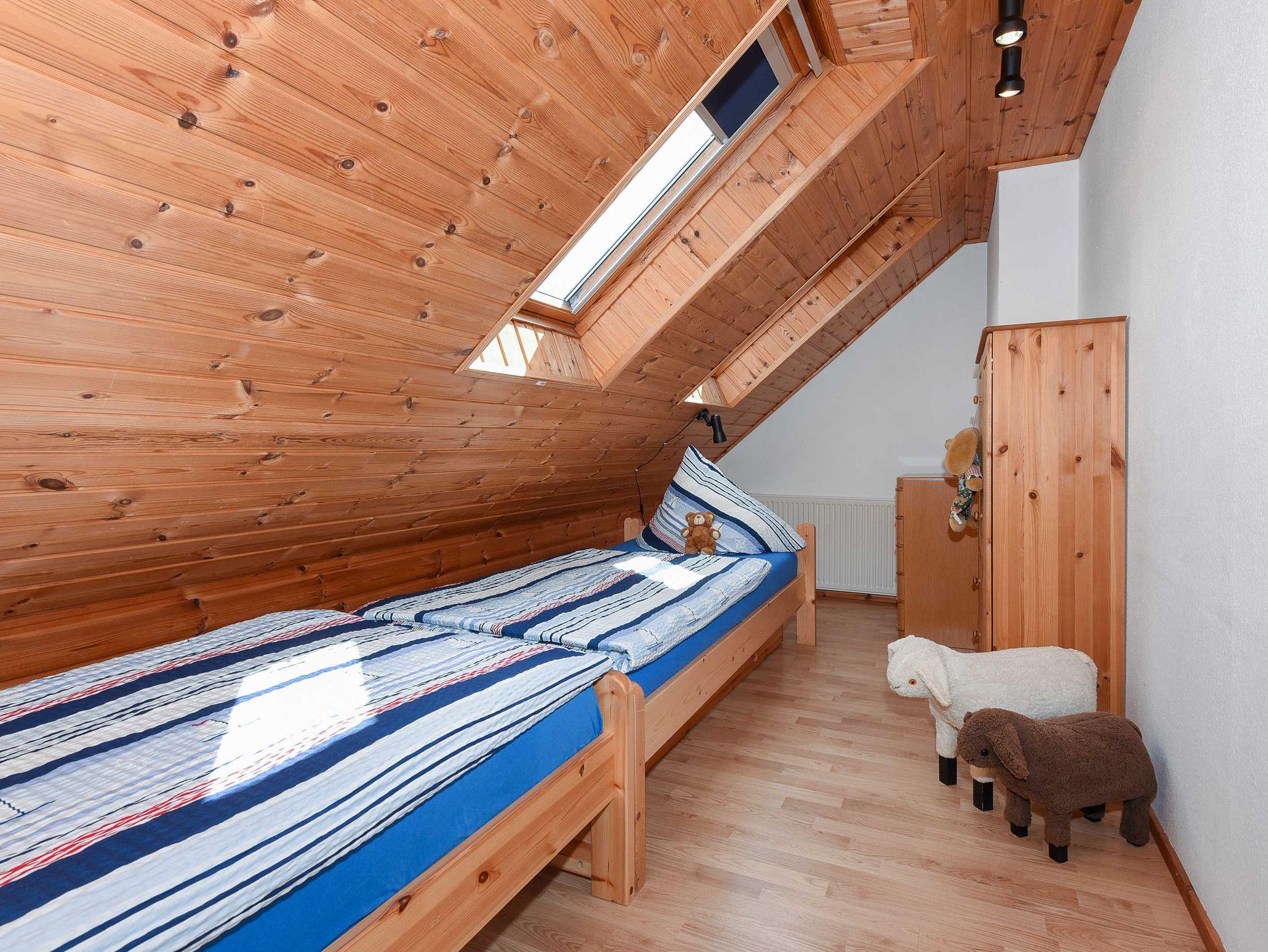 Größe: ca. 75 Quadratmeter, Wohnraum mit integrierter Küche, Schlafzimmer, zweites separates Schlafzimmer/Kinderzimmer, Badezimmer mit Dusche, Waschtisch und WC, Obergeschoss, optimal für 2 bis 4 Personen und zusätzlich ein Kleinkind.