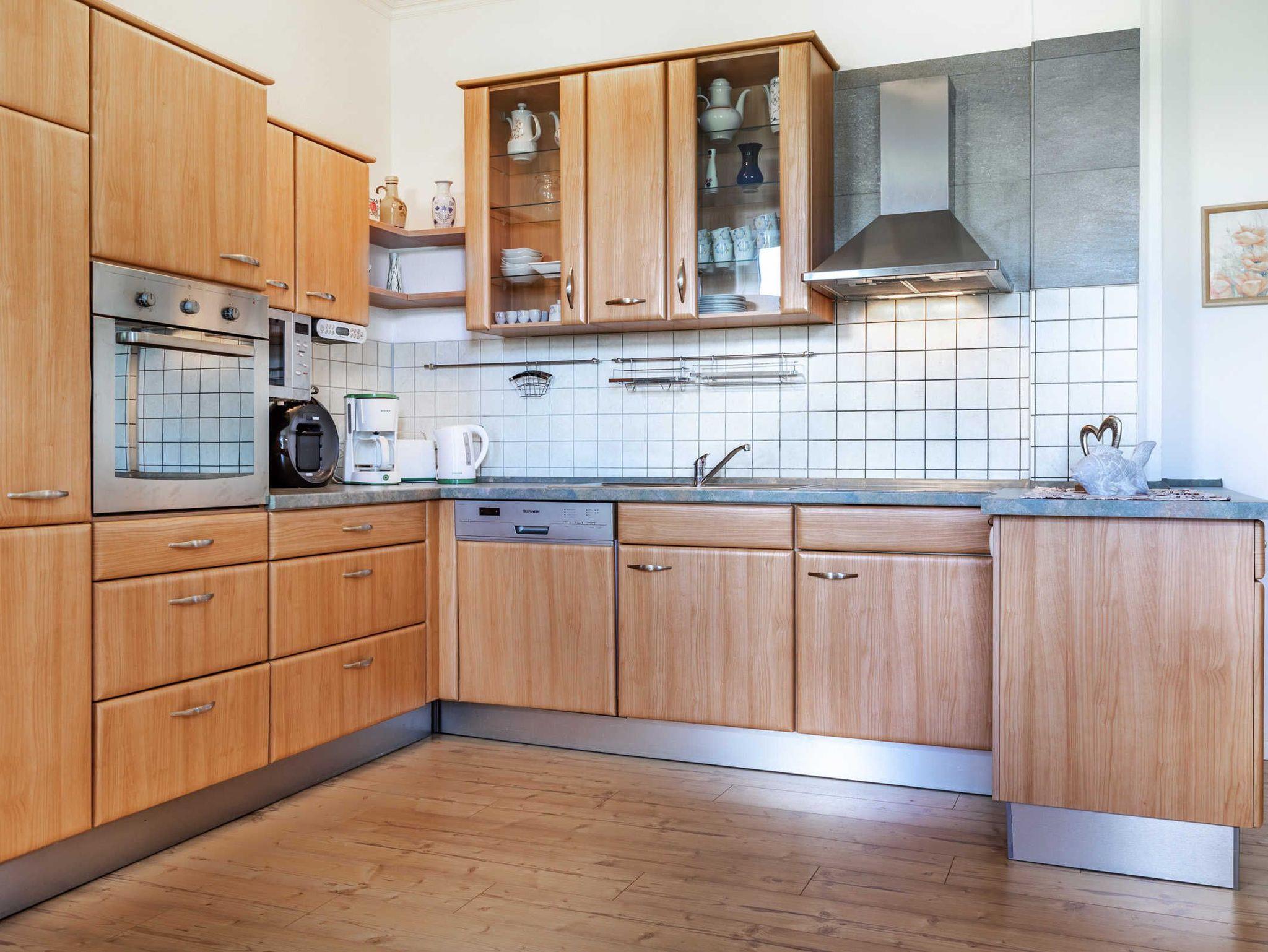 Modern, hell und großzügig eingerichtete 2- Zimmer Ferienwohnung im Bauernhaus. Die separete Küche bietet ausreichend Platz und verfügt über einen Esstisch, Backofen, 4- Platten Herd, Kühlschrank mit Gefrierfach, Spülmaschine, Mikrowelle, Kaffeemaschine, Wasserkocher und Toaster.