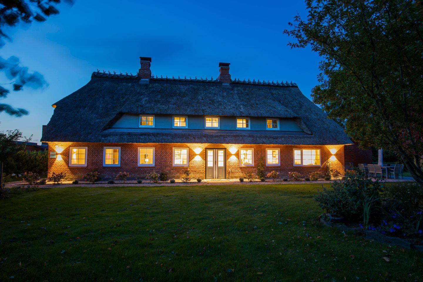 Das Ferienhaus „Fjord Cottage“ ist ein liebevoll kernsaniertes Reetdachhaus für bis zu 12 Personen mit einer Gesamtwohnfläche von 224 m². Es besteht aus zwei großzügigen Haushälften, die im Inneren des Hauses miteinander verbunden sind. Dadurch eignet sich das Haus ideal für den gemeinsamen Urlaub mit mehreren Generationen, größere Familien oder Freundesgruppen, die zusammen reisen und dennoch Rückzugsmöglichkeiten schätzen.