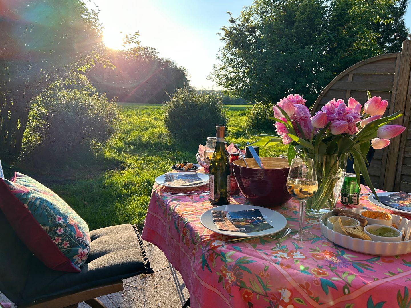 Umgeben von weiten Feldern und eingebettet in eine ruhige, abgelegene Straße eröffnet sich Dir hier eine naturnahe Oase voller Ruhe und Weite. Der unverbaute Blick in die offene Landschaft, das sanfte Spiel des Windes in den Feldern und die klare Luft schaffen eine besondere Atmosphäre der Entschleunigung. Ob beim gemeinsamen Frühstück auf der Terrasse, beim Lesen im Garten oder beim Sonnenuntergang – die Natur ist hier stets Dein nächster Nachbar.