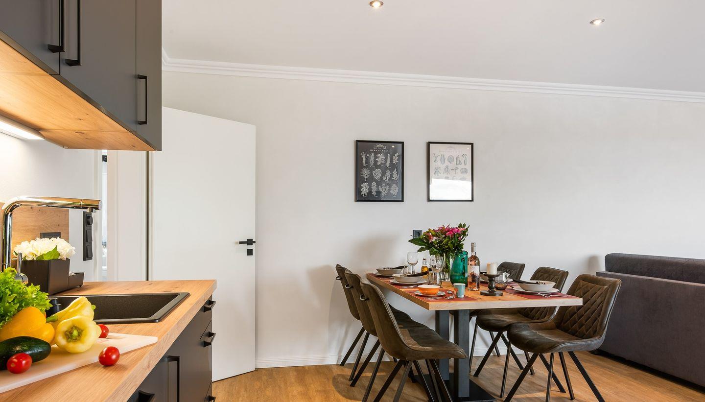 In der Wohnung findet man alles, was ihr für einen erholsamen Aufenthalt benötigt. Die Küche ist vollständig ausgestattet, sodass gemütlichen Kochabenden nichts im Weg steht. Im gemütlichen Wohnzimmer könnt ihr euch entspannen und angenehme Abende verbringen.