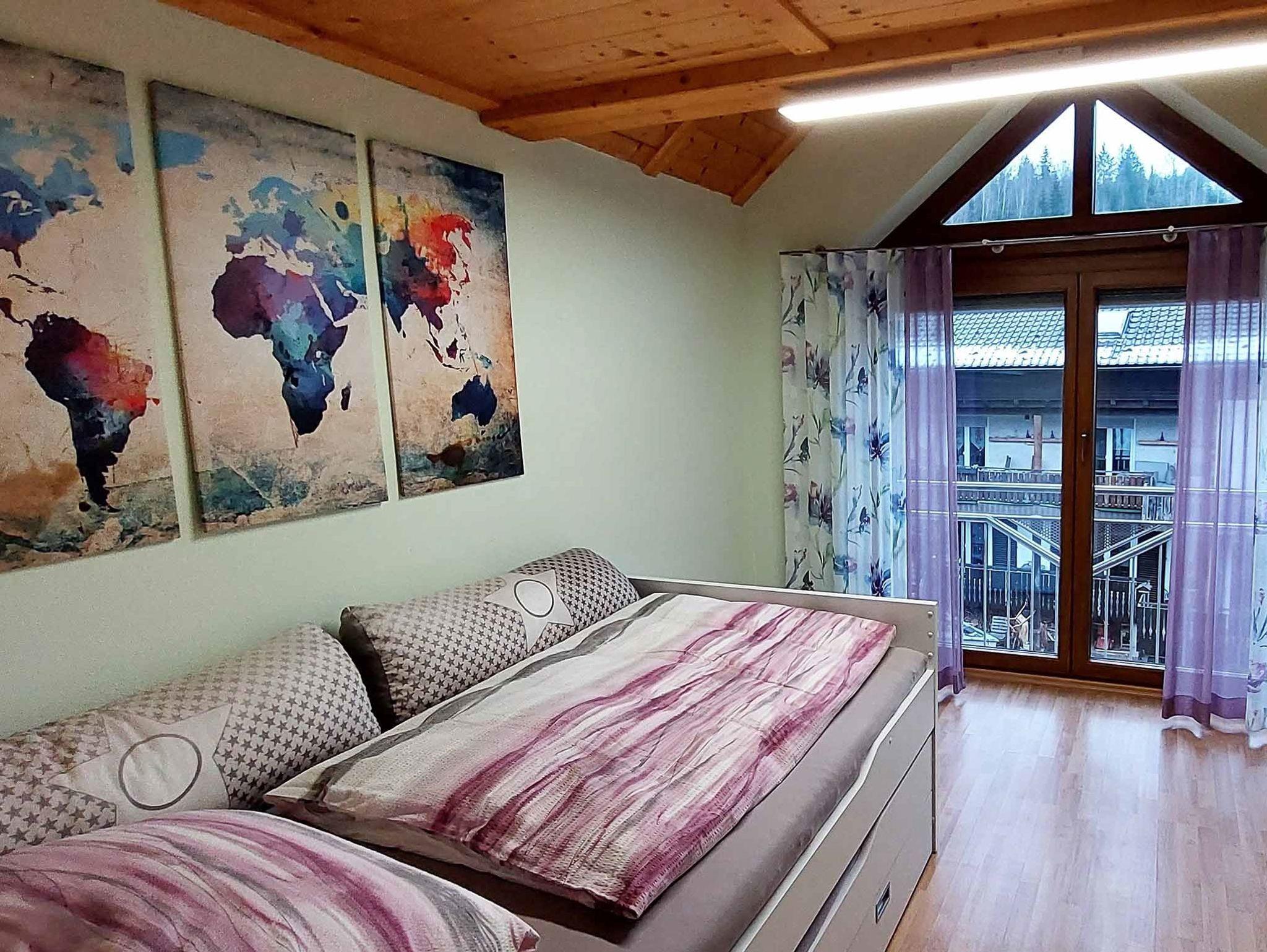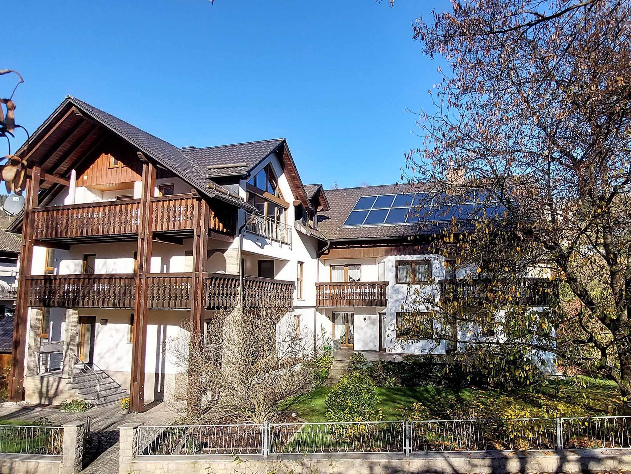 Unsere großzügige, helle Dachgeschosswohnung mit täglichem Schwimmbadeintritt und überdachtem Balkon bietet mit einer Wohnfläche von 120qm größten Wohnkomfort mit herrlichen Blick auf den Frankenwald. Die Nichtraucherwohnung ist neu renoviert, komplett mit Fußbodenheizung ausgestattet (ohne Teppich) und ganzjährig buchbar. Es gibt WLAN-Zugang im gesamten Haus.