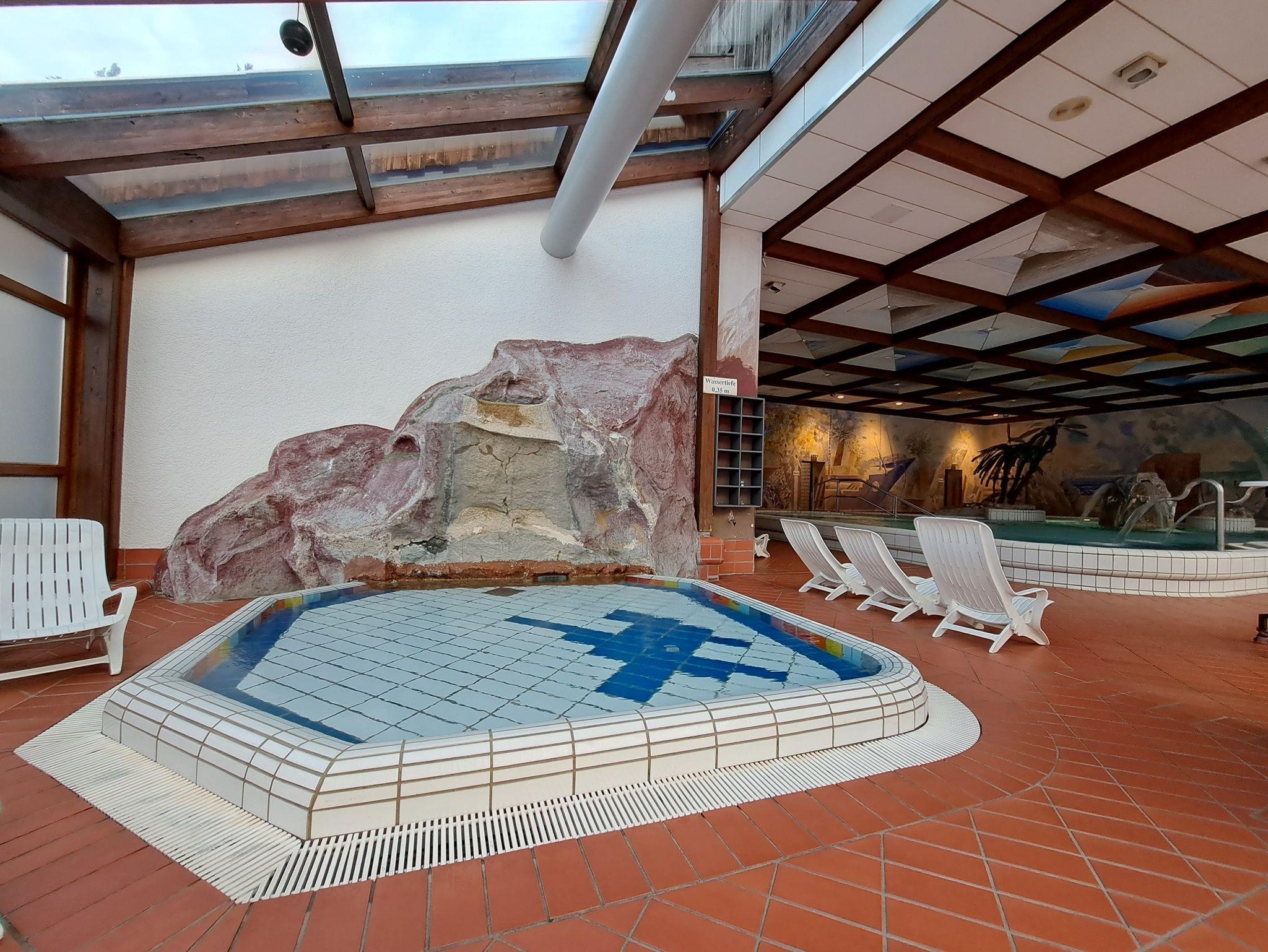 Im gegenüberliegendem Erlebnisbad Steinwiesen erwartet Sie im Hallenbereich ein Whirlpool, Massagedüsen, ein Dampfbad, eine Sonnenwiese, eine Infrarotkabine und vieles mehr. Zusätzlich steht für die Kleinen ein Kinderbecken zum Austoben und Spielen zur Verfügung. Sie erhalten freien Eintritt für 4 Stunden am Tag. Der großzügige und neue Saunabereich ist kostenpflichtig zubuchbar.