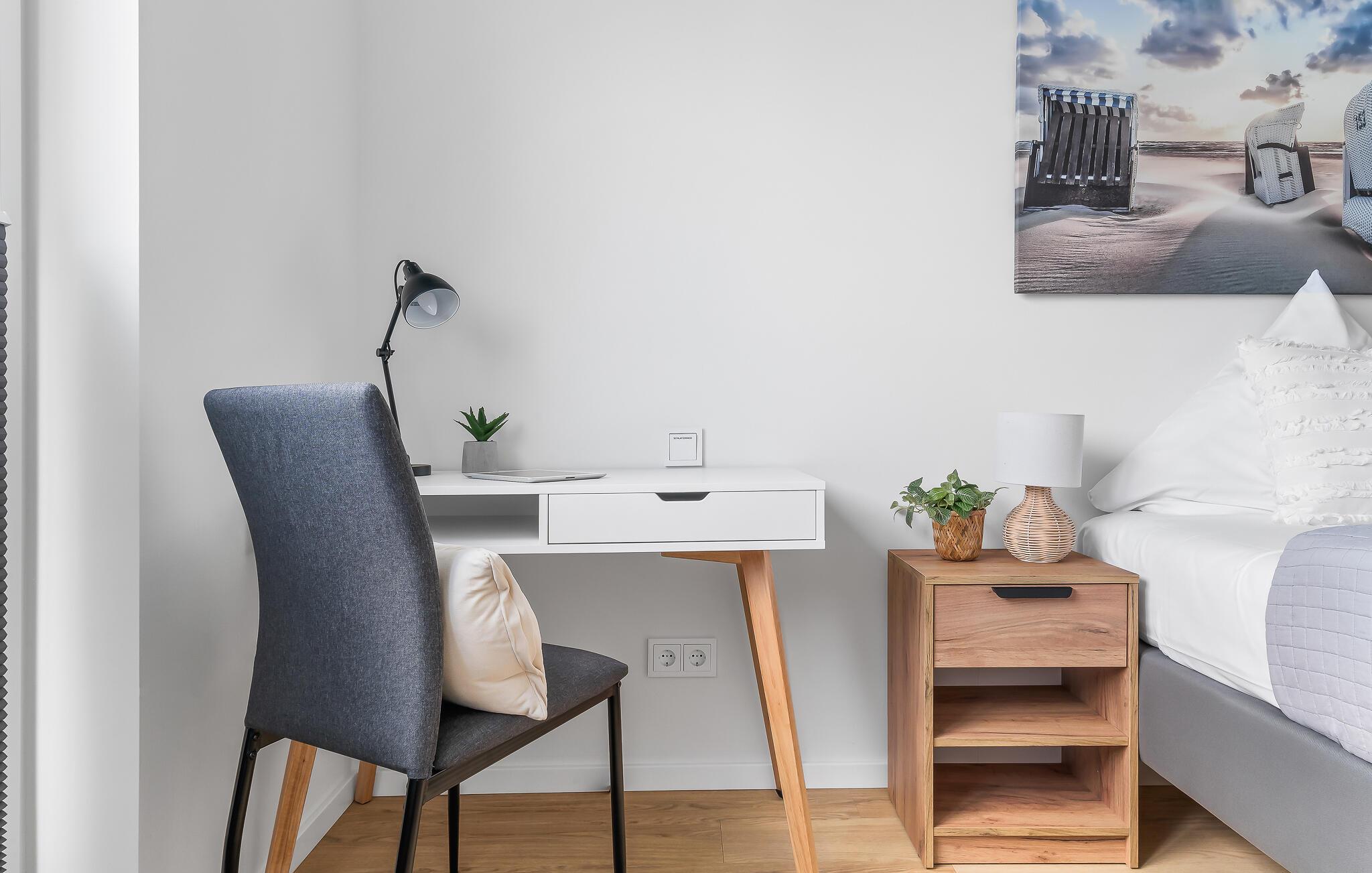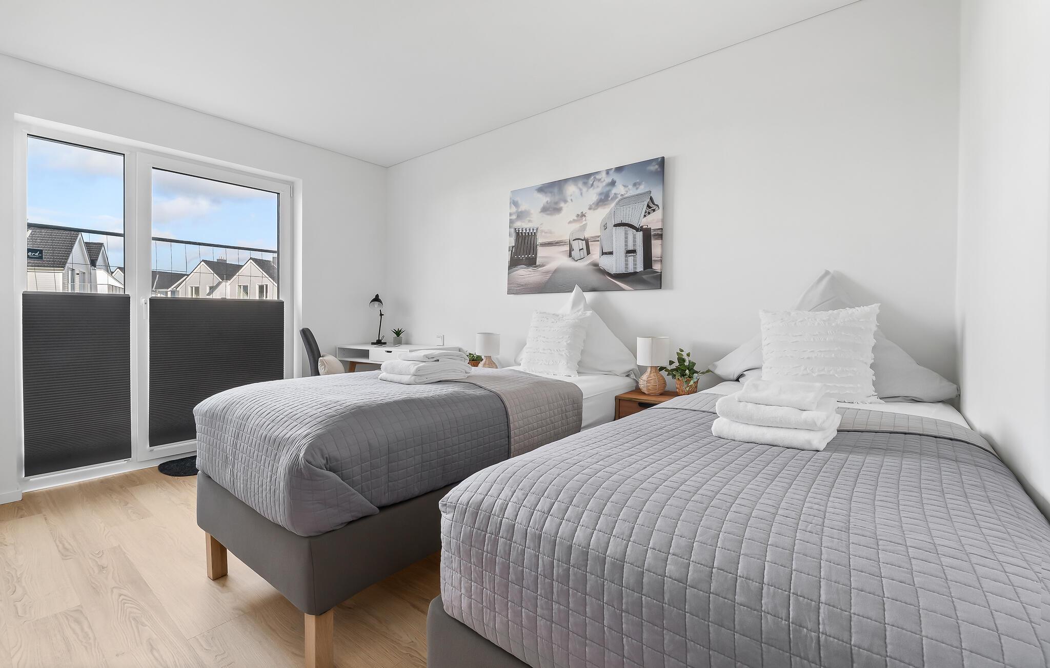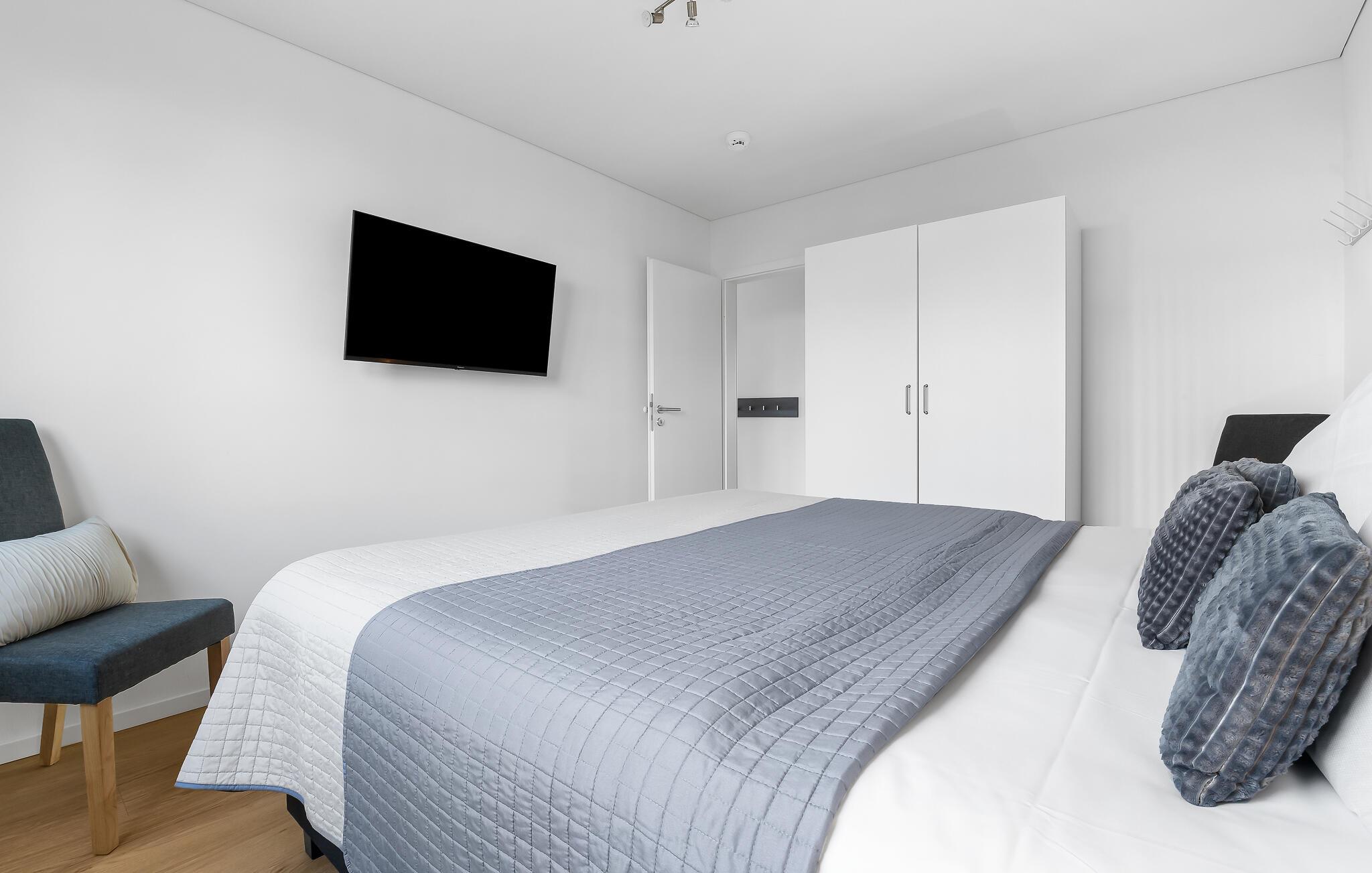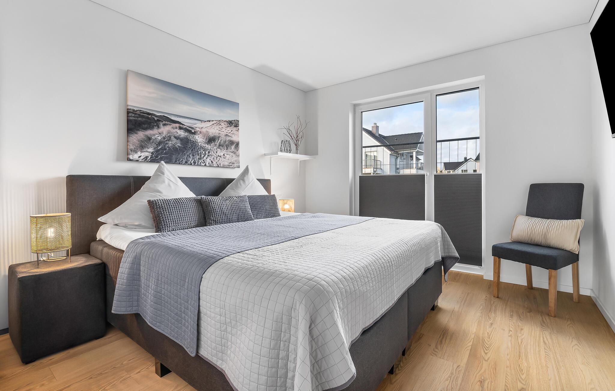 Soverommene er innredet med en dobbeltseng og to enkeltsenger. En ekstra soveplass er tilgjengelig på sovesofaen av høy kvalitet med Bonell-fjærkjernemadrasser. Det lover en avslappende nattesøvn i Sternenmeer.