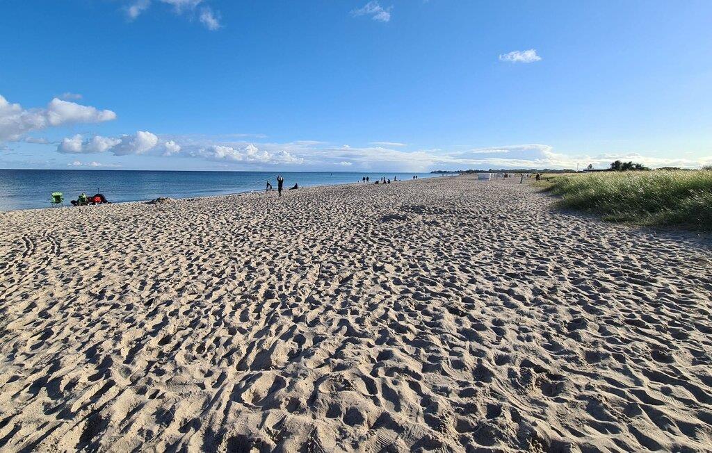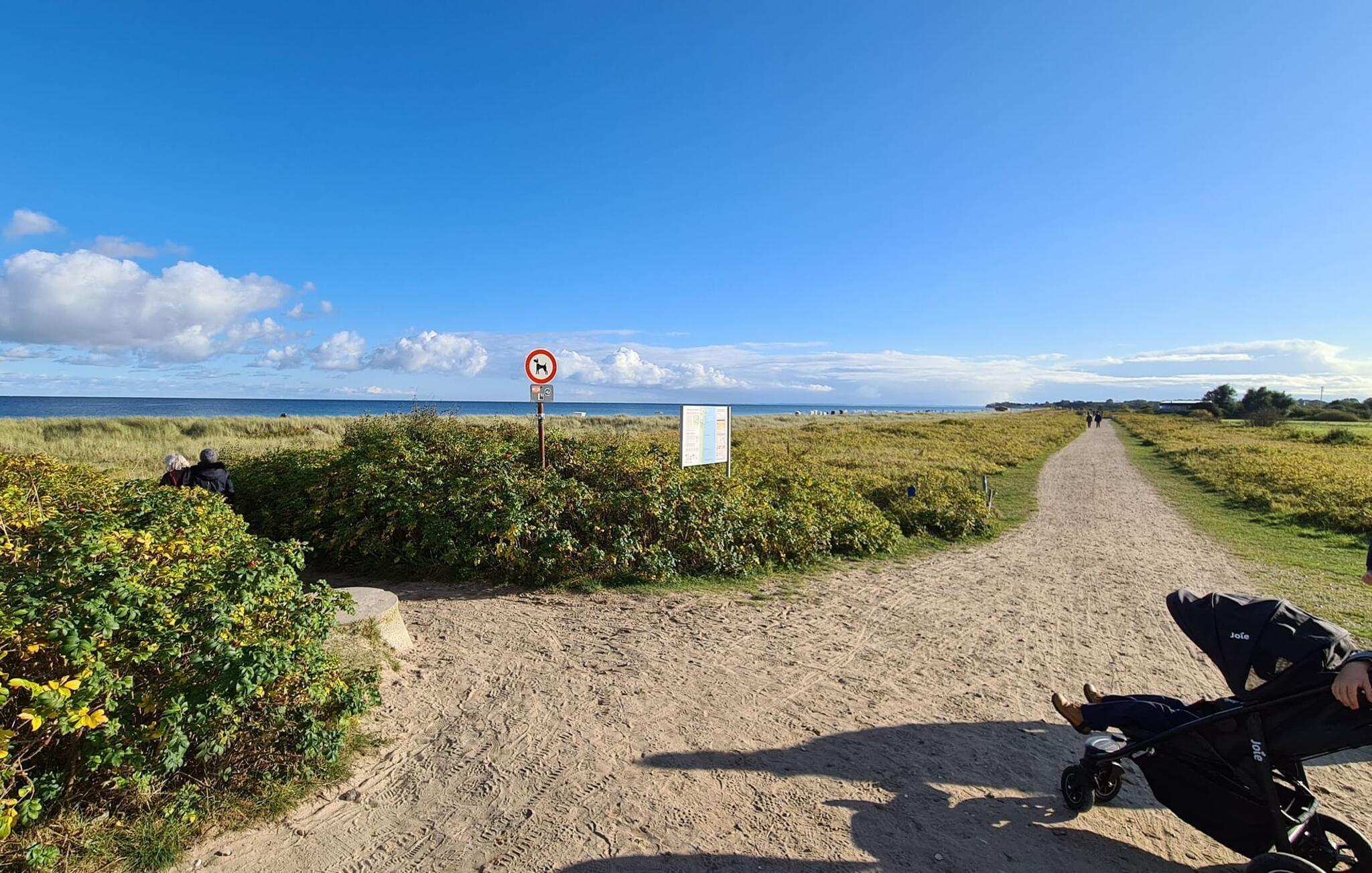 Sandstranden Weidefelder med kiosk, restaurant og strandstoler ligger bare noen få minutters gange unna, og er et attraktivt reisemål når som helst på året. Minigolfbanen i maritim stil ligger også i umiddelbar nærhet, og er til glede for både store og små. Småbåthavnen og havnepromenaden med supermarked og restaurant ligger også bare noen minutters gange unna. Du kan altså la bilen stå i ferien. En tralle er tilgjengelig for shopping eller for turen til stranden.