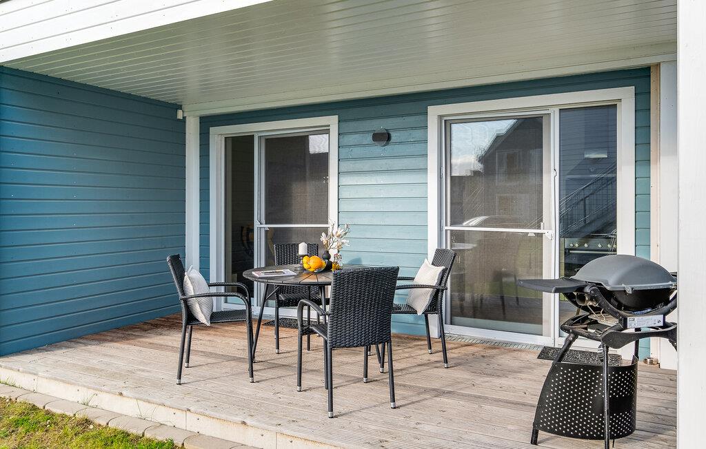 To møblerte, overbygde terrasser venter på deg, og tilbyr beskyttelse mot regn, vind og sol. Det er også to solsenger, som lover fantastisk avslapning. Du kan tilbringe koselige kvelder ved grillen.
