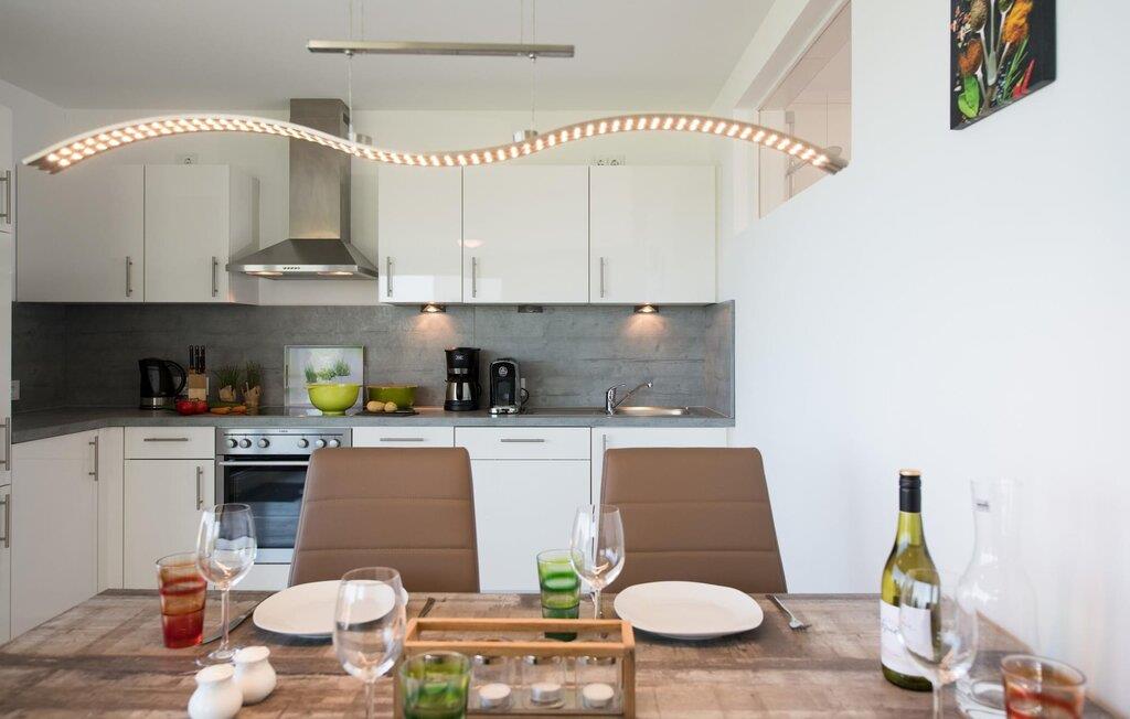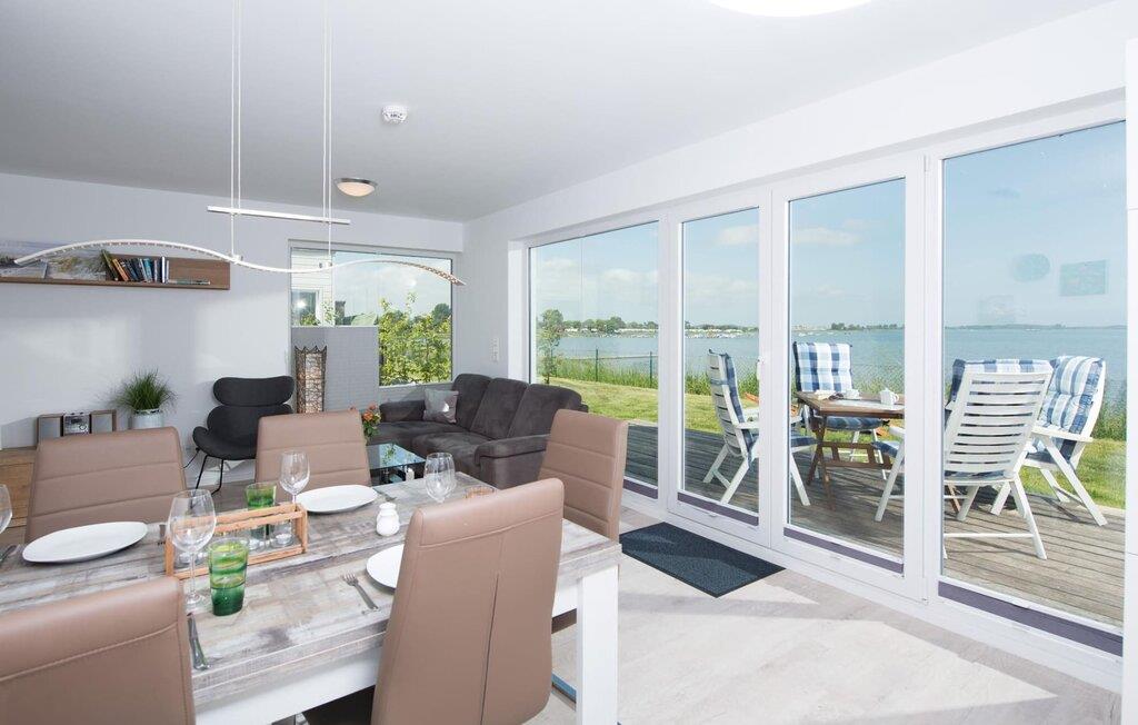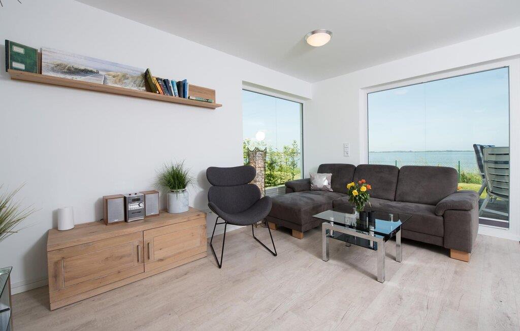 Ferieleiligheten Sternschnuppe er moderne innredet og har en åpen planløsning, og fra hele stue- og spisestuen har du uhindret utsikt over Schlei. Vinduer fra gulv til tak som vender ut mot panoramautsikten over vannet og seilbåtene som passerer, gjør feriedrømmene til virkelighet. Det åpne og velutstyrte kjøkkenet oppfyller alle ønsker. Spisebordet og den komfortable sittegruppen med utsikt over vannet inviterer deg til å slappe av og dagdrømme.