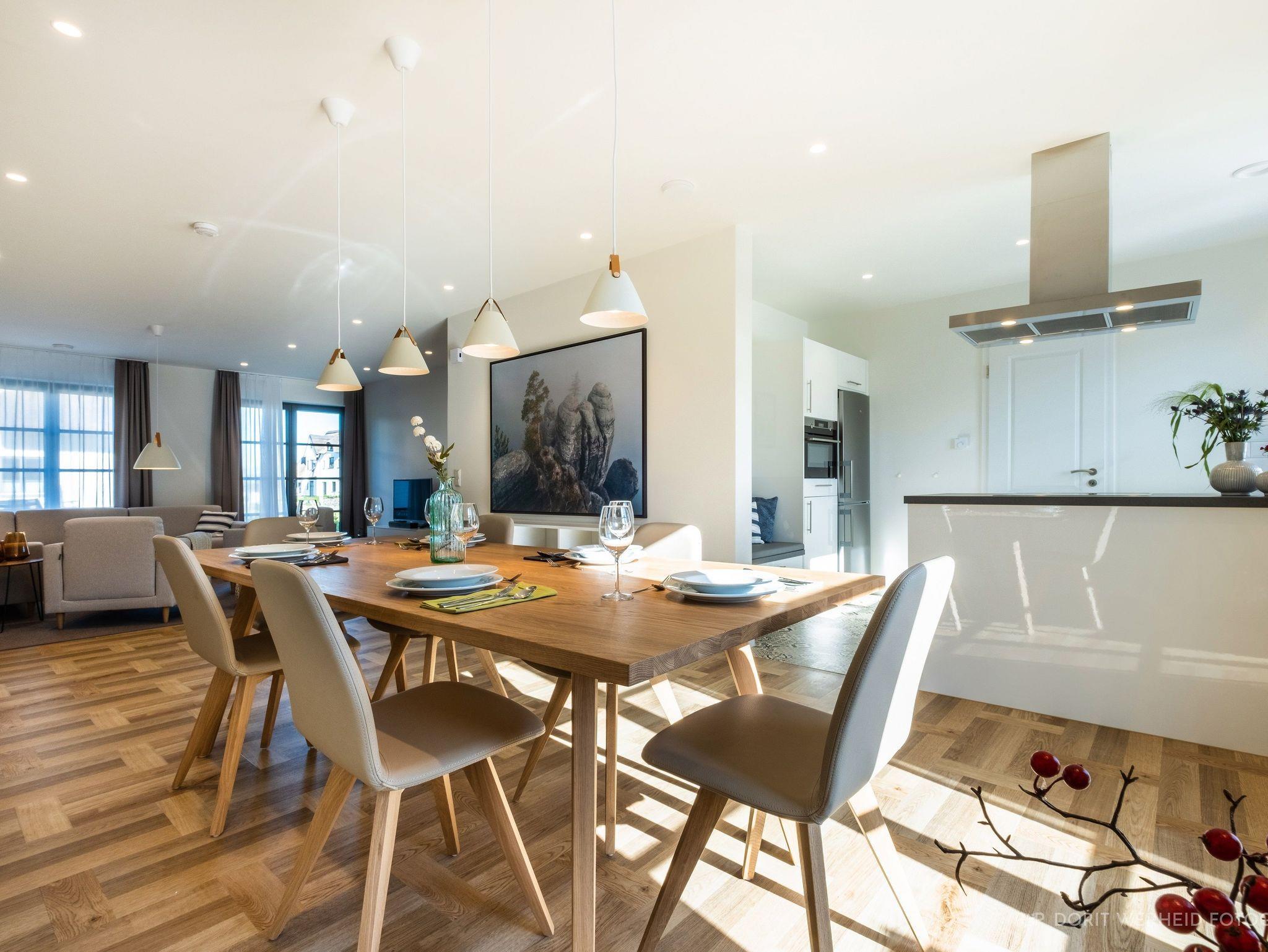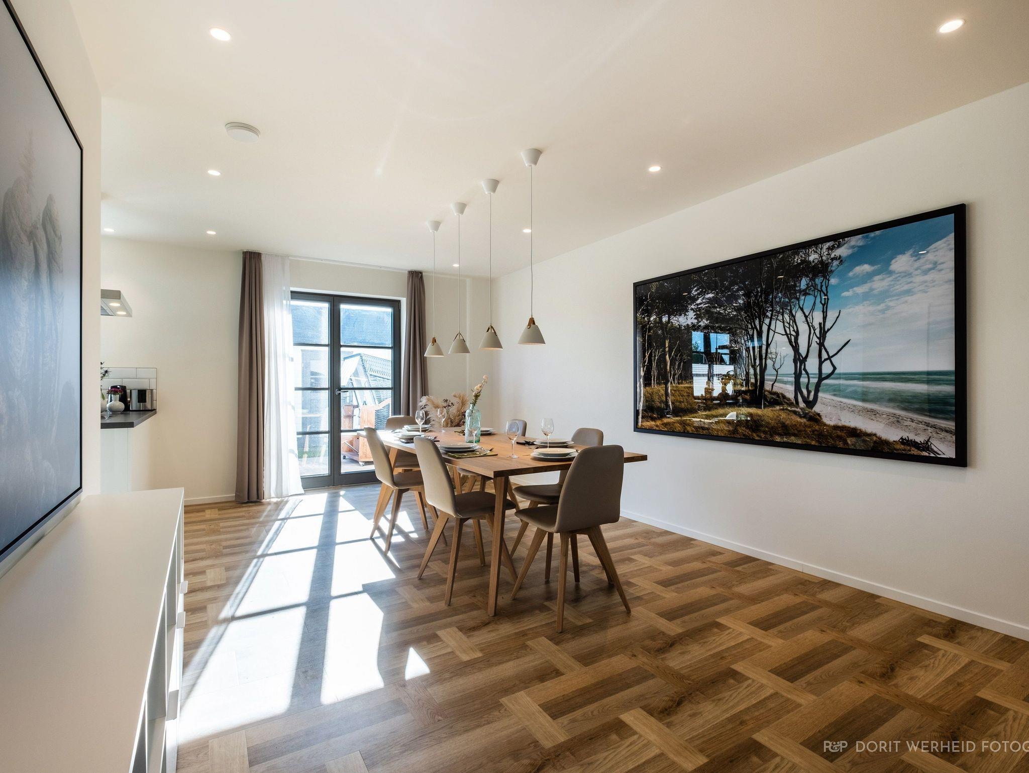 Durch den Eingangsbereich gelangen Sie vom Flur aus in den großzügigen Wohn- Essbereich ausgestattet mit einer gemütlichen Sitzecke, Flachbild Fernseher, Esstisch für 6 Pers. Die voll ausgestatte offene Einbauküche verfügt über Spülmaschine, Backofen, Mikrowelle, Induktionsherd Kühlschrank mit separatem Gefrierabteil, Nespresso- Kapsel- Maschine, Wasserkocher und Toaster.