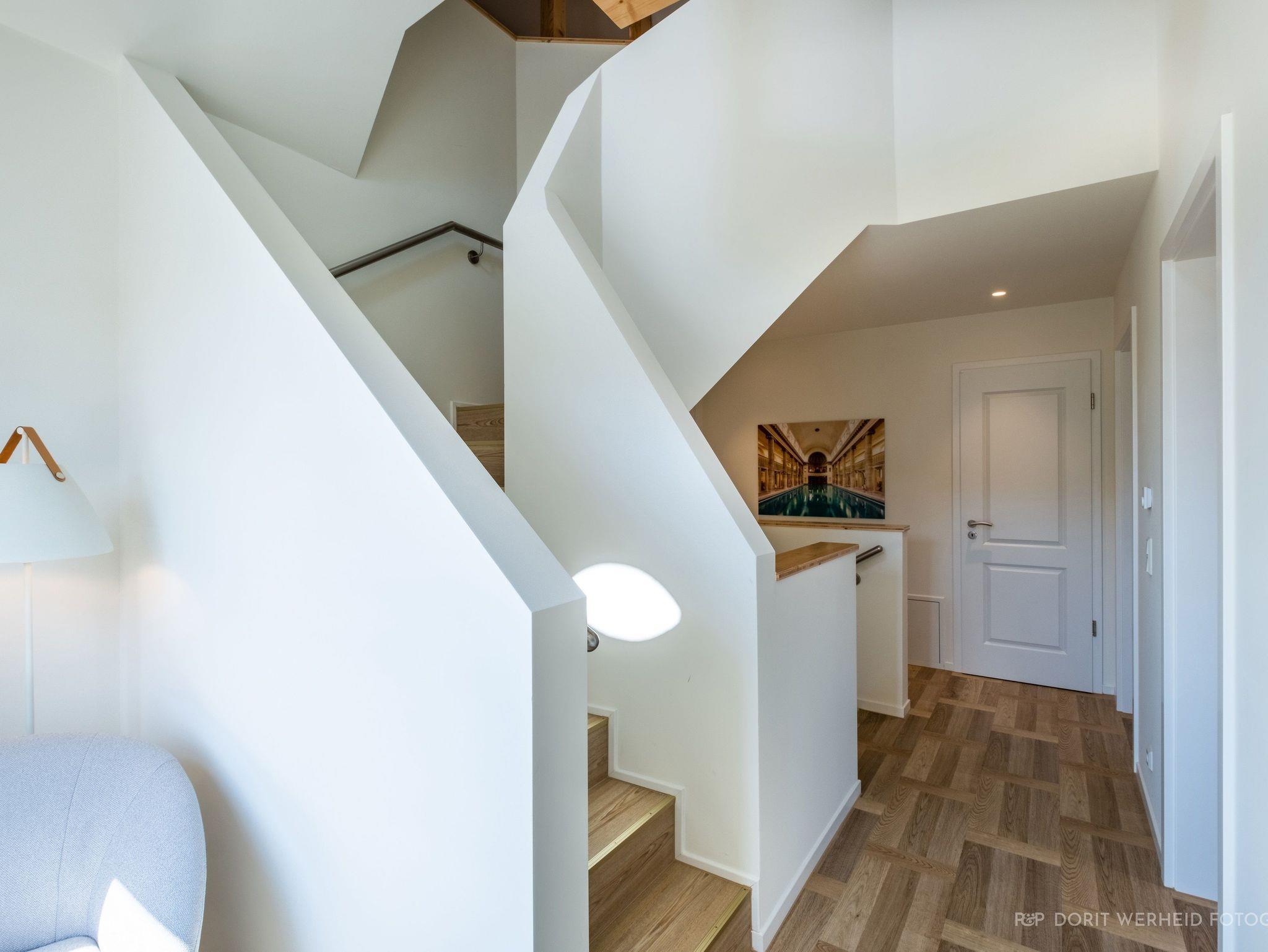 Das Ferienhaus bietet insgesamt 3 Schlafzimmer und drei Bäder die alle mit WC, ebenerdiger Dusche, Waschtisch und Haartrockner ausgestattet sind. Ein Schlafzimmer und Badezimmer mit Dusche befinden sich im Erdgeschoß und sind jeweils vom Flur erreichbar. Im Obergeschoß befindet sich ein Schlafzimmer mit „Bad en suite“ sowie ein weiteres Schlafzimmer und ein Badezimmer die vom Flur aus erreichbar sind in diesem Badezimmer befindet sich zusätzlich eine hauseigene finnische Sauna mit Infrarot Kabine. Bei allen Betten handelt es sich um hochwertige Boxspringbetten.