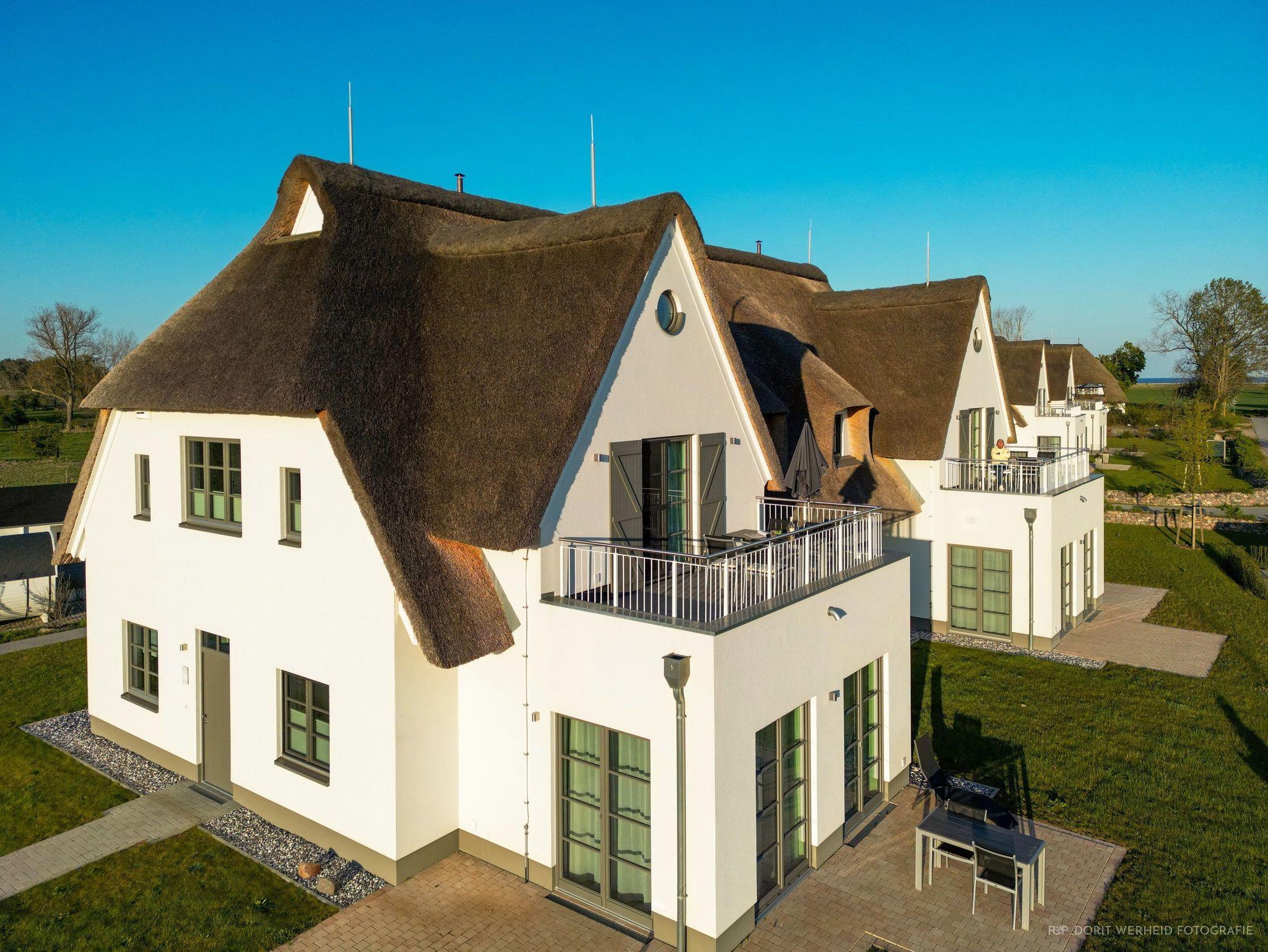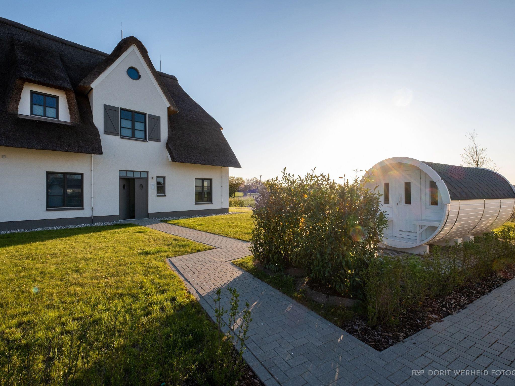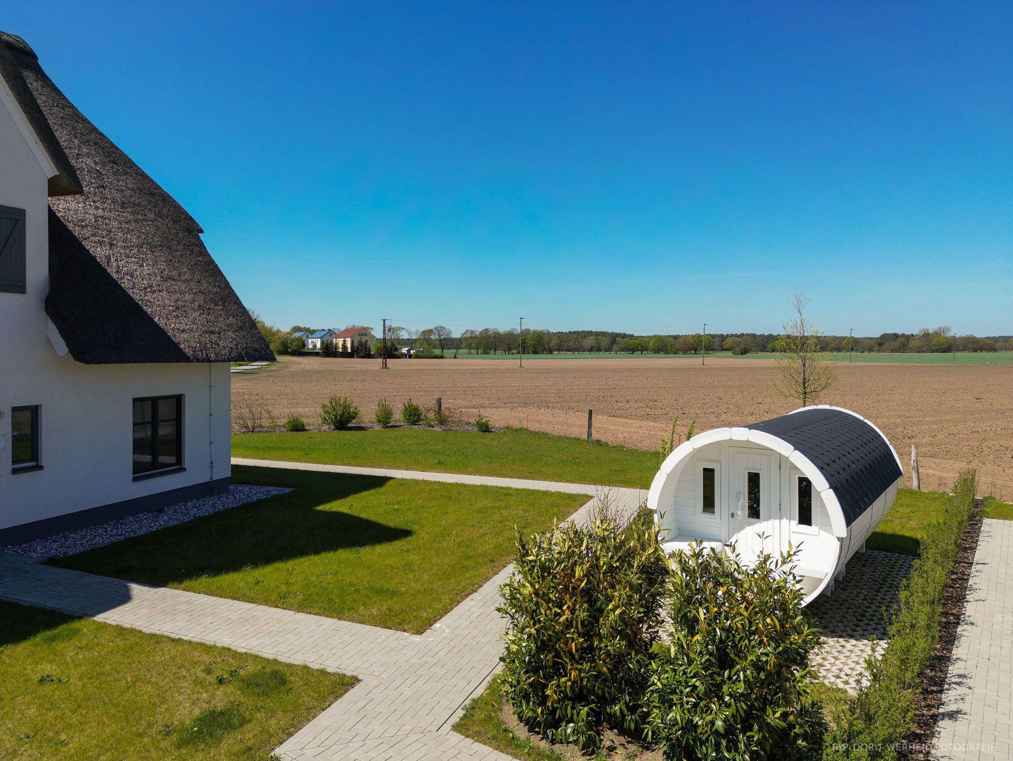 Die Reet gedeckten Häuser wurden in nachhaltiger Holzbauweise errichtet und die Einrichtung ist durch helle sowie freundliche Farben geprägt. Der Blick auf die Haffküste und die umliegende Natur machen Ihren Urlaub einzigartig.