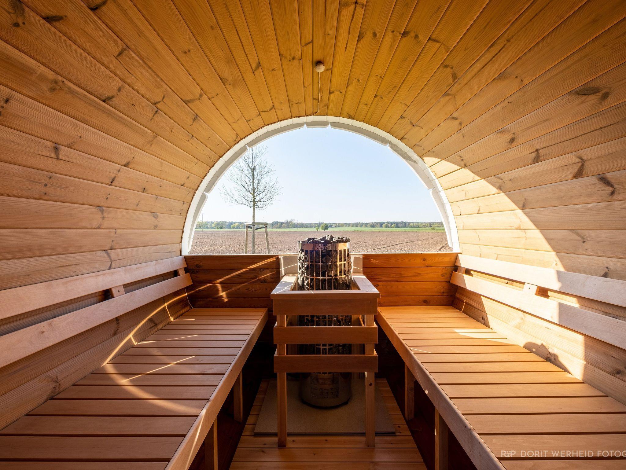 Im Garten des Objektes befindet sich eine Fass-Sauna mit wundervollem Blick in die Landschaft. Auf Wunsch können Sie gegen geringen Aufpreis die Saunanutzung für Ihren Aufenthalt dazubuchen. Die Sauna gehört zu dem Haus mit insgesamt vier Wohnungen zur gemeinsamen Nutzung. Saunahandtücher sind nicht im Preis vorhanden und können gegen Gebühr bei der Verwalterin dazugebucht werden.