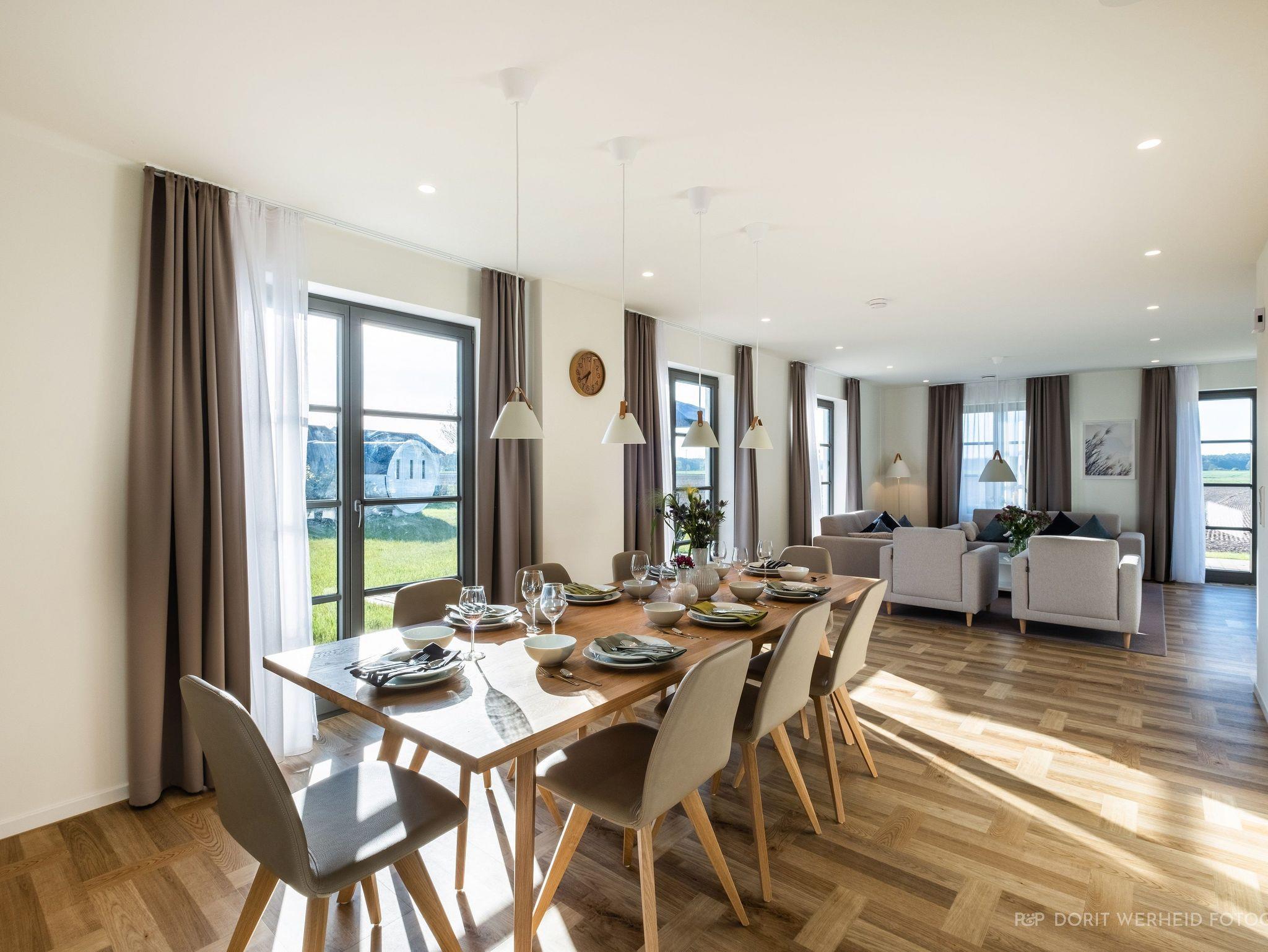Die Reet gedeckten Häuser wurden in nachhaltiger Holzbauweise errichtet und die Einrichtung ist durch helle sowie freundliche Farben geprägt. Der Blick auf die Haffküste und die umliegende Natur machen Ihren Urlaub einzigartig.