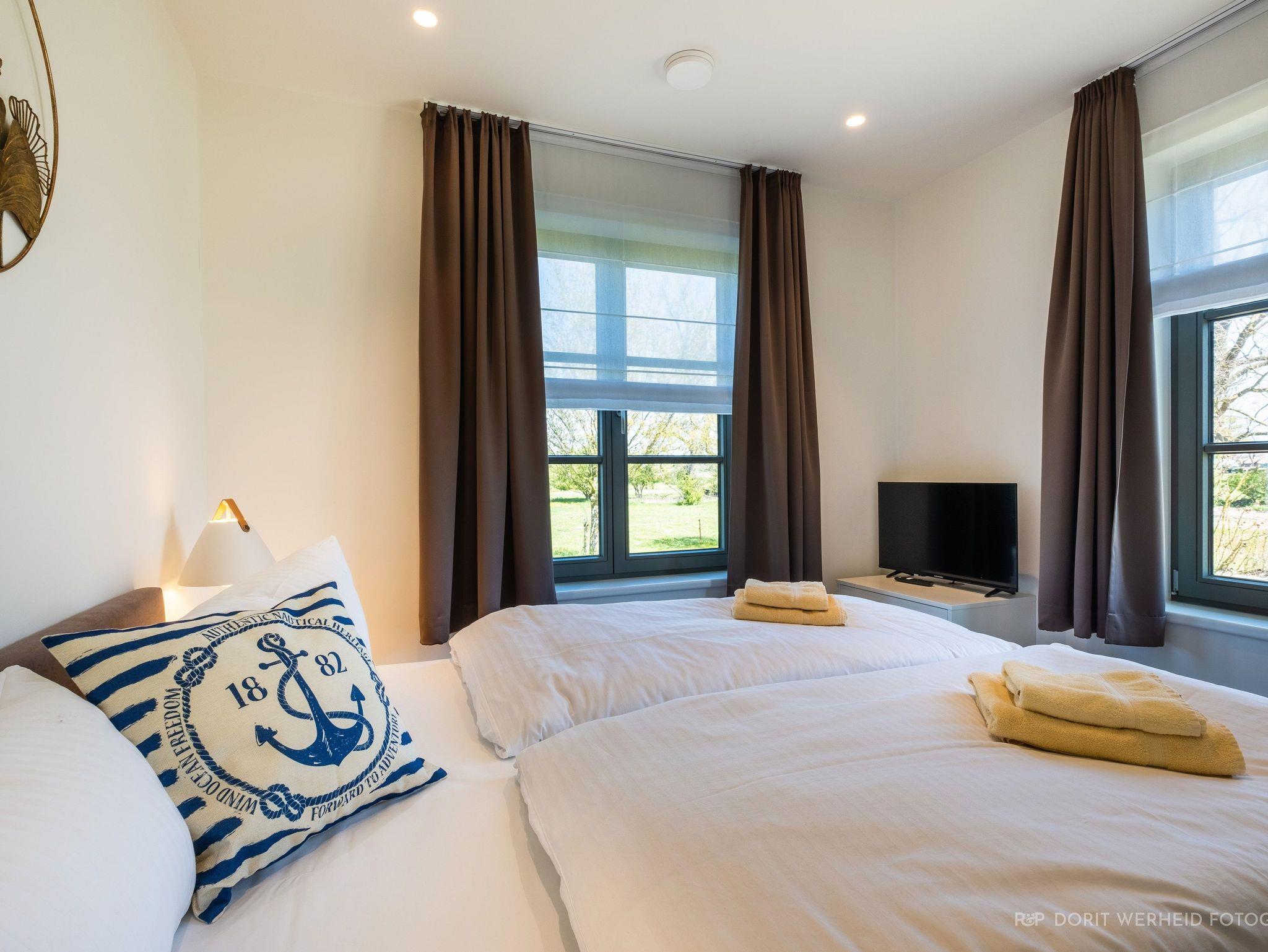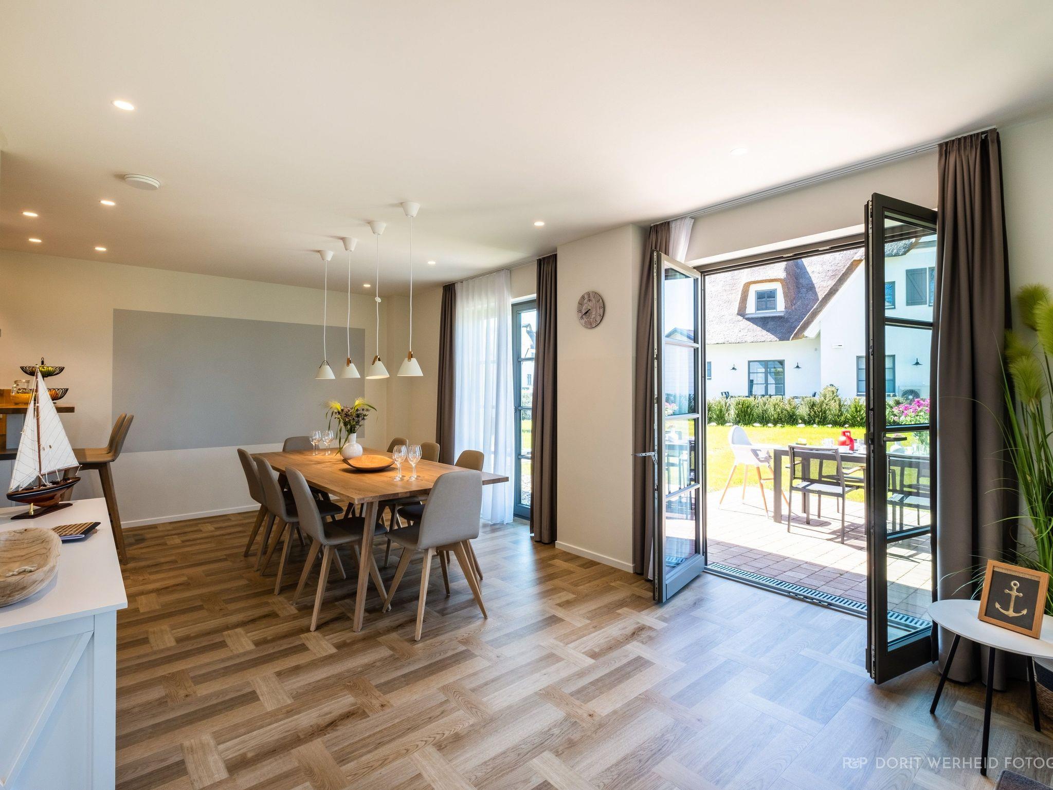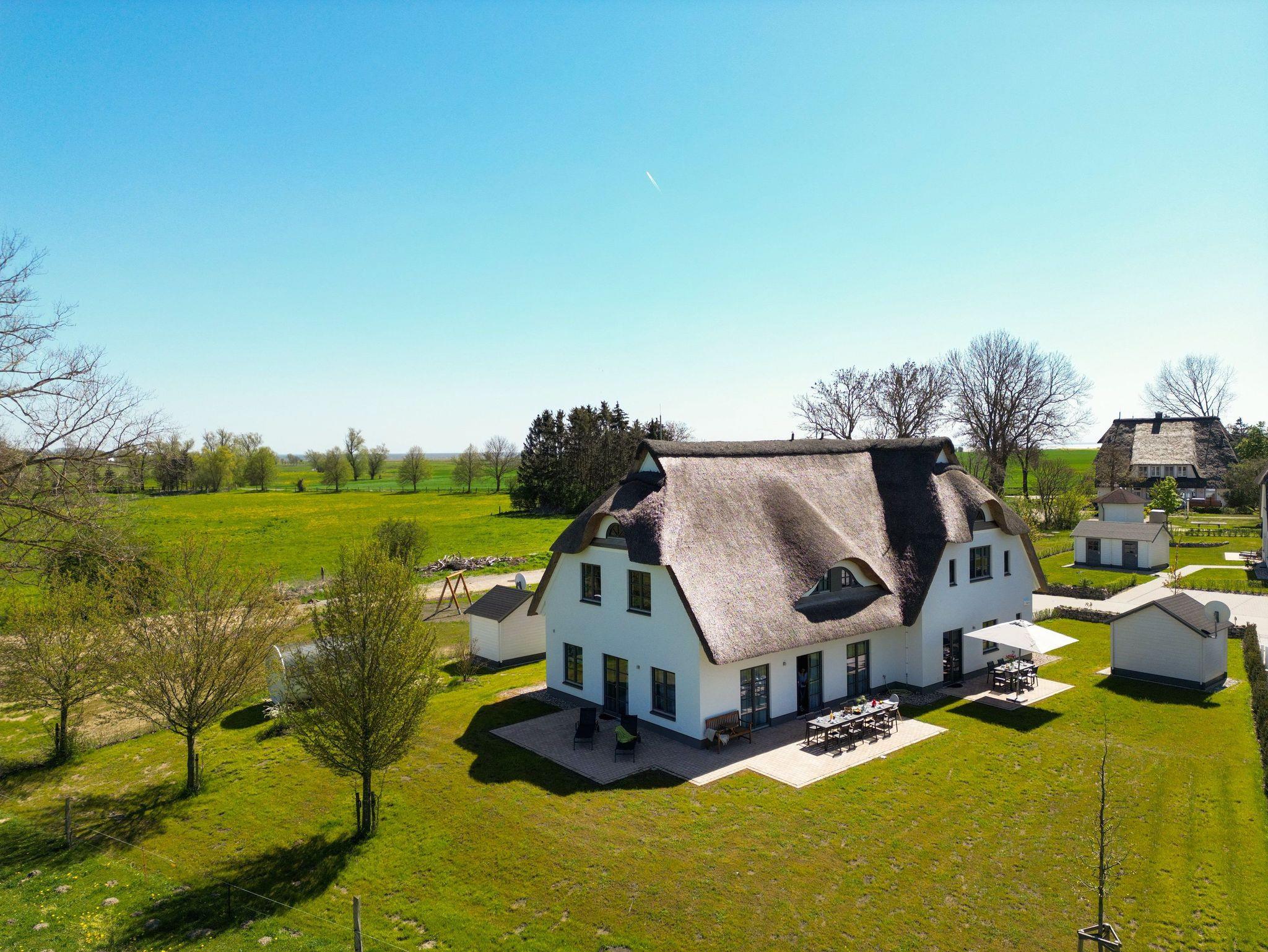 Die Reet gedeckten Häuser wurden in nachhaltiger Holzbauweise errichtet und die Einrichtung ist durch helle sowie freundliche Farben geprägt. Der Blick auf die Haffküste und die umliegende Natur machen Ihren Urlaub einzigartig.