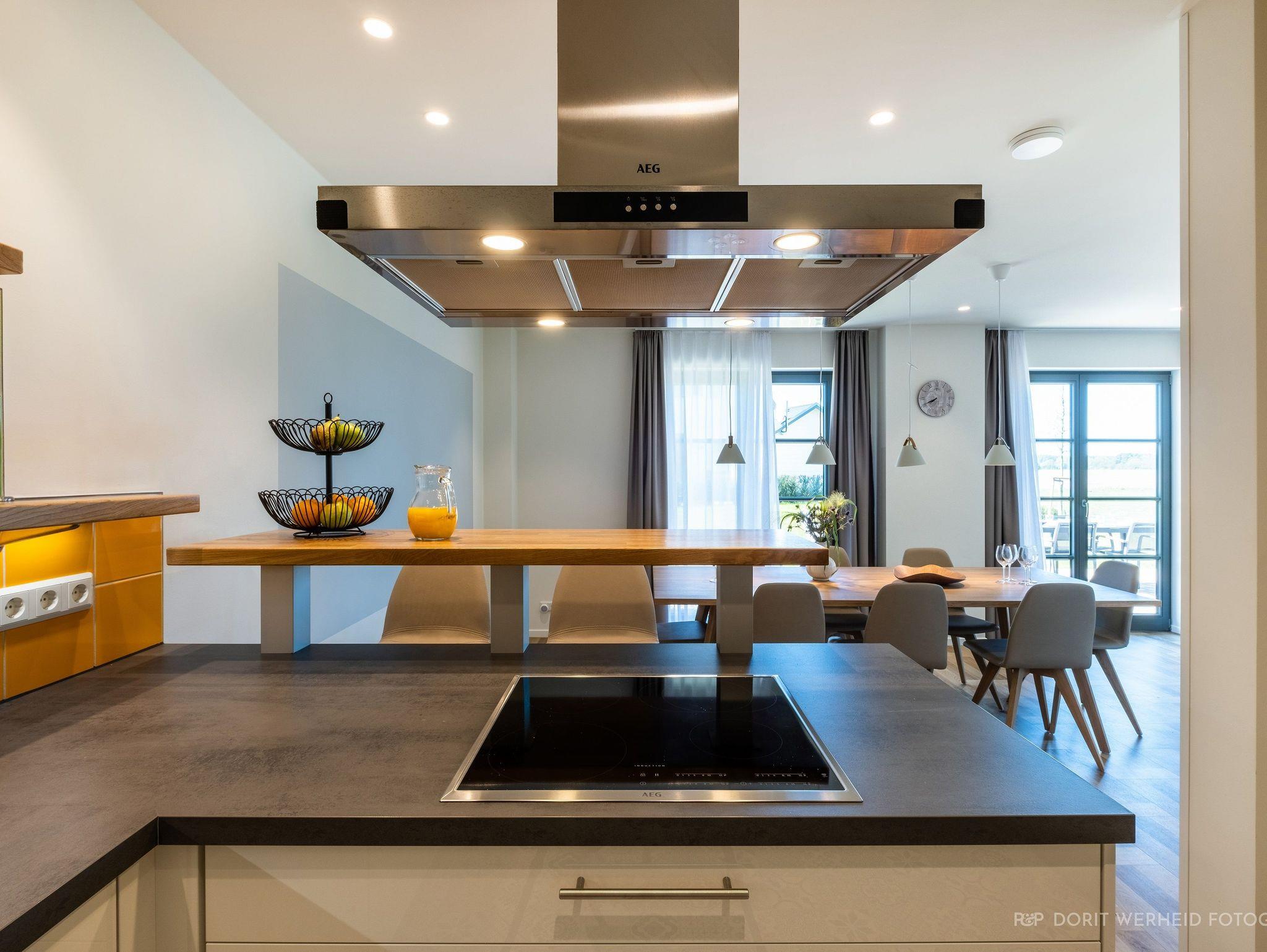 Der geräumige Wohn-Ess-Bereich im Erdgeschoß bietet ausreichend Platz für gemeinsame Essen und gesellige Fernseh- oder Spielabende. Es stehen Ihnen Gesellschaftsspiele, DVD?s und eine kleine Auswahl an Büchern zu Verfügung. Die Wohnküche mit Vollausstattung verfügt über alle Standard-Geräte, wie Spülmaschine, Mikrowelle, Backofen, Induktionsherd, Kaffeemaschine, Wasserkocher & Toaster. Über diesen Bereich gelangt man direkt auf die beiden Terrassen mit herrlichem Blick ins Grüne. Für gemütliche Grillfeste auf der Terrasse steht ein elektrischer Kontaktgrill bereit.