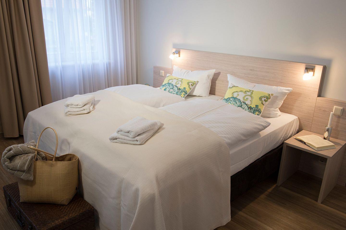Das Appartement mit Süd-Westterrasse, liegt im Erdgeschoss und bietet mit seinen zwei Schlafzimmern mit 2 Komfortdoppelbetten und einer Schlafcouch im Wohnbereich Platz für 1-6 Personen.
