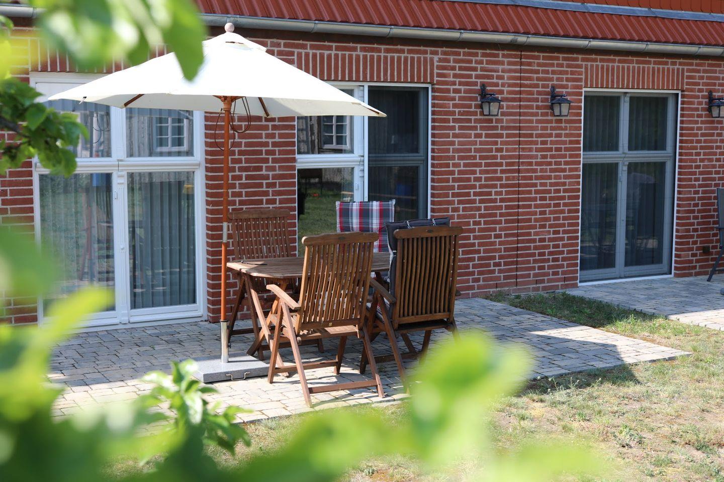 Appartement Nr. 53 Hofmaler in einem der historischen Gesindehäusern des Westflügels von Schloss Stolpe, Südseite zum Haff mit Süd-Terrasse für 2-6 Personen .
