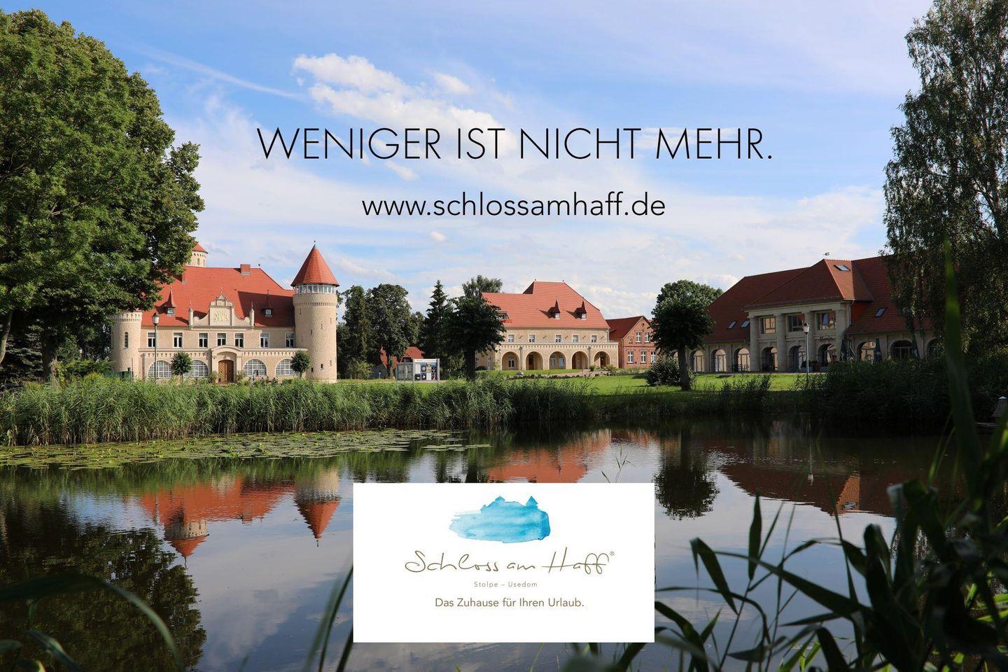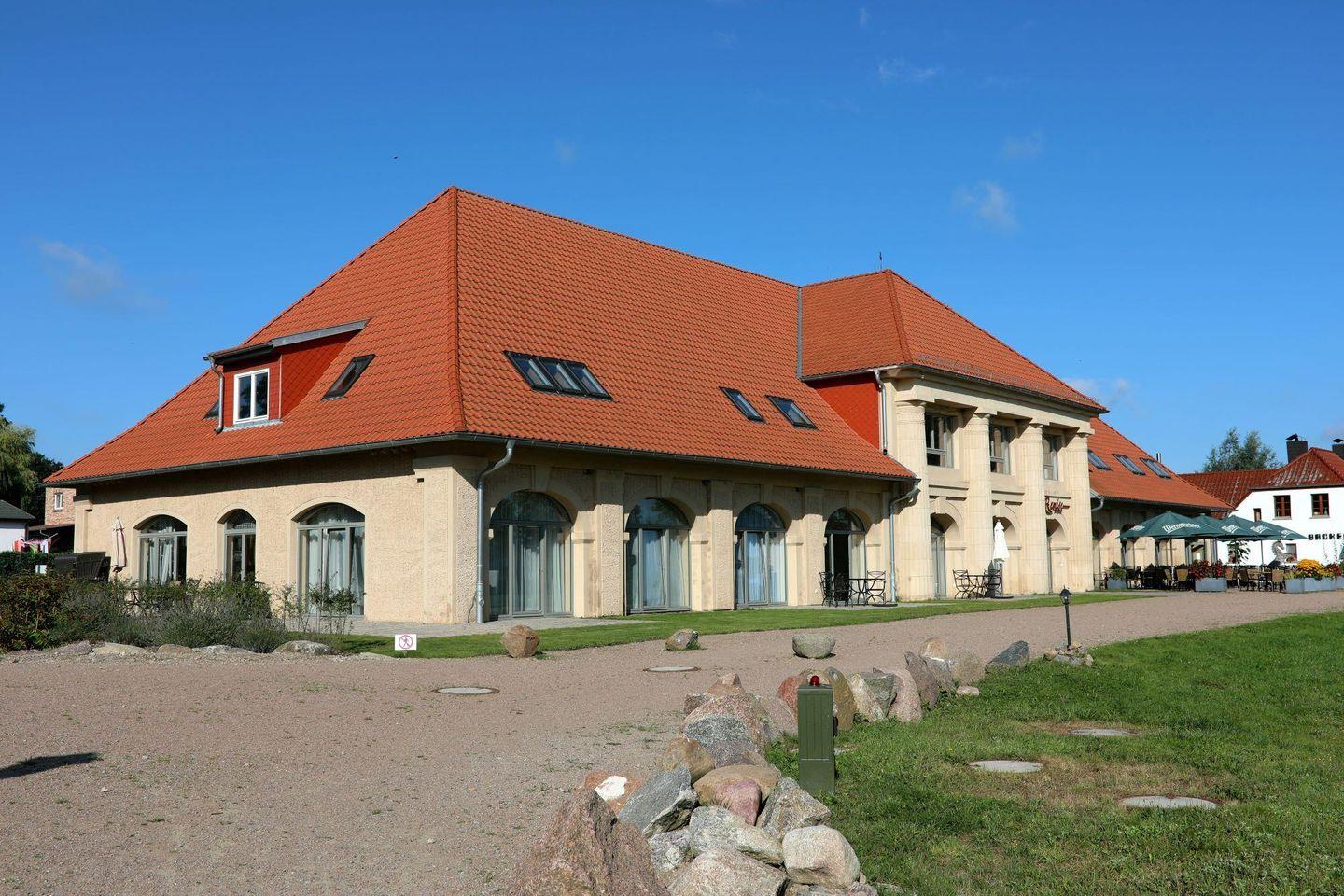 Das Appartement "Oleander" in der ehemaligen Remise von Schloss Stolpe liegt ebenerdig und hat ein nach Westen zum Schloss ausgerichtete Terrasse.