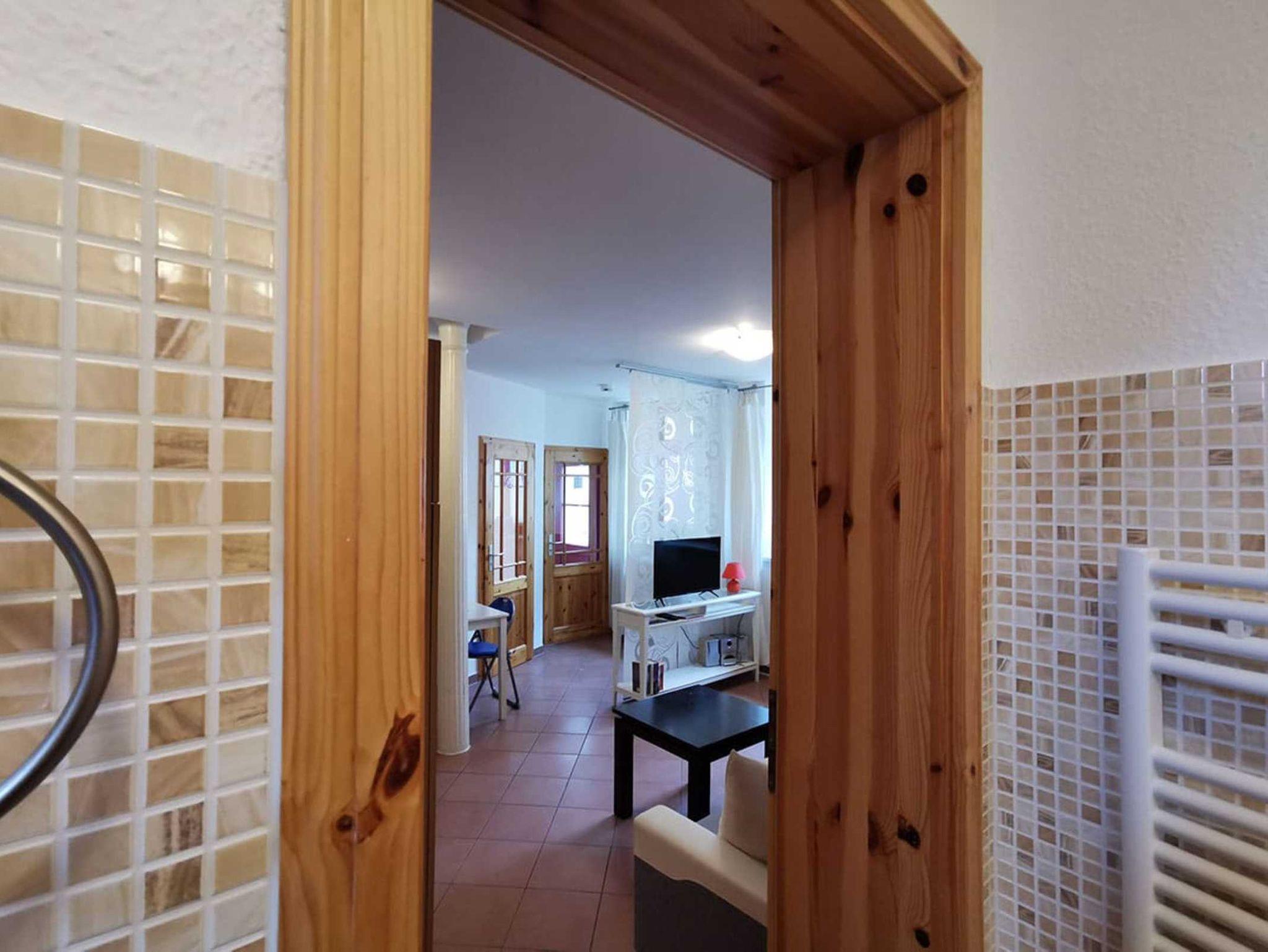 Die Wohnung verfügt über ein helles Wohnzimmer mit offener Küche und ein extra Schlafzimmer mit einem Doppelbett. Das Bad ist gefliest mit Fenster, Dusche und WC.