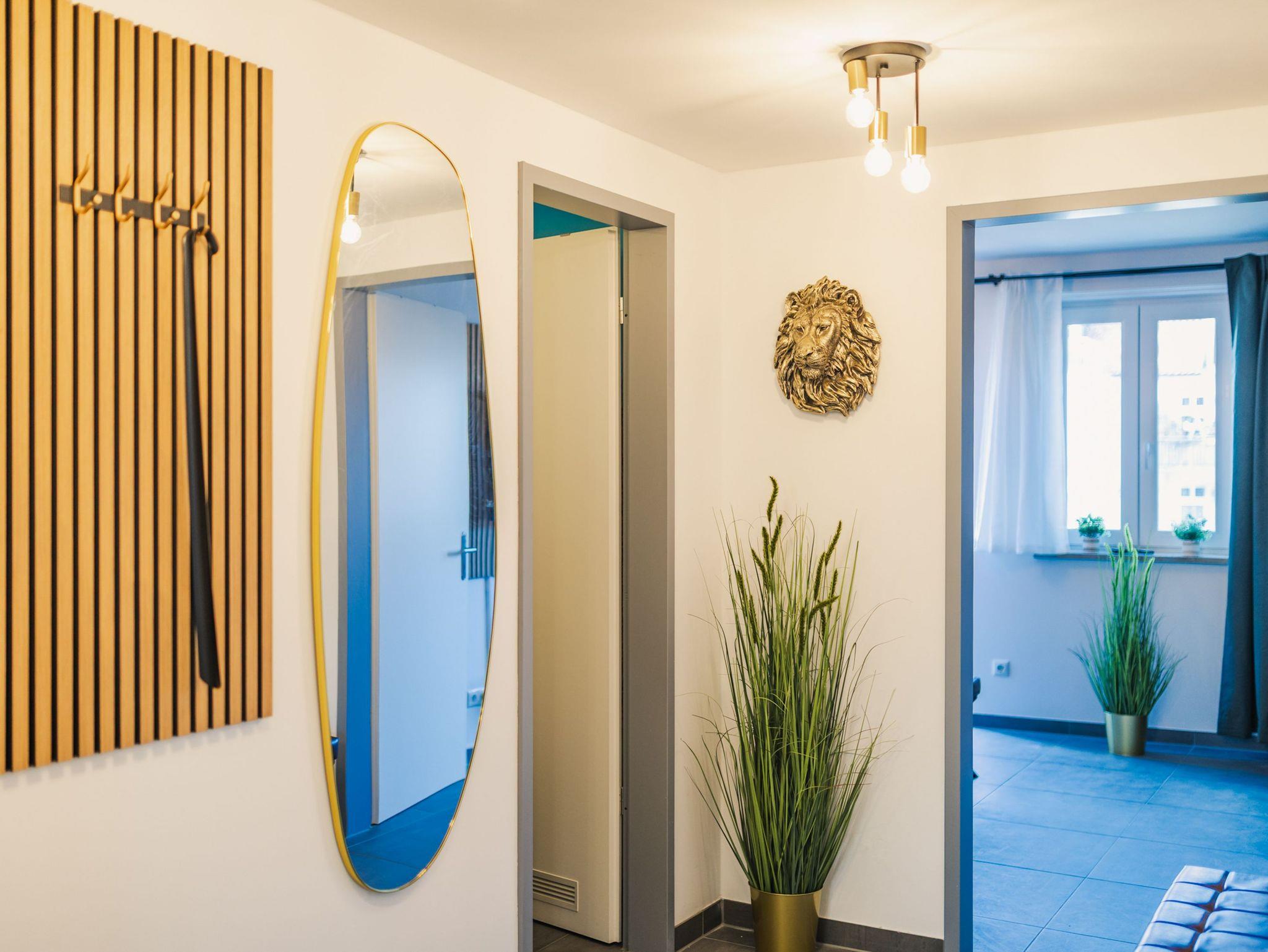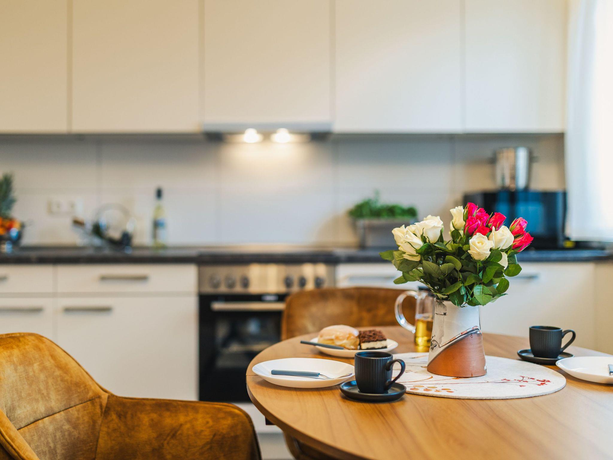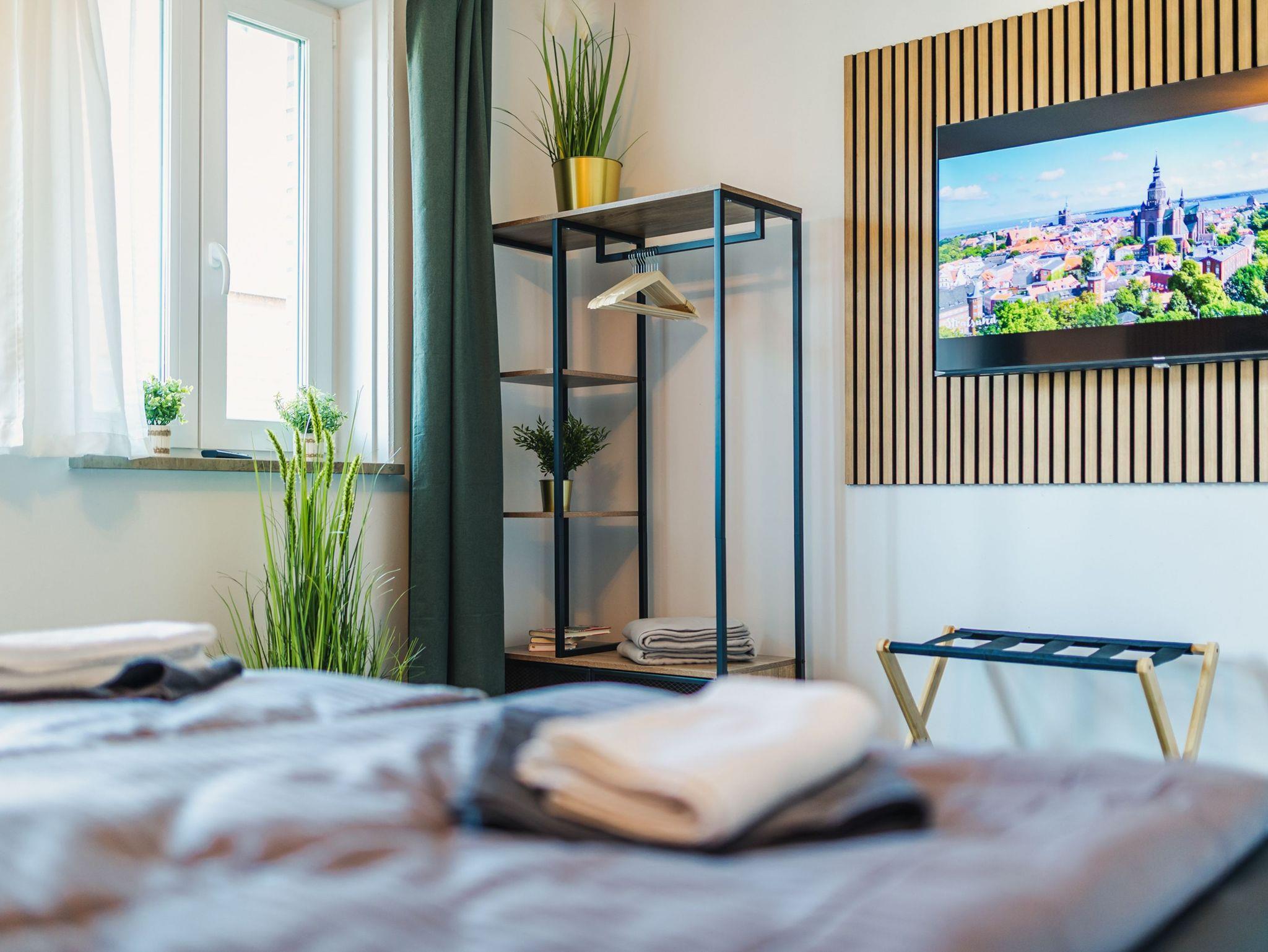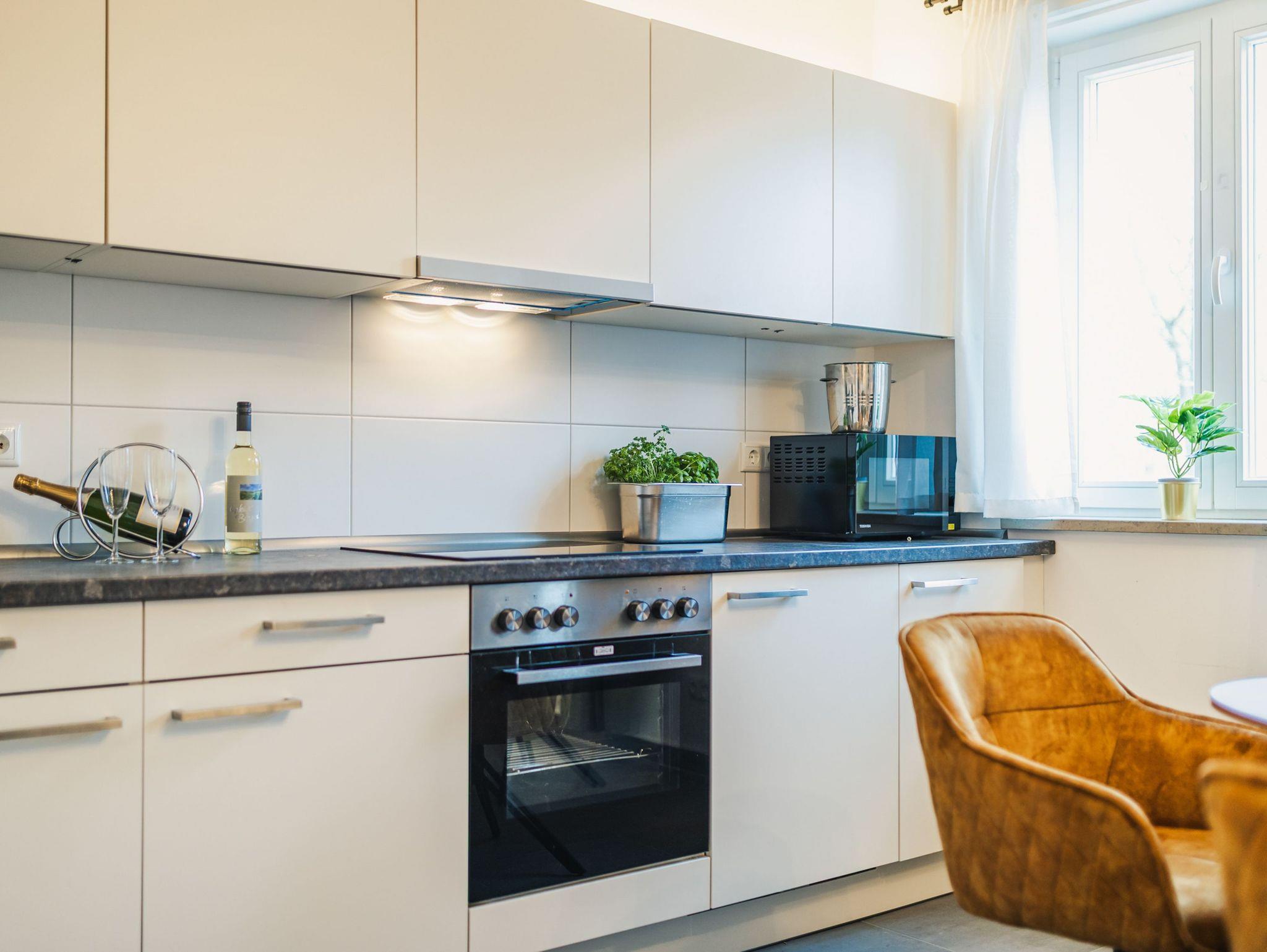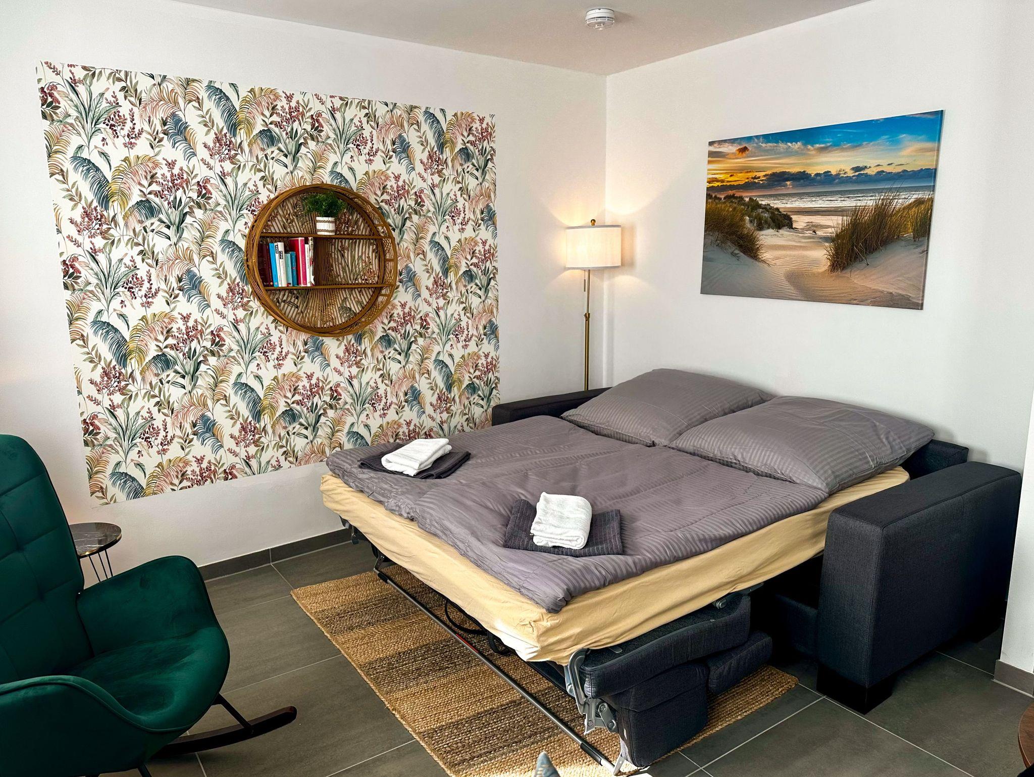 Das Altstadt Studio 10 liegt im 1. Obergeschoss und bietet dir auf rund 65 m² eine durchdachte und helle Ferienwohnung für bis zu 4 Personen. Nach dem Ankommen öffnet sich ein freundlicher Wohnbereich, der Wohnen, Essen und Kochen angenehm miteinander verbindet. Im Wohnbereich stehen ein Sofa und ein TV bereit, das Schlafsofa (160x200) lässt sich zu einem vollwertigen Bett umbauen und bietet zwei zusätzliche Schlafplätze. Direkt angrenzend liegt der Essbereich, ideal für gemeinsame Mahlzeiten oder einen entspannten Start in den Tag. Die Küche ist vollständig ausgestattet und bietet Kühlschrank, Herd, Backofen und Spülmaschine sowie Kochutensilien. Für Kaffee und Frühstück sind Wasserkocher, Toaster, Kaffeemaschine und eine Nespresso Kapselmaschine vorhanden, sodass du dich unkompliziert selbst versorgen kannst. Das separate Schlafzimmer ist mit einem Doppelbett (180x200) eingerichtet und verfügt ebenfalls über einen TV. Von hier aus gelangst du auf den kleinen Balkon zum Innenhof, perfekt für eine kurze Pause zwischendurch. Das Badezimmer ist modern gestaltet und mit Dusche, WC und Bidet ausgestattet. Wenn du mit dem Auto anreist, kannst du einen überdachten Parkplatz auf dem Hof optional dazu buchen.