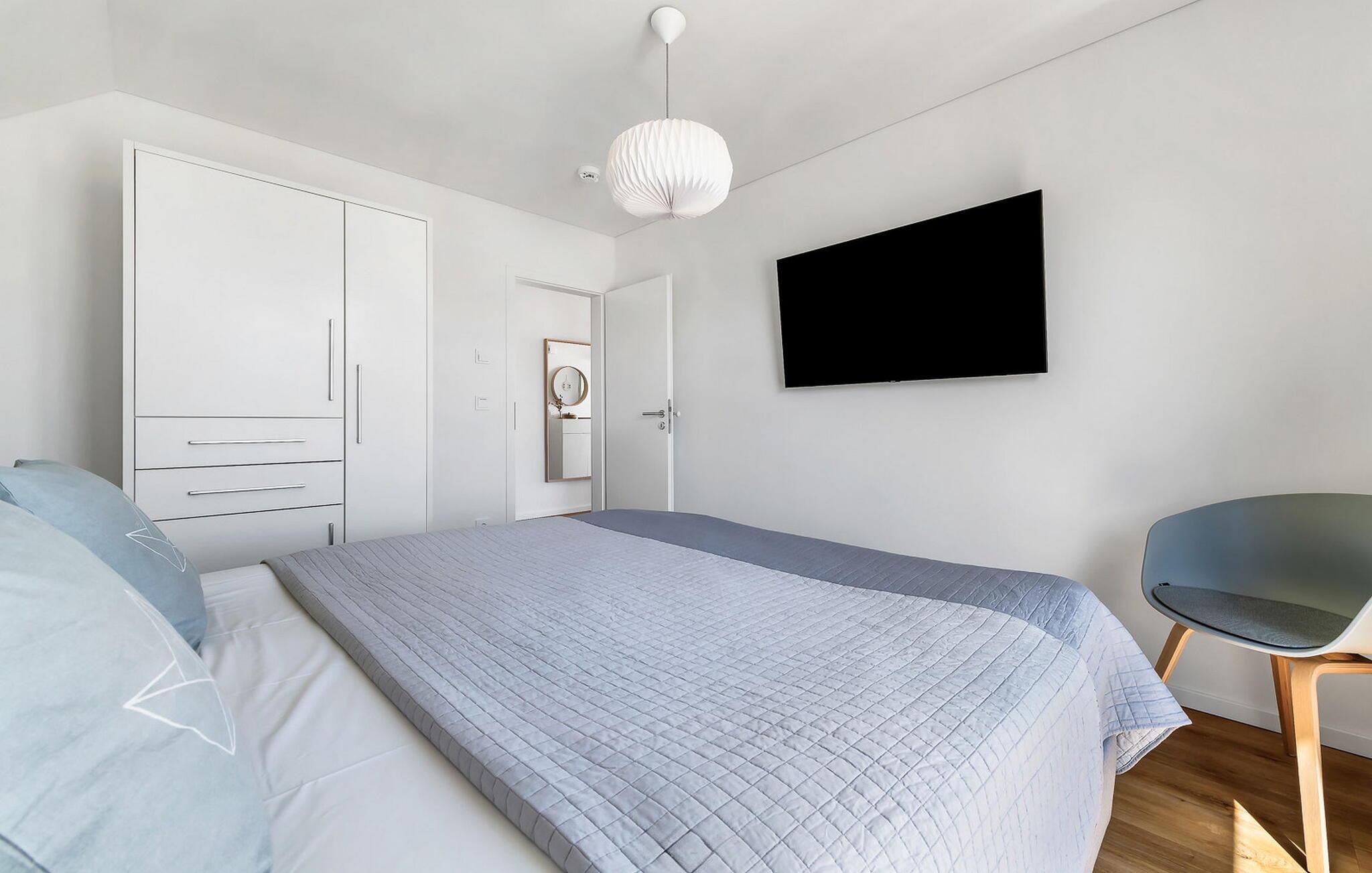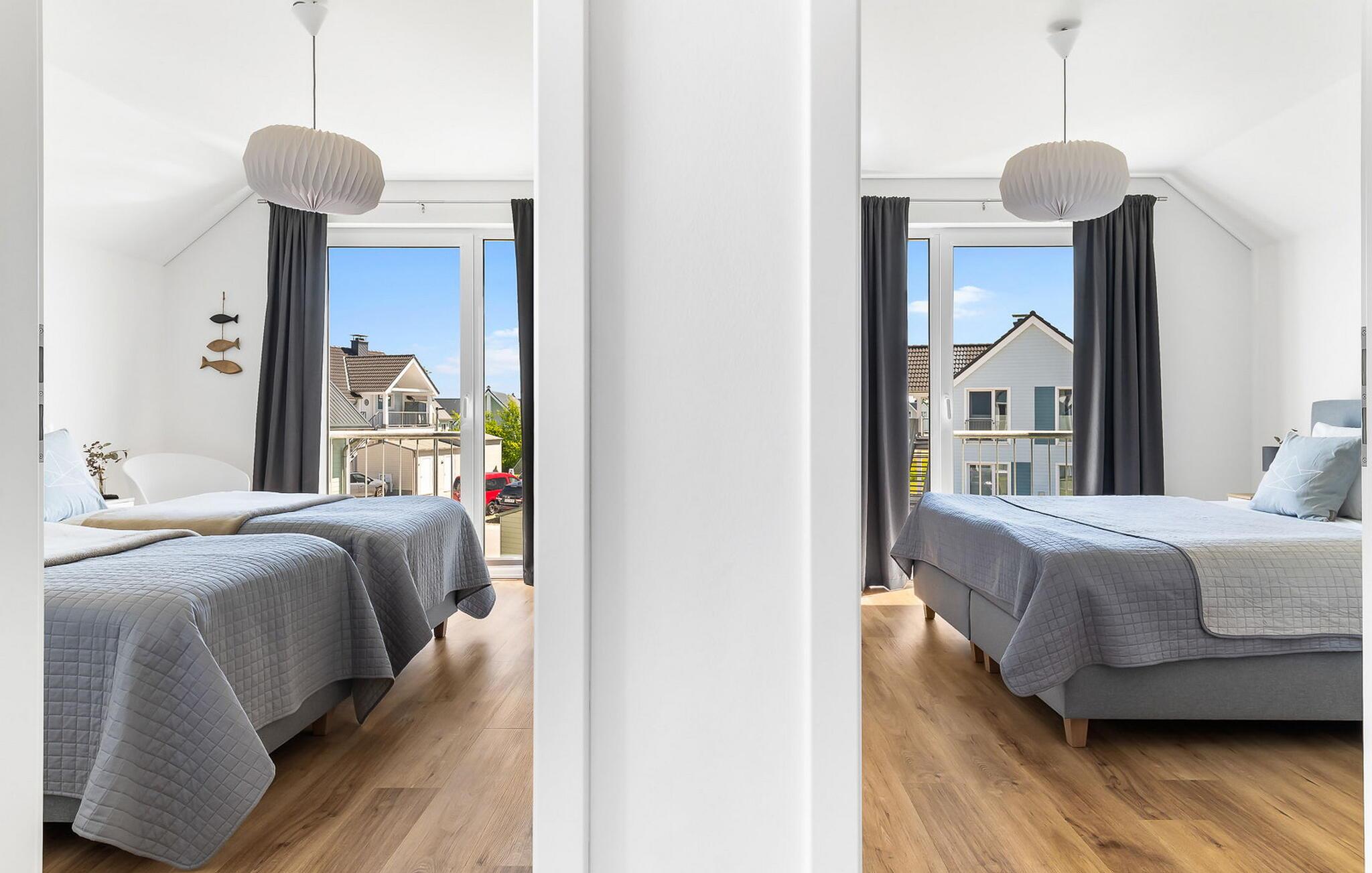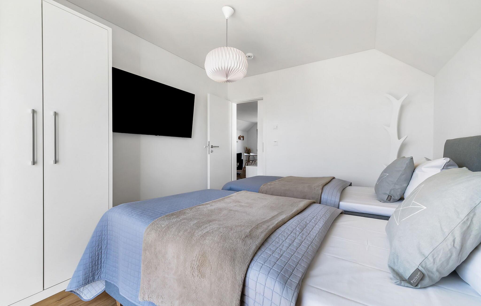 De to soverommene er innredet med fjærsenger og TV på hvert sitt rom. Her kan du slumre og drømme av hjertens lyst. I oppholdsrommet kan sovesofaen gjøres om til en ekstra soveplass med noen enkle grep.