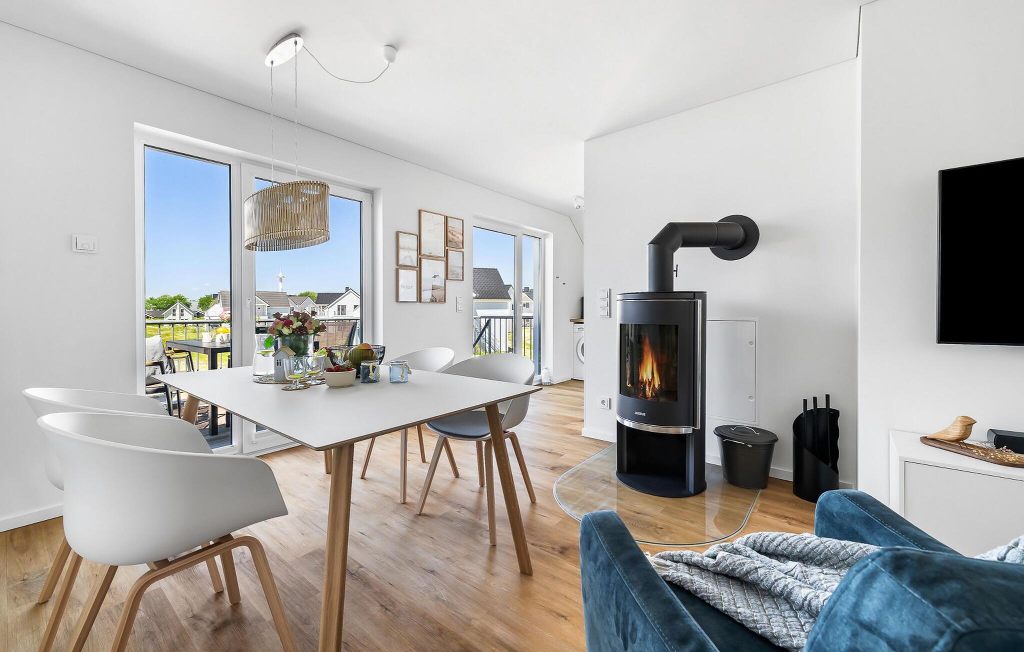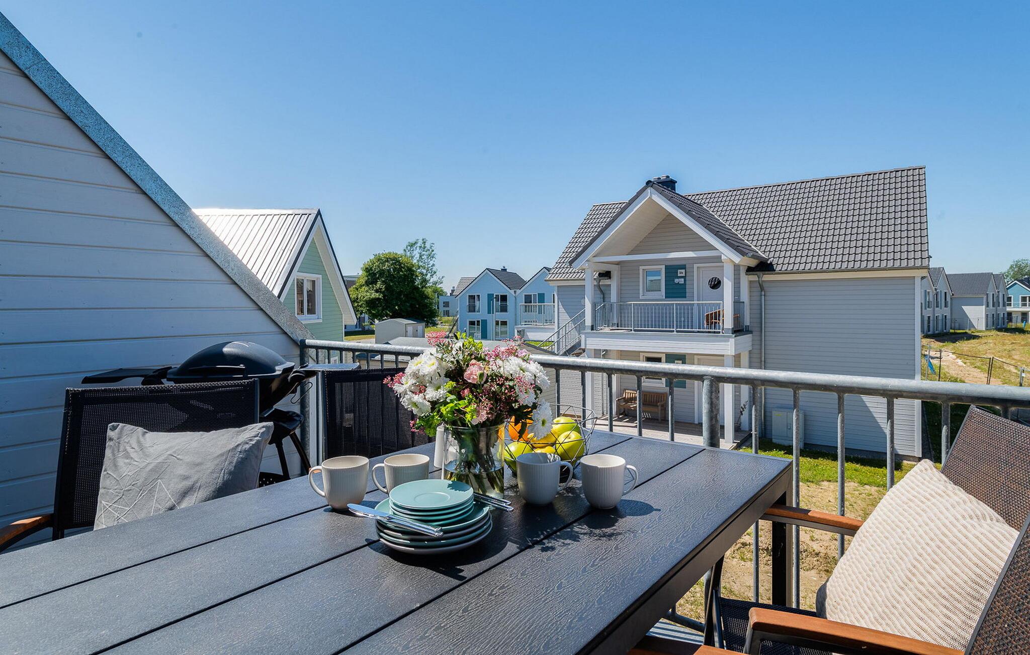 Den åpne stue- og spisestuen med koselig sofagruppe og flatskjerm-TV sørger for en behagelig atmosfære. Når solen skinner, er den store terrassen med sitteplasser og to solstoler et flott sted å slappe av. Her kan du nyte dagen i den friske Østersjøluften. Etter en travel feriedag kan du slappe av på badet med dusjkabinett og infrarød badstue.