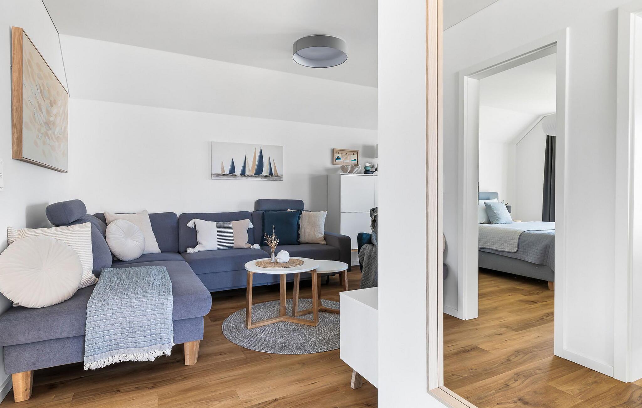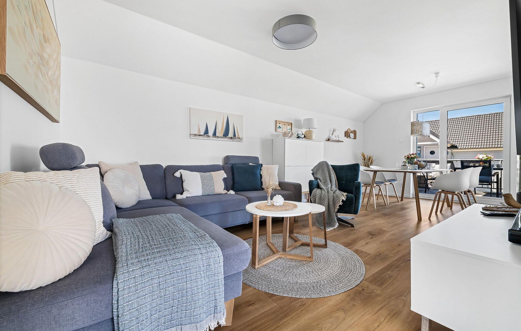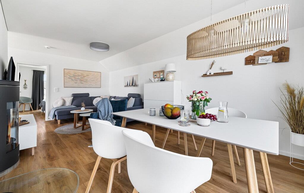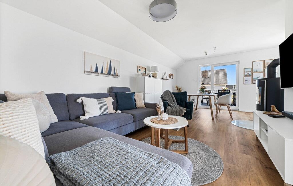 Vår moderne ferieleilighet ligger i øverste etasje i huset. Med plass til opptil 5 personer, 2 soverom og et romslig bad med infrarød badstue, tilbyr den en allsidig pakke for en uforglemmelig ferie ved Østersjøen og Schlei.