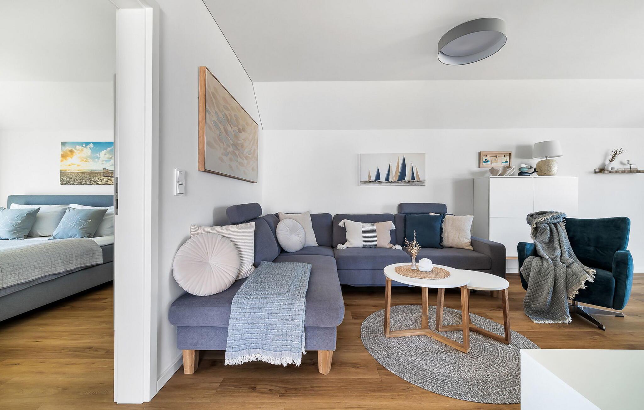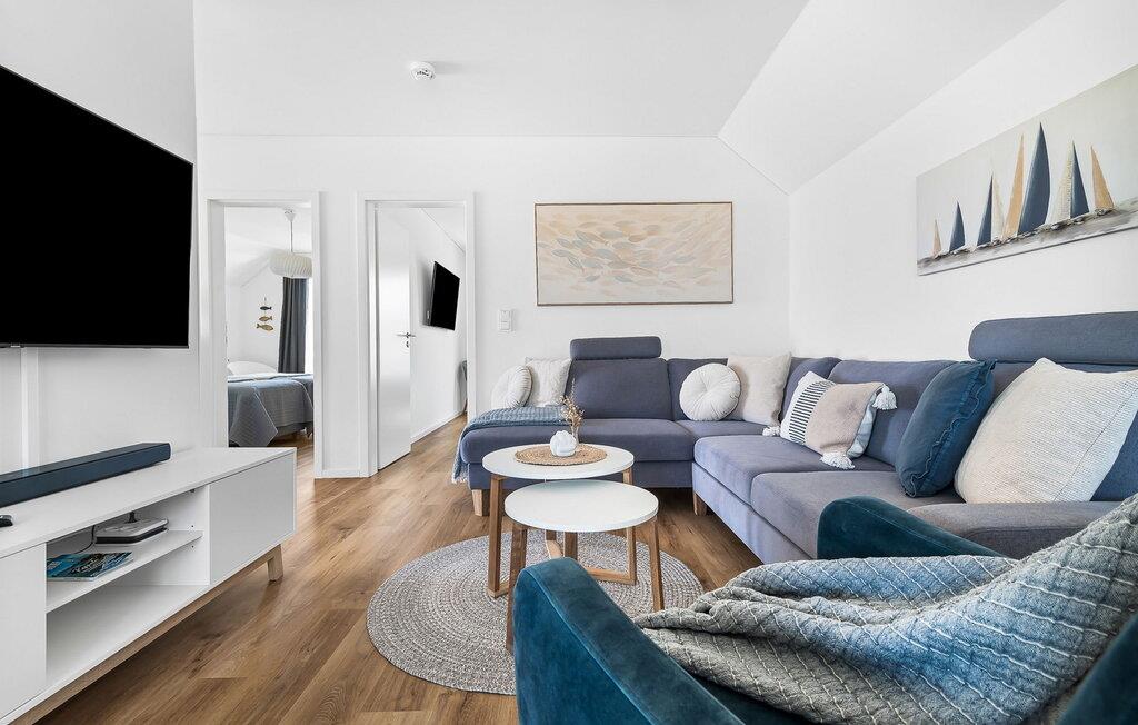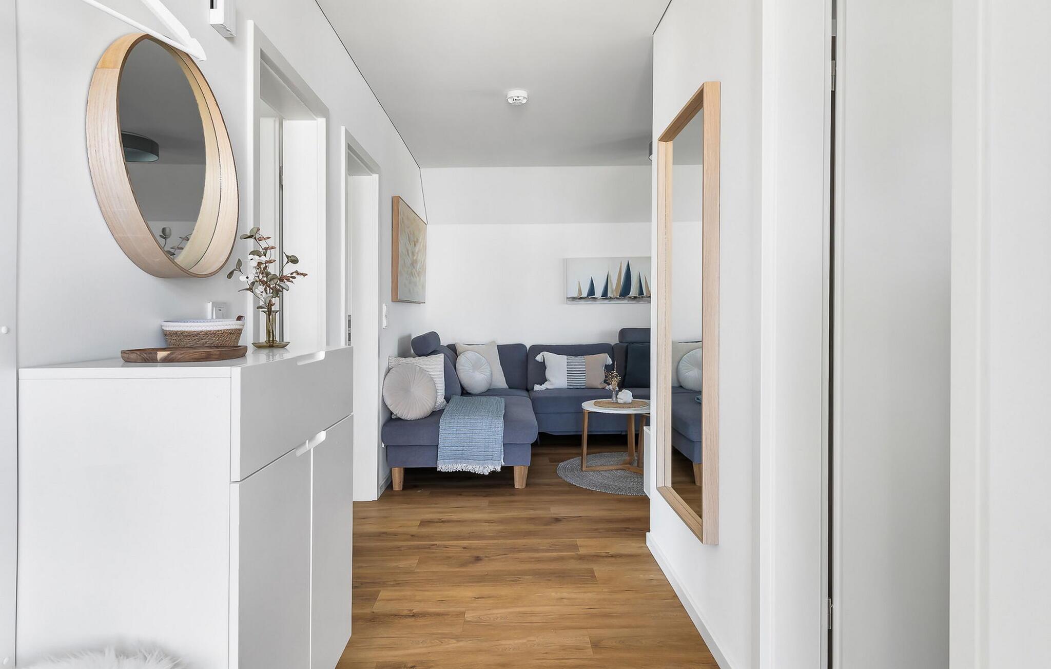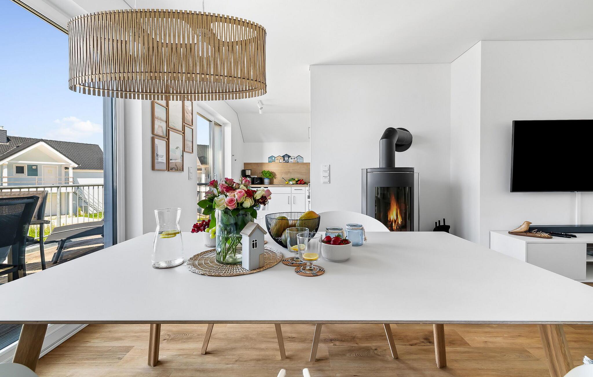 Vår moderne ferieleilighet ligger i øverste etasje i huset. Med plass til opptil 5 personer, 2 soverom og et romslig bad med infrarød badstue, tilbyr den en allsidig pakke for en uforglemmelig ferie ved Østersjøen og Schlei.
