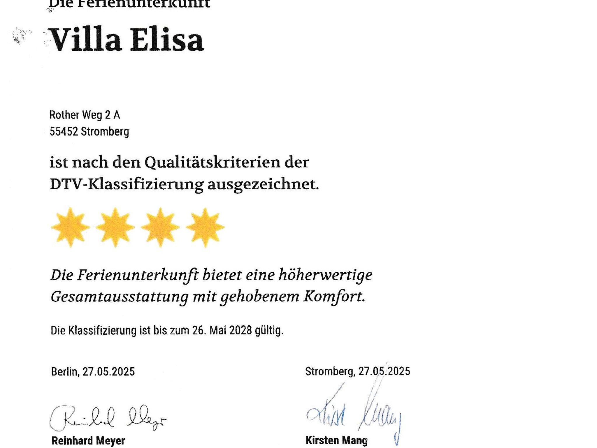 Unser 2008 erbautes Haus wurde von uns im ersten Halbjahr 2025 mit viel Liebe und Energie als Ferienhaus eingerichtet. Es folgte die objektive Bewertung des Komforts durch die DTV-Klassifizierung, und wir sind sehr stolz, dass die Villa Elisa mit 4 Sternen ausgezeichnet wurde. Das Haus liegt in einem ruhigen und dennoch gut angebundenen Wohngebiet, unweit der Stromburg. Es ist ein freistehendes Einfamilienhaus mit Terrasse, kleinem Garten und PKW-Stellplatz direkt auf dem Grundstück. Ihre Gastgeber wohnen im Nachbarhaus.