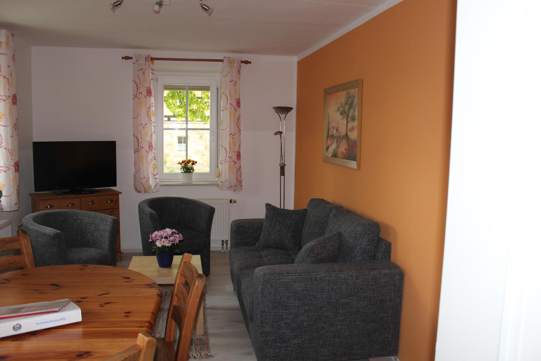 Denne innbydende leiligheten i 1. etasje ligger i den rolige landsbyen Weißig, nær Struppen, og tilbyr et komfortabelt opphold for opptil 4 gjester. Perfekt for familier, den har to soverom – ett med dobbeltseng, det andre med to enkeltsenger – pluss en lys stue/spisestue med satellitt-TV og et fullt utstyrt kjøkken med keramisk komfyr, stekeovn, mikrobølgeovn og oppvaskmaskin. Badet har badekar med dusj, servant og toalett, mens familievennlige fasiliteter som barneseng og barnestol sørger for et stressfritt opphold. Utenfor kan du nyte den felles hagen med møbler, grill og privat parkering. En ladestasjon for elbil gir moderne bekvemmelighet. Utforsk de naturskjønne omgivelsene med en skog bare 500 m unna, Elben (2 km) for turer langs elven og en offentlig lekeplass (250 m) for de minste. Restauranter (100 m), sykkelutleie og offentlig transport (500 m) gjør det enkelt å nyte saksiske sveitsers naturlige skjønnhet og nærliggende Dresden.