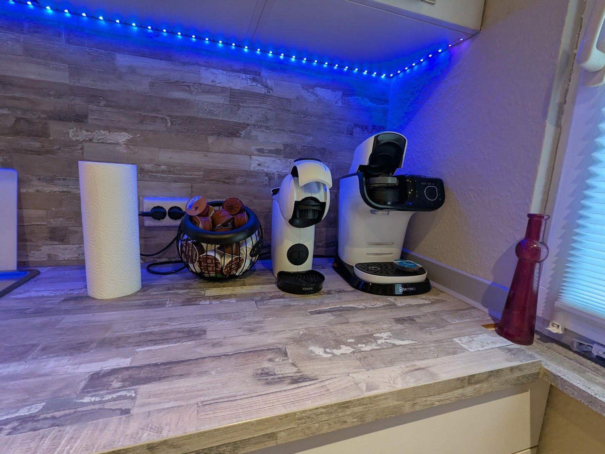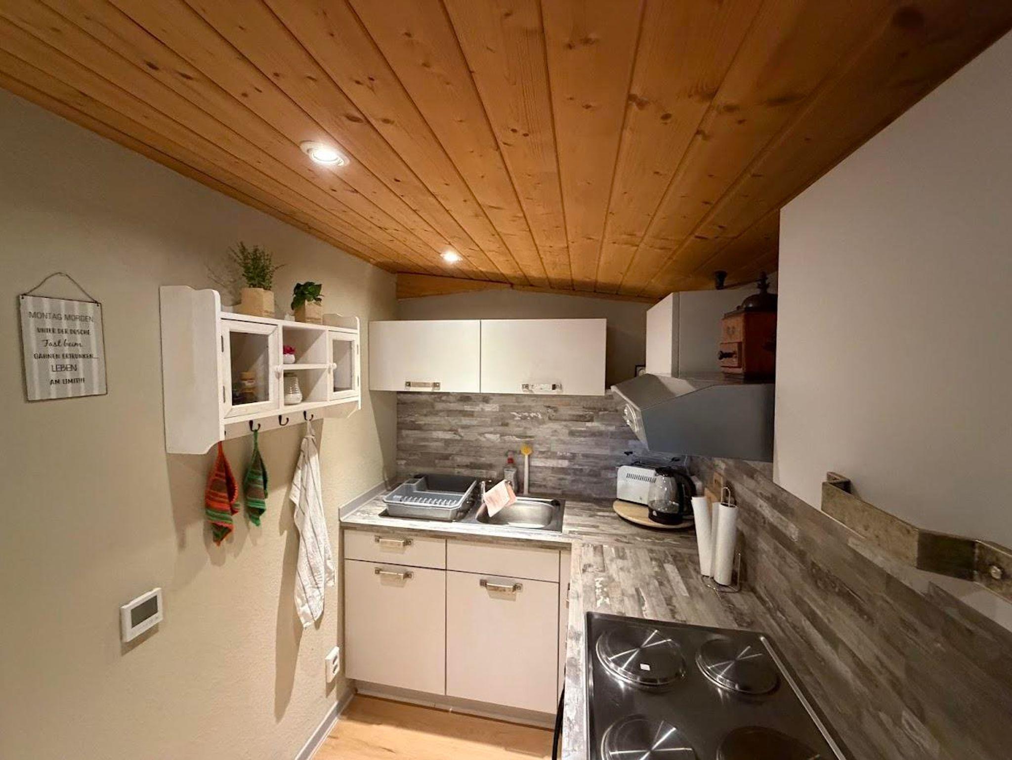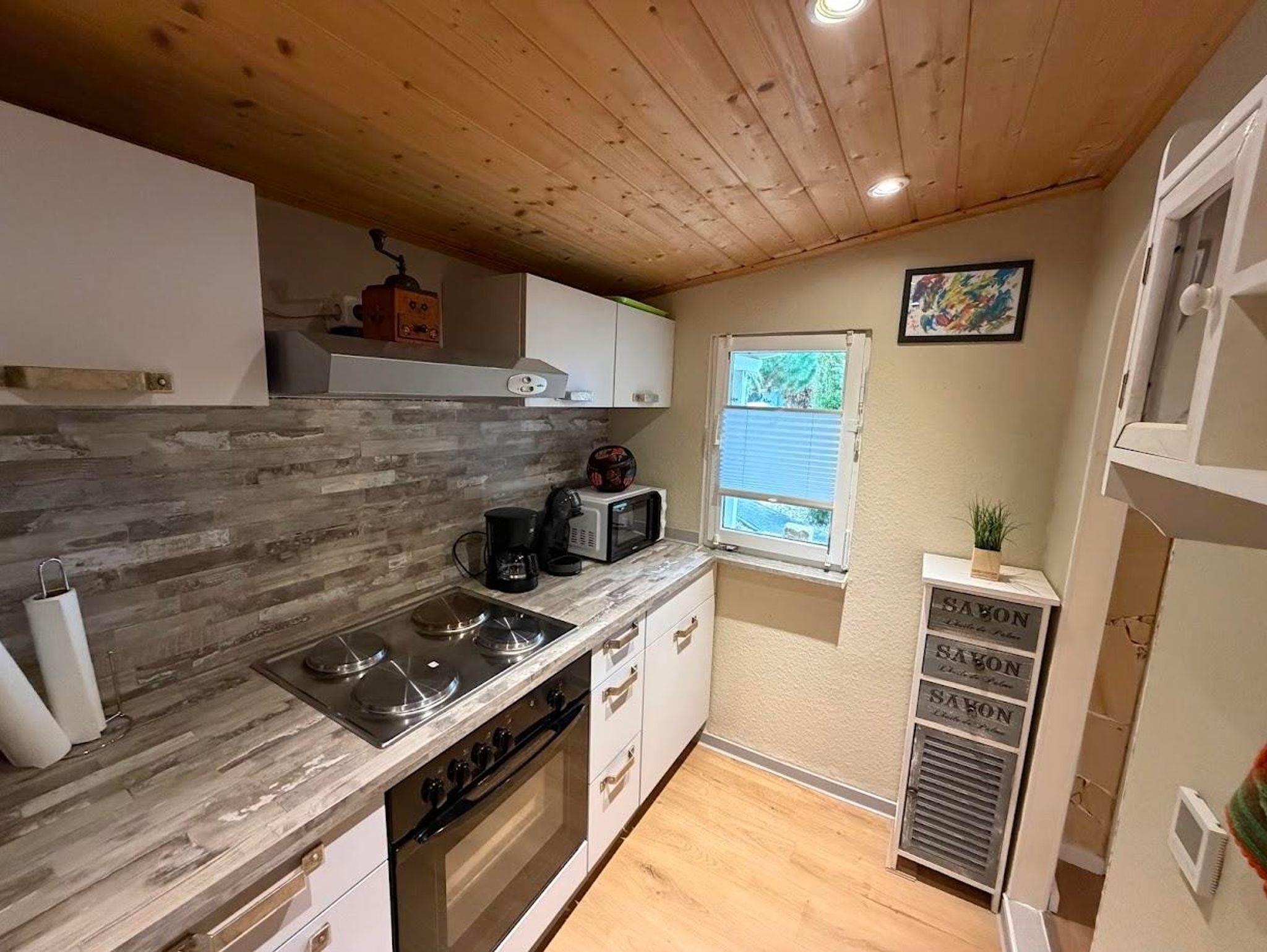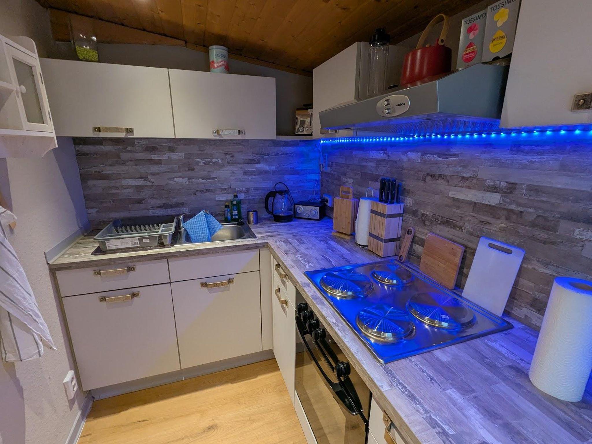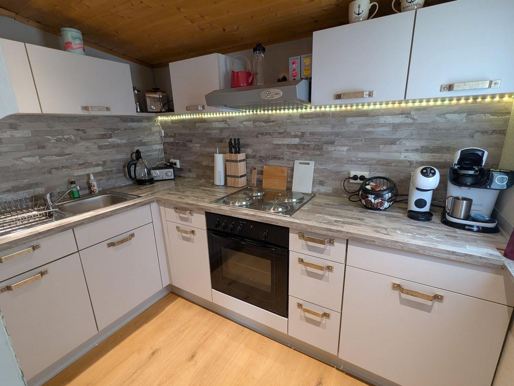 Die voll ausgestattete Küche mit Backofen, Kaffeemaschine, Toaster und Wasserkocher lässt keine Wünsche offen.