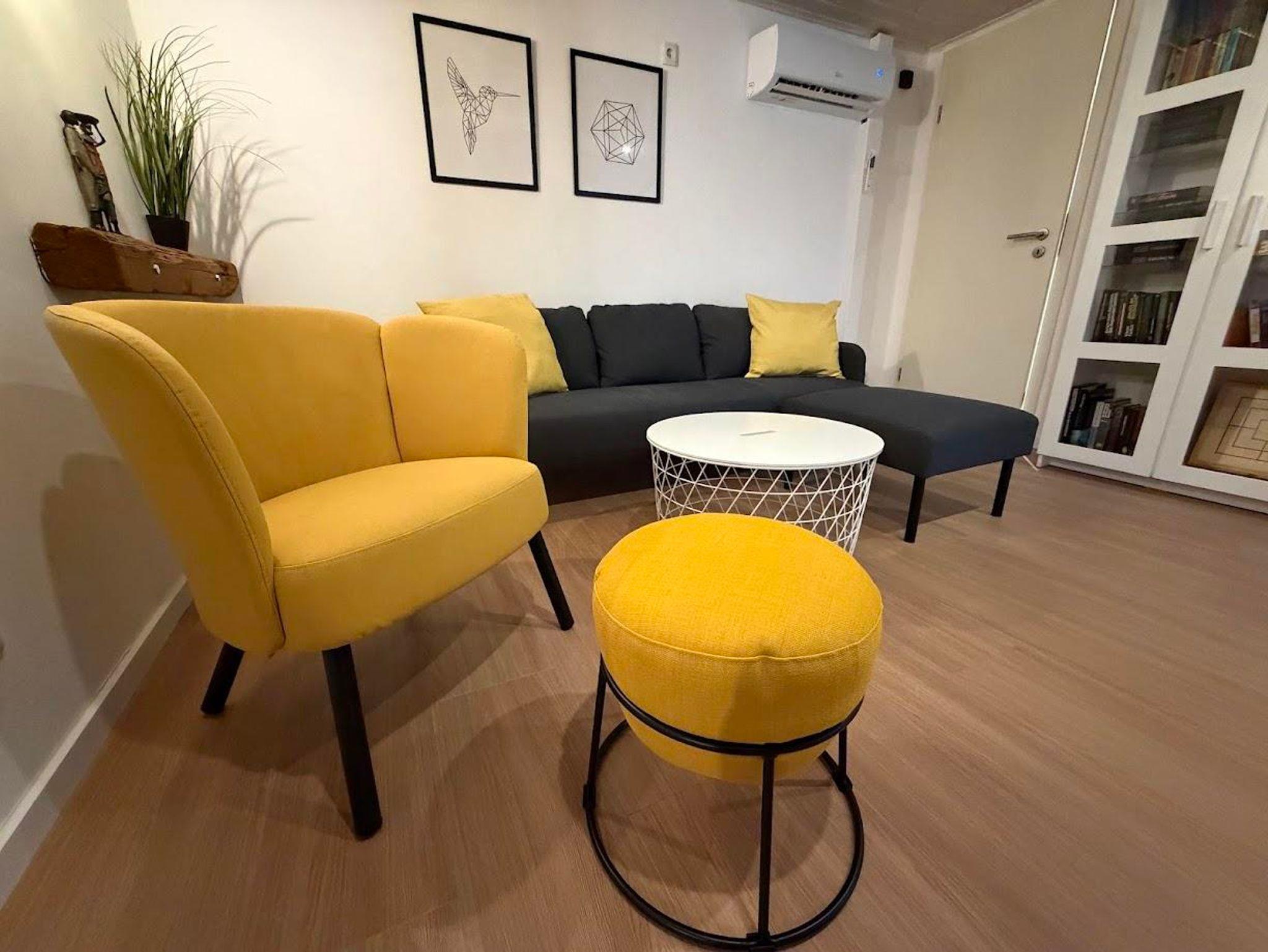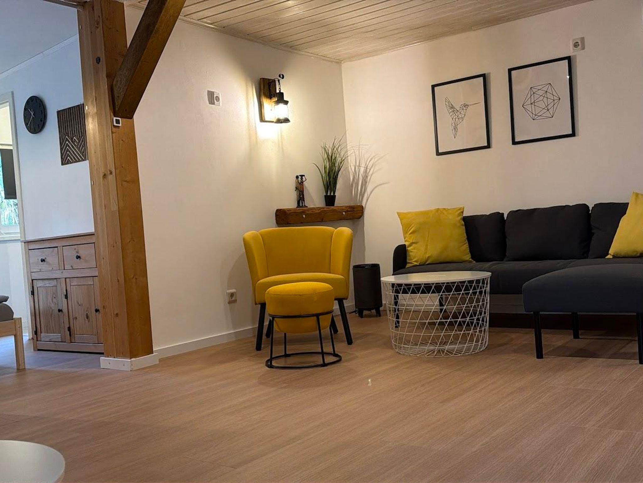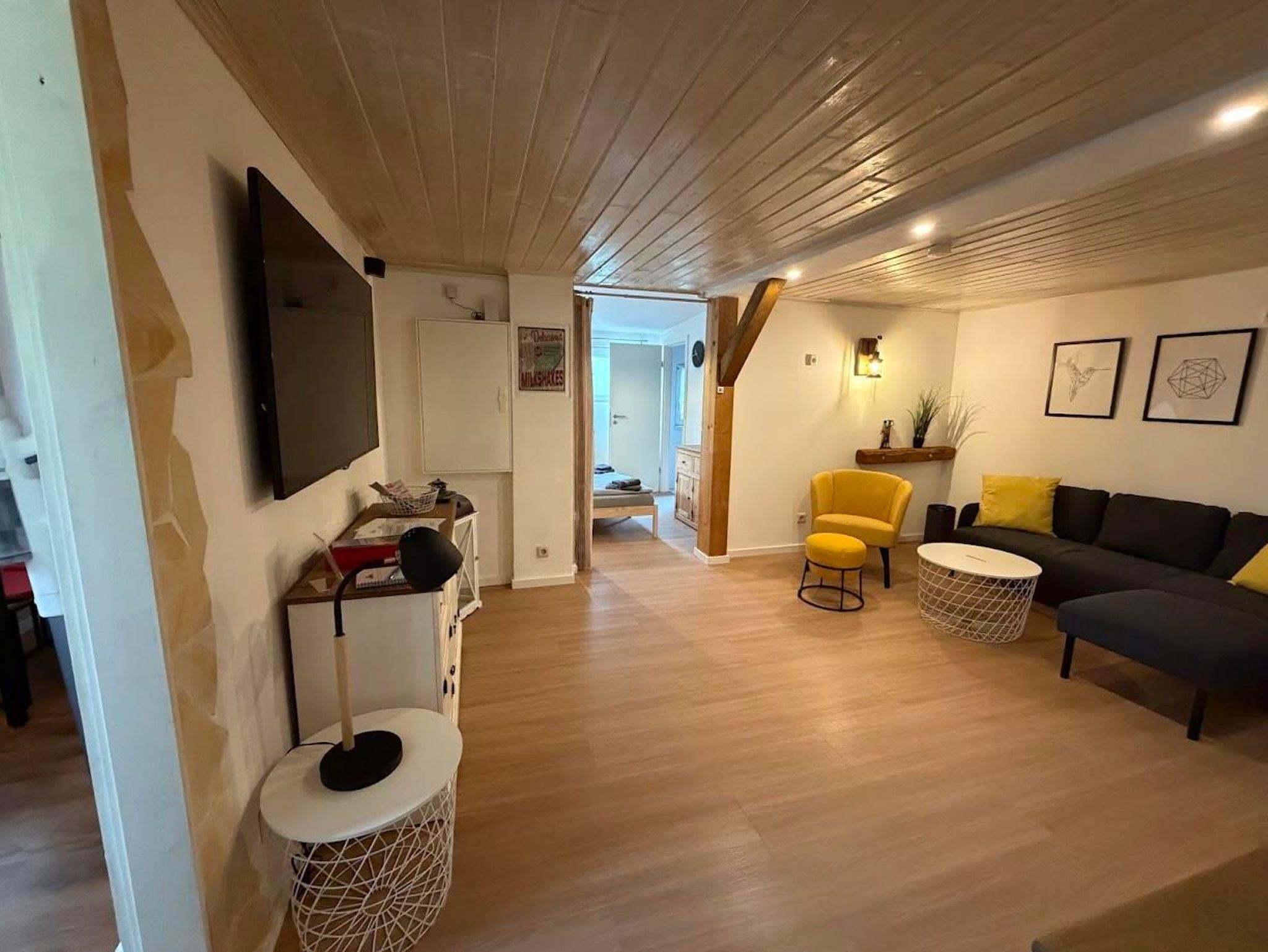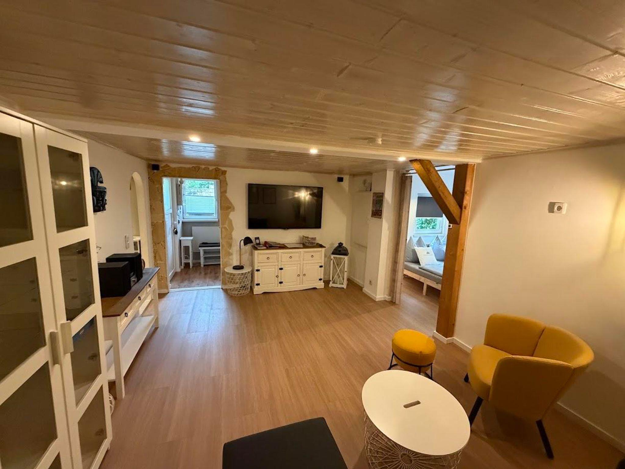 Das gemütliche Wohnzimmer ist mit einem 65 Zoll Flachbild-TV inkl.TV und einer Sitzgruppe eingerichtet.