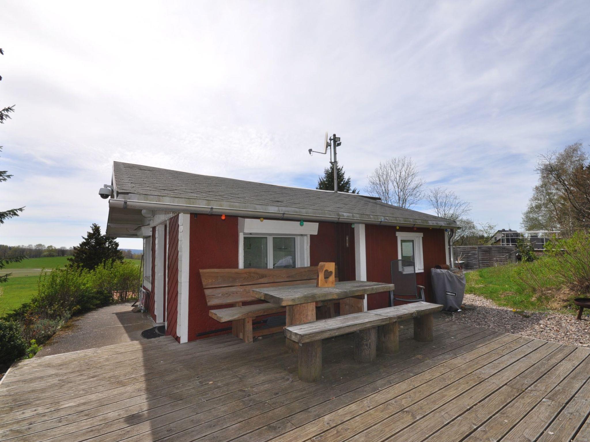 The holiday home is located on the Saalhügel in Goldlauter-Heidersbach with a view of the glider airfield in heavenly tranquillity. In the middle of a green meadow.