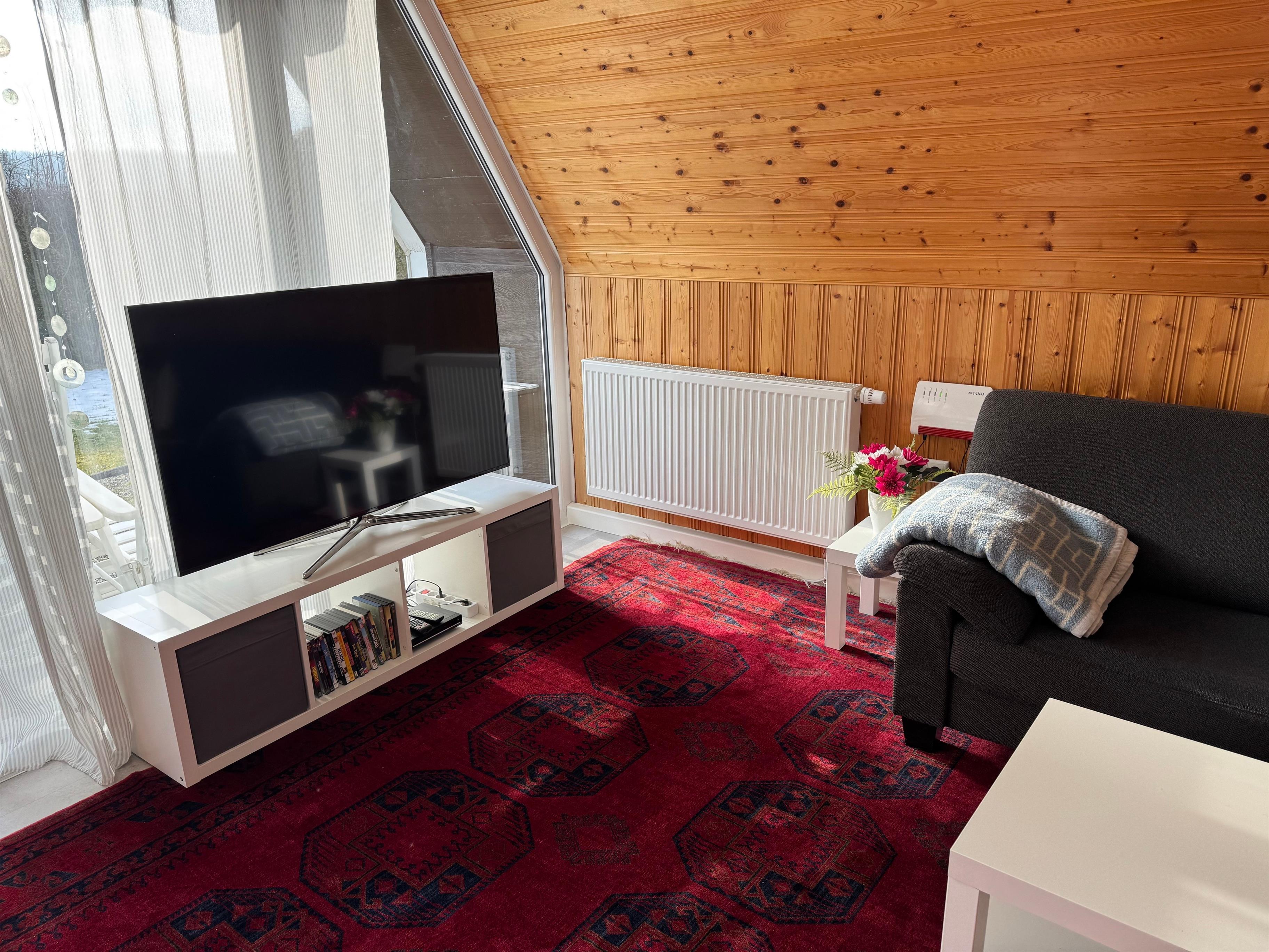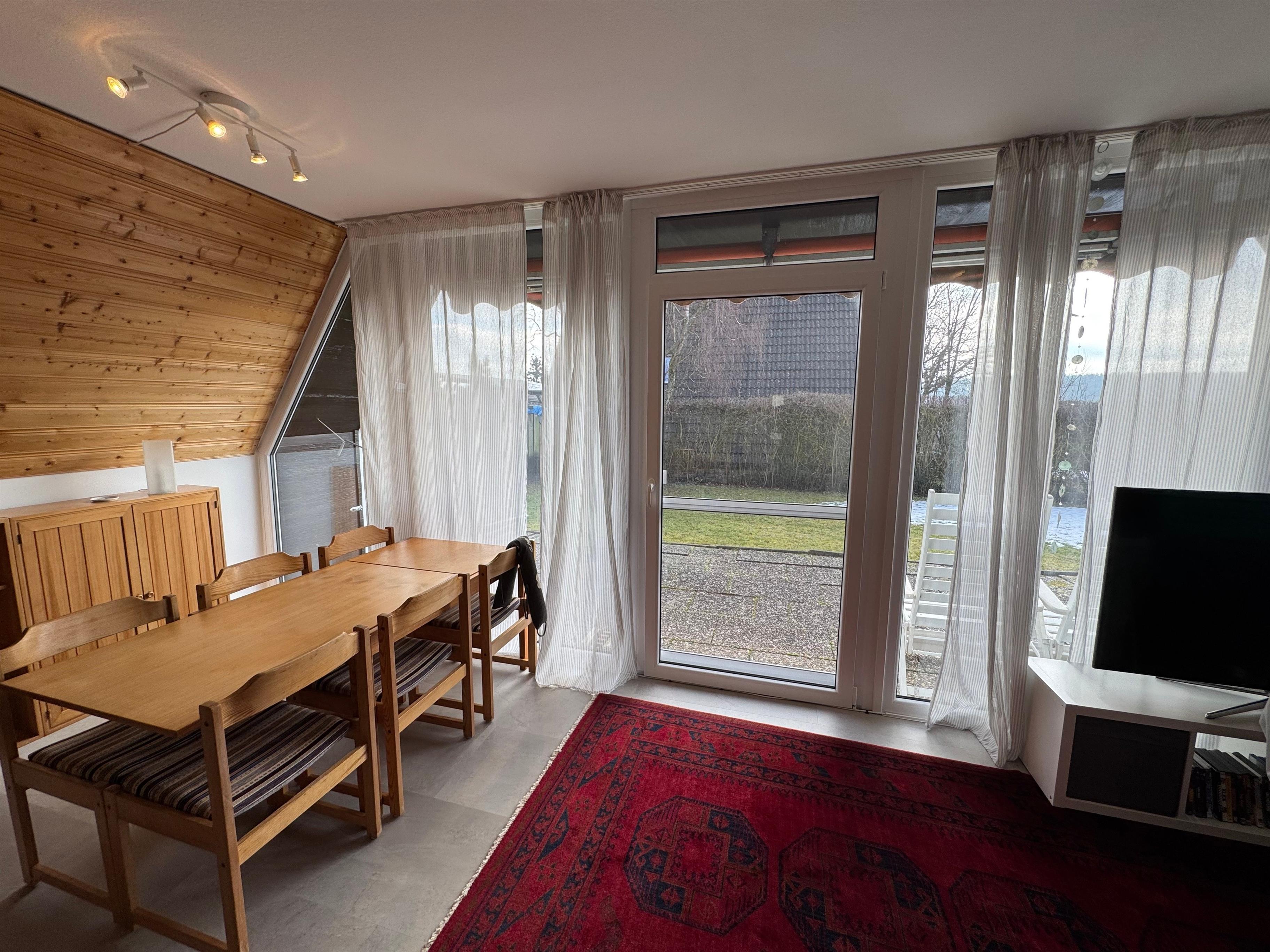 Wohn-/Essbereich mit Panoramafenster; 2 SZ (4 Betten); modernes Duschbad