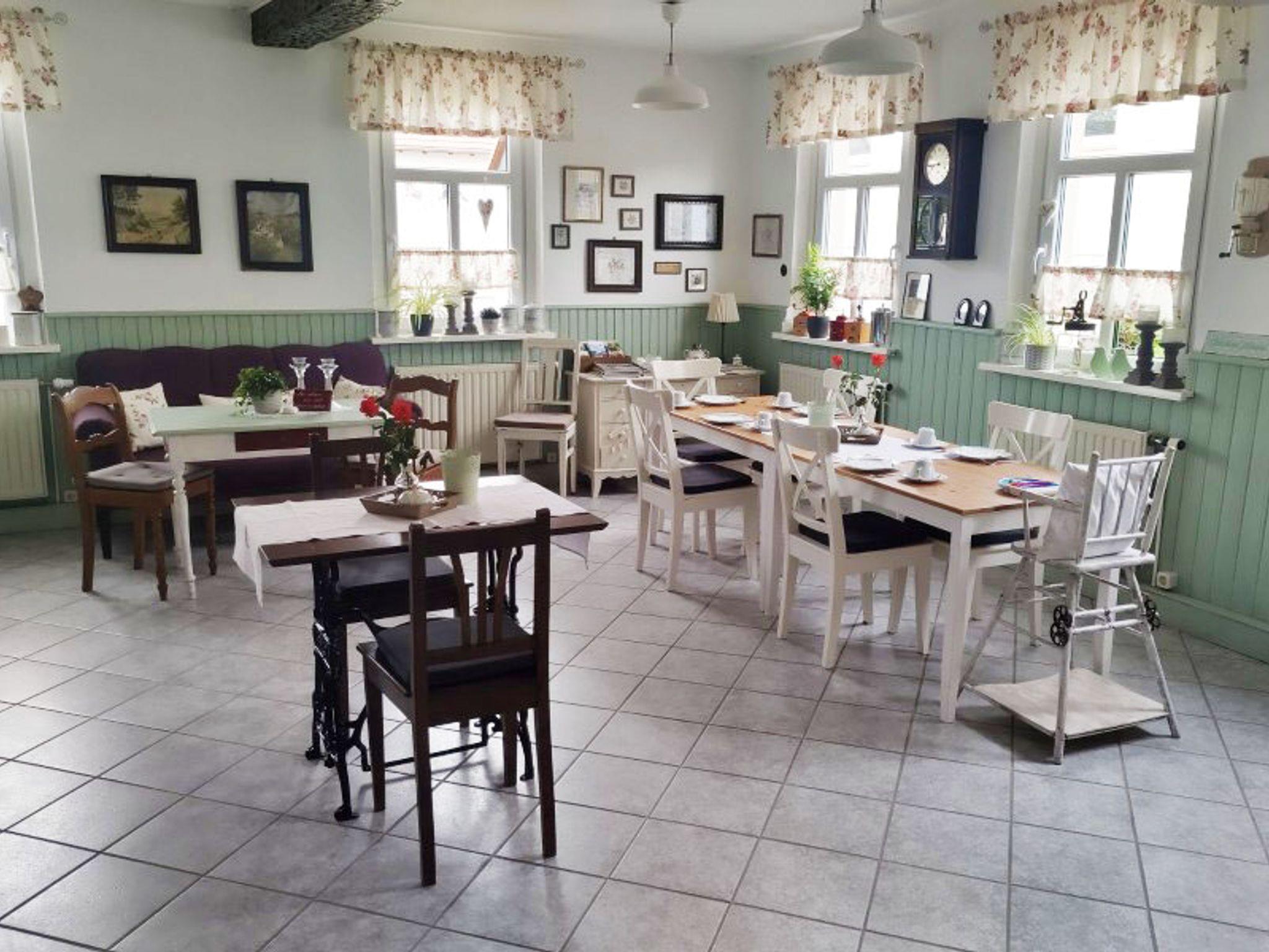 Die ganze Pension ist mit Liebe zum Detail eingerichtet und die Zimmer im gemütlichen Landhausstil. Alle Zimmer mit Dusche/WC, TV und kostenfreiem W-Lan. Eine kleine Teeküche mit Kühlschrank, Mikrowelle, Kochgelegenheit und eine Terrasse zur gemeinsamen Nutzung ist vorhanden, ebenso kostenfreie Unterstellmöglichkeiten für Fahr-/Motorräder und Parkplätze mit 2 E-Ladeplätzen für PKW.
