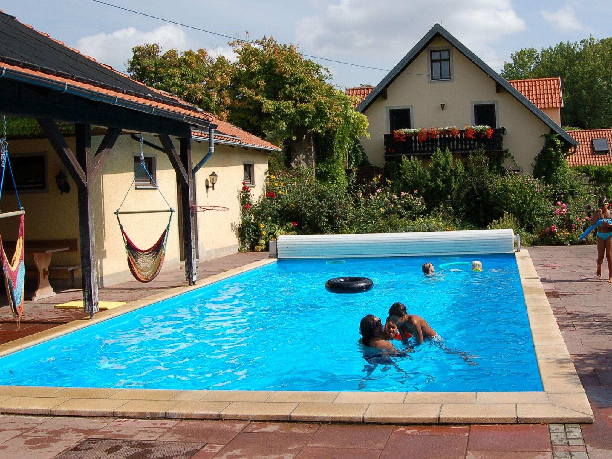 Ankommen und wohlfühlen auf unserem Ferienhof in idyllischer Einzellage. Die sanfte Hügellandschaft der Haßberge ist ideal zum Radeln, Wandern und Reiten. Beheiztes Schwimmbad, Reitpferde (für Anfänger und Könner), Angelweiher, Wellness-Angebote, Spielplatz, Fußballwiese, Beachvolleyball, Tischtennis, Sauna, Fahrzeugpark für Groß und Klein und viele Streicheltiere - Für jeden der richtige Urlaub! Unser Ferienhaus bietet Platz für 10 - 16 Personen.
