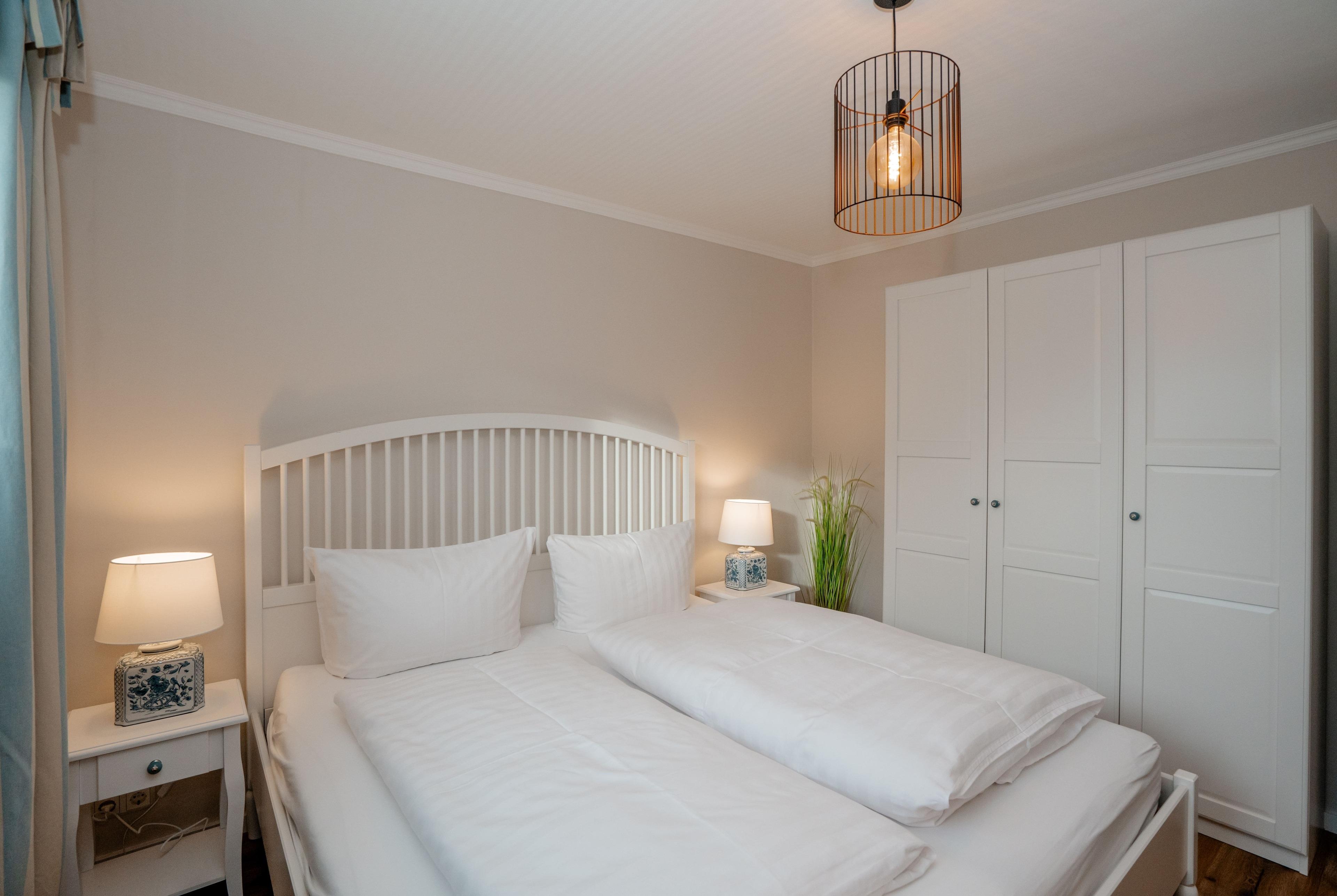 Zwei behagliche Schlafzimmer mit komfortablen Doppelbetten laden zum Träumen und Ausschlafen ein. Im hellen Wohnbereich mit kuscheliger TV-Ecke, gemütlicher Essecke und moderner Küchenzeile lässt es sich wunderbar gemeinsam kochen, essen und entspannen.