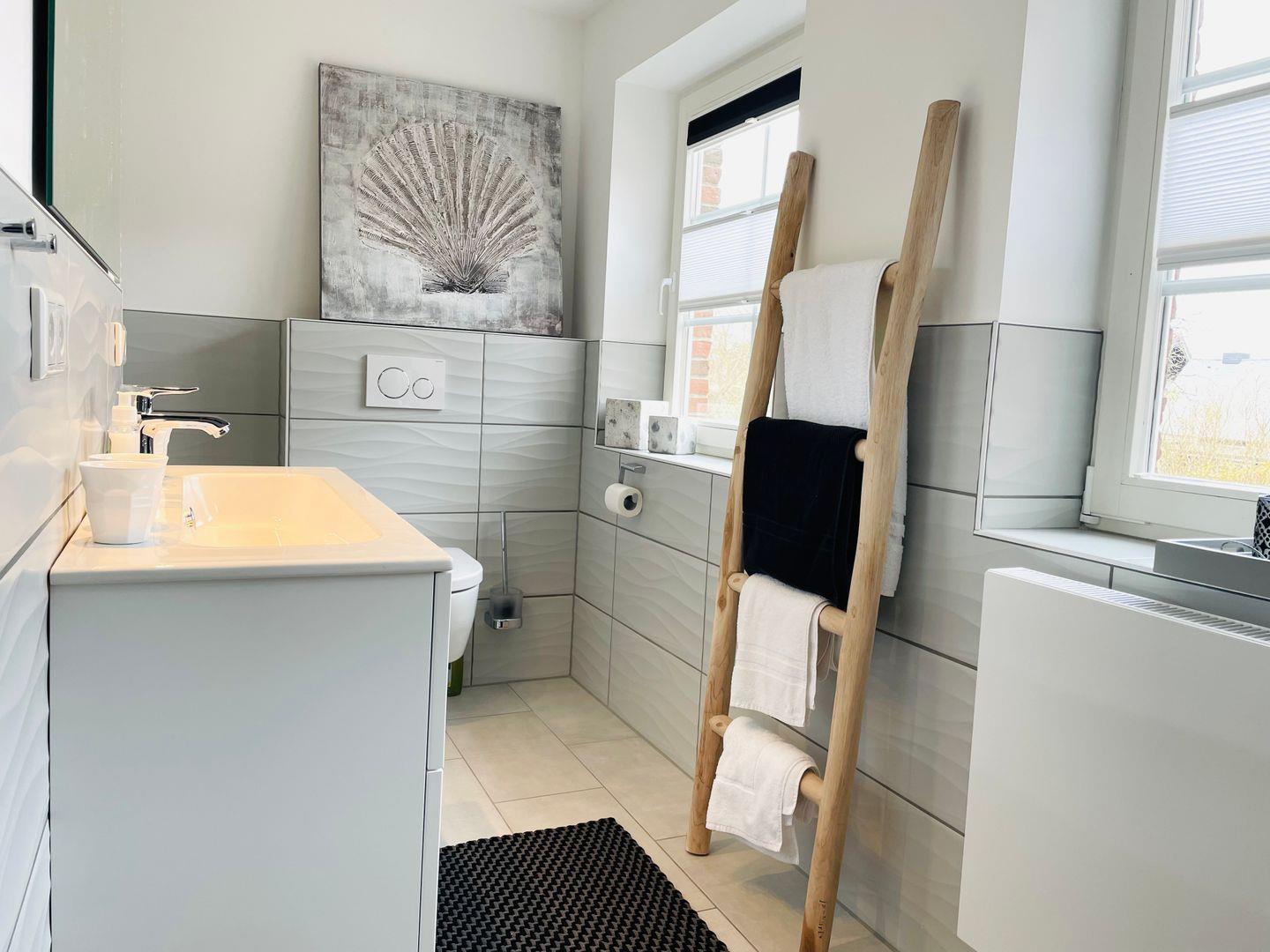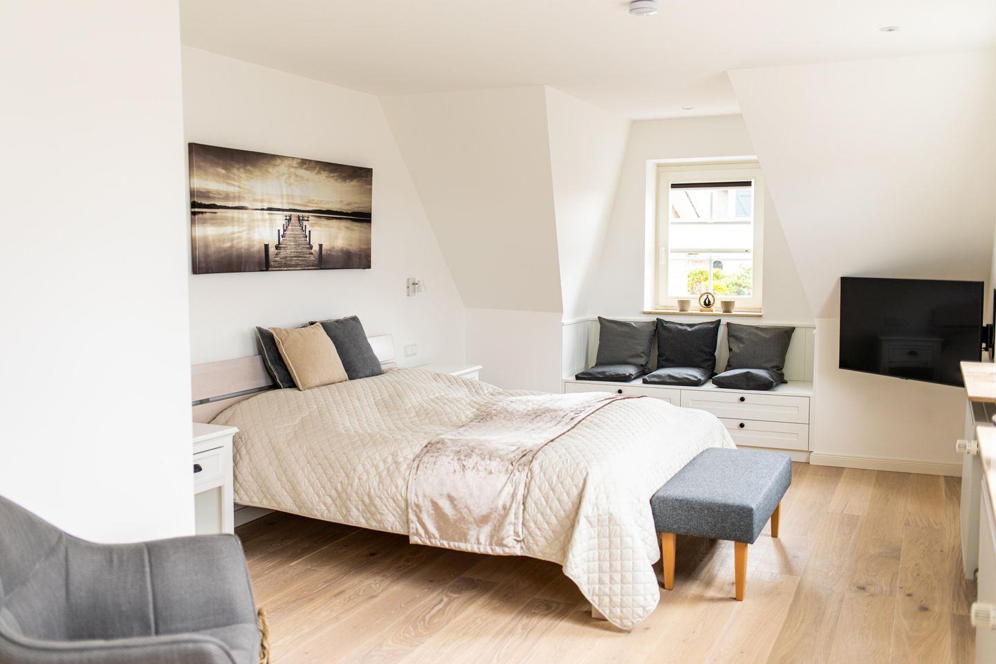 Dieses modern renovierte ca. 135 m² (Wohn- und Nutzfläche) große, fast freistehende 5-Sterne Ferienhaus für bis zu 4 Personen befindet sich in Tinnum an der Grenze zu Westerland und bietet Ihnen eine Kombination aus hochwertiger Ausstattung sowie absolutem Komfort. Im Erdgeschoss erwartet Sie eine offene, moderne Wohnküche mit einem angrenzenden, lichtdurchfluteten Wohn- und Essbereich. Das erste Doppelschlafzimmer samt Duschbad en Suite erwartet Sie ebenfalls im Erdgeschoss. Absolute Entspannung bietet Ihnen ein kleiner Wellnessbereich im 1. OG, ausgestattet mit einer Sauna und einem Duschbadezimmer. Im 1. OG erwartet Sie ebenfalls das zweite Doppelschlafzimmer, ausgestattet mit einer gemütlichen Sitzbank am Fenster mit Ausblick auf die Deichwiesen Tinnums. Genießen Sie den Sonnenuntergang auf dem Balkon mit Blick in den Garten. Nutzen Sie zudem gerne die Terrasse sowie den angrenzenden Garten mit Gartenmöbeln und einem Strandkorb (in der Saison). Kostenloses WLAN, zwei zugehörige PKW-Stellplätze vor dem Haus, ein Waschraum mit Waschmaschine sowie Wäschetrockner stehen Ihnen zur Verfügung. Das Sylt Seascape III liegt in sehr ruhiger Lage einer Nebenstraße im Ort Tinnum unmittelbar an den Deichwiesen. Es bietet ideale Möglichkeiten zum Radfahren und Wandern. Zum nächstgelegenen Supermarkt sind es ca. fünf bis sieben Minuten. Der Strand ist mit dem Fahrrad in 8 Minuten und fußläufig in 15 bis 20 Minuten zu erreichen. Haustiere sind leider nicht erlaubt.